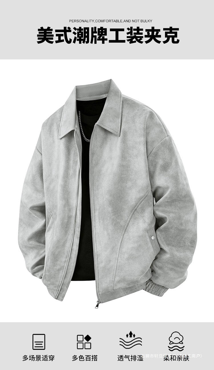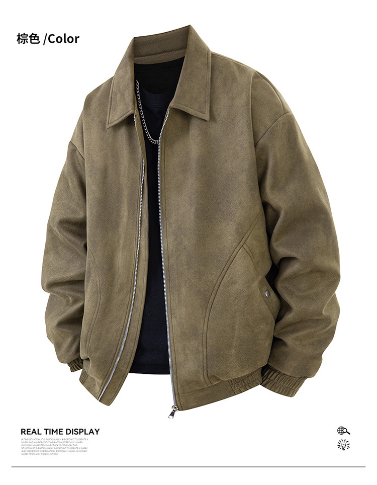 도매 가죽 남성 미국 스타일 오버웨어 가죽 재킷 옷깃 트렌디 한 캐주얼 복고풍 단색 질감 옷깃 트렌디 한 브랜드 국경스토어 가기