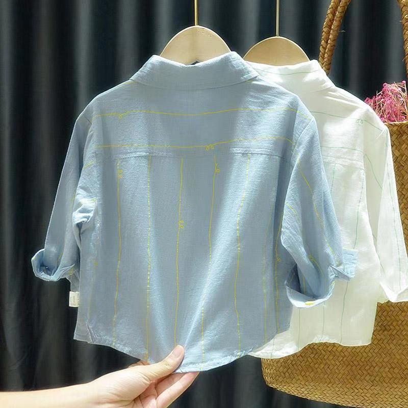 새로운 소년 셔츠 한국 스타일 올 매치 셔츠 2025 봄과 가을 어린이 만화 세련된 셔츠 어린이 유행 패션 옷스토어 가기