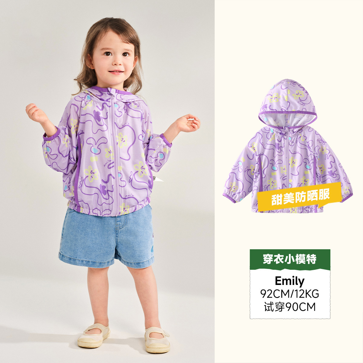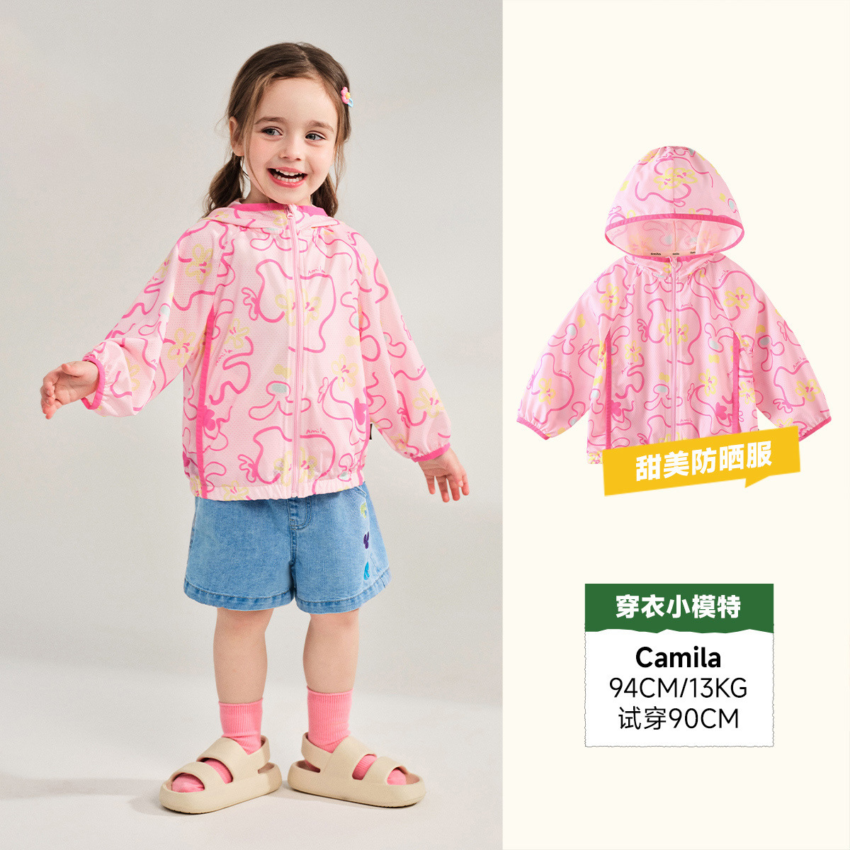 통베이 아동복 2025년 여름 신상 여아 재킷 귀여운 프린트 후드 에어컨 셔츠 가볍고 통기성 좋은 옷스토어 가기