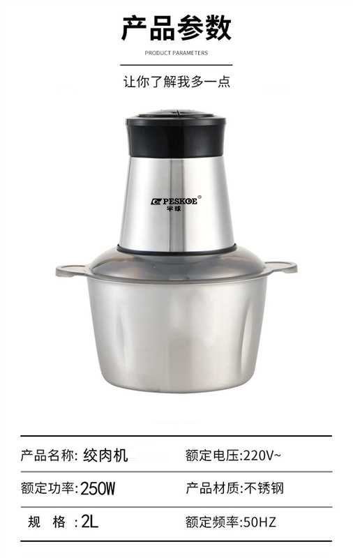 【직배송】반구형 2L 스테인리스 푸드프로세서, 이유식 제조기, 야채, 양파, 생강, 마늘, 고기 분쇄기, 반구형 고기 분쇄기스토어 가기