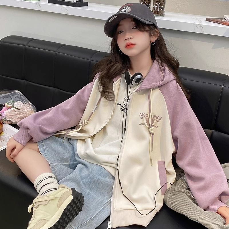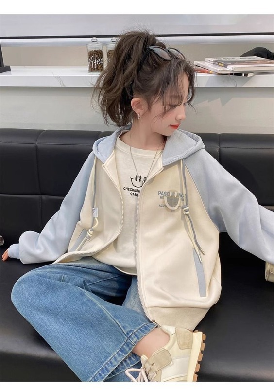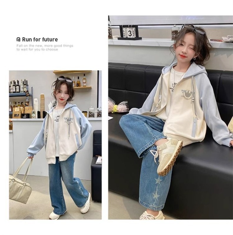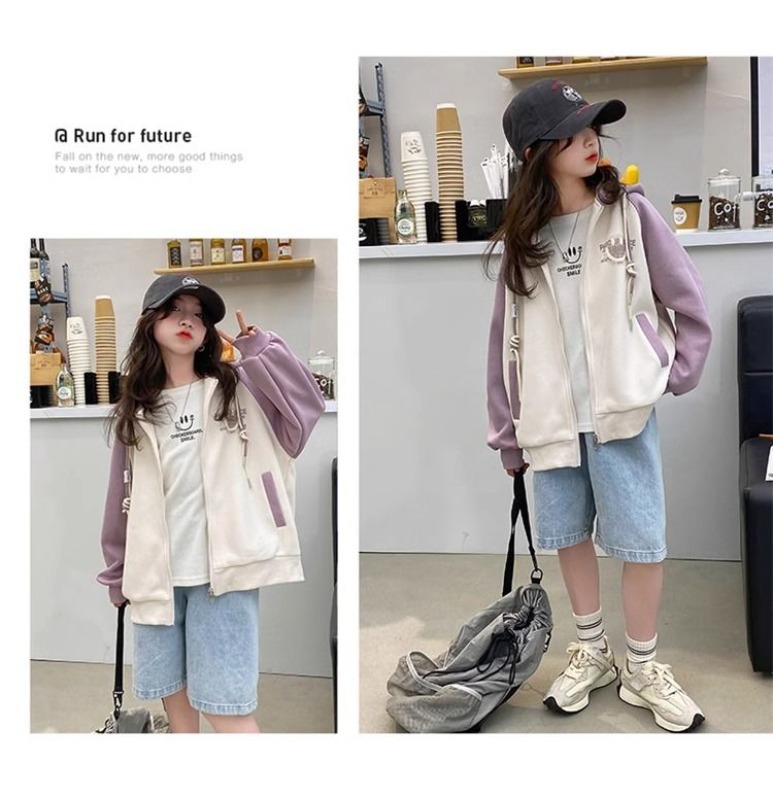 소녀 가을 코트 2025 새로운 서양 스타일 큰 어린이 캐주얼 후드 야구 세트 봄과 가을 카디건 탑스토어 가기