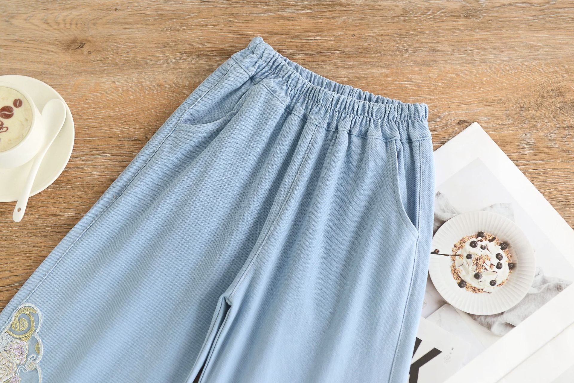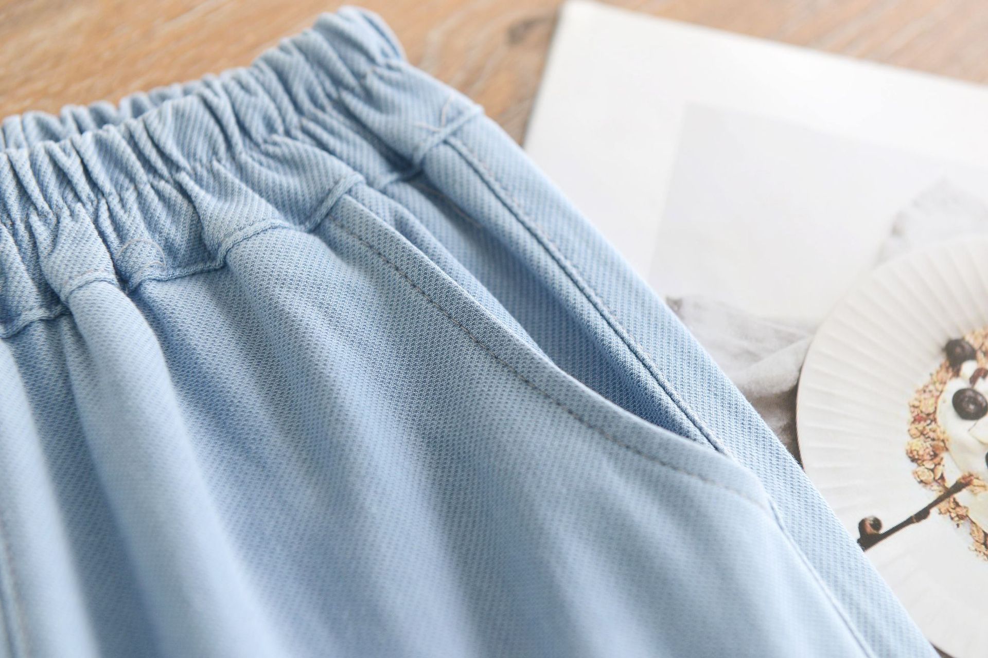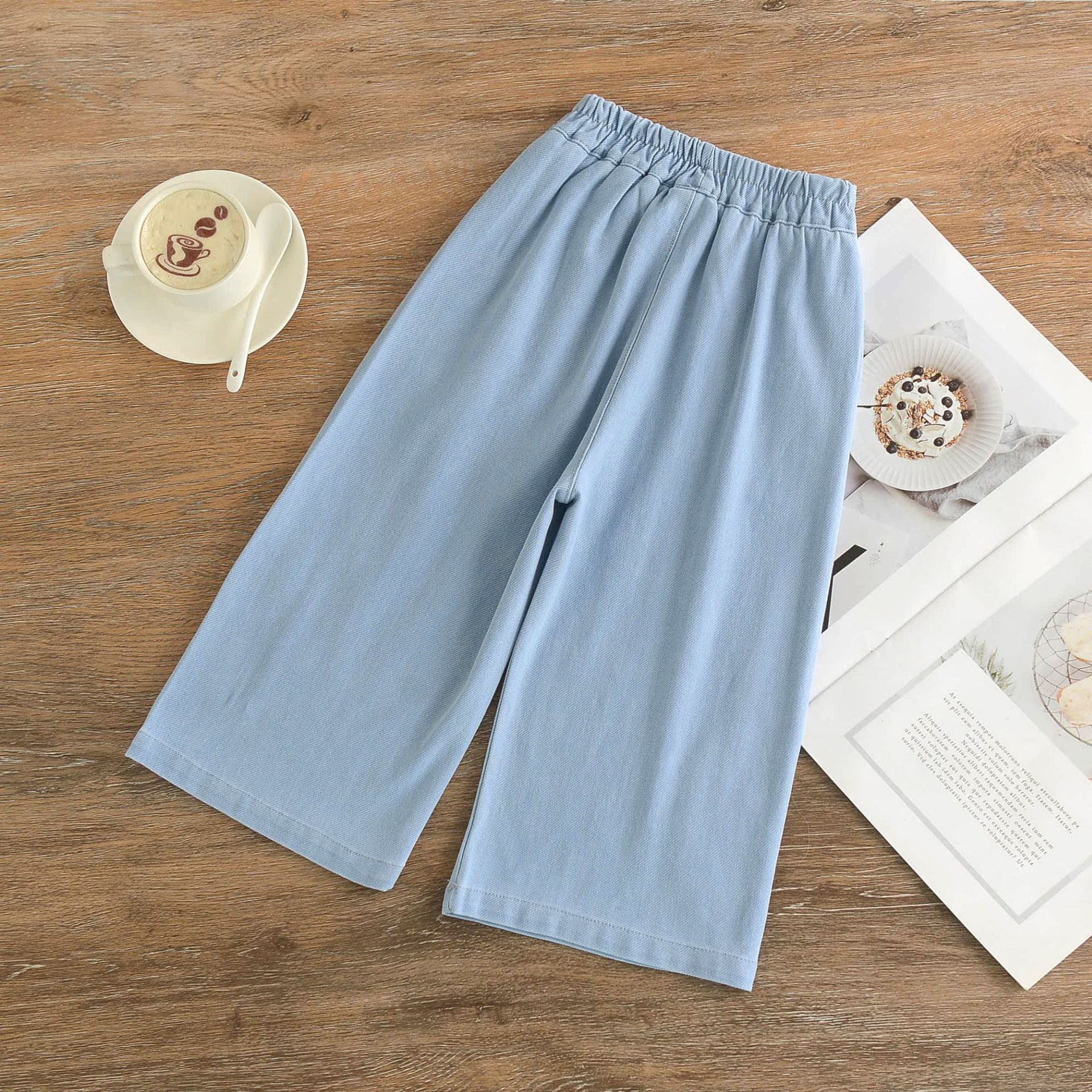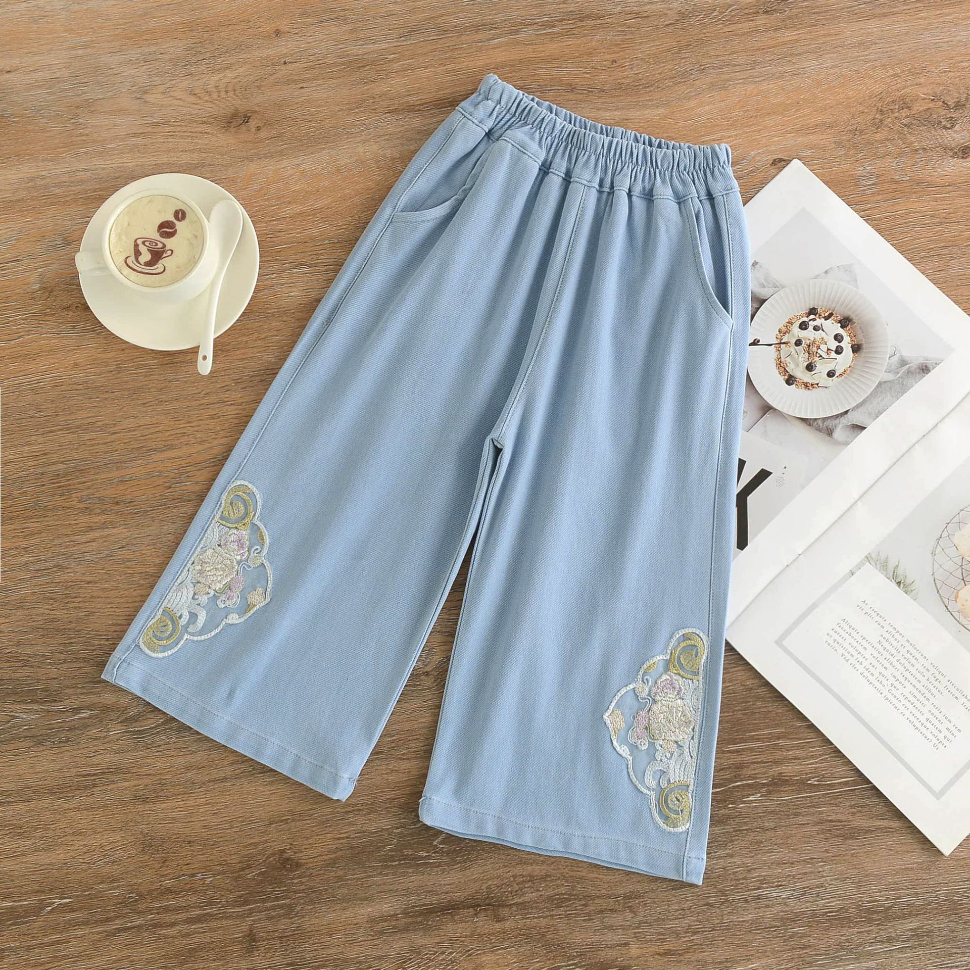 여아 중국풍 니트 스트레치 데님 7부 바지, 아동 레이스 바지, 여아용 얇은 스포츠 캐주얼 바지스토어 가기