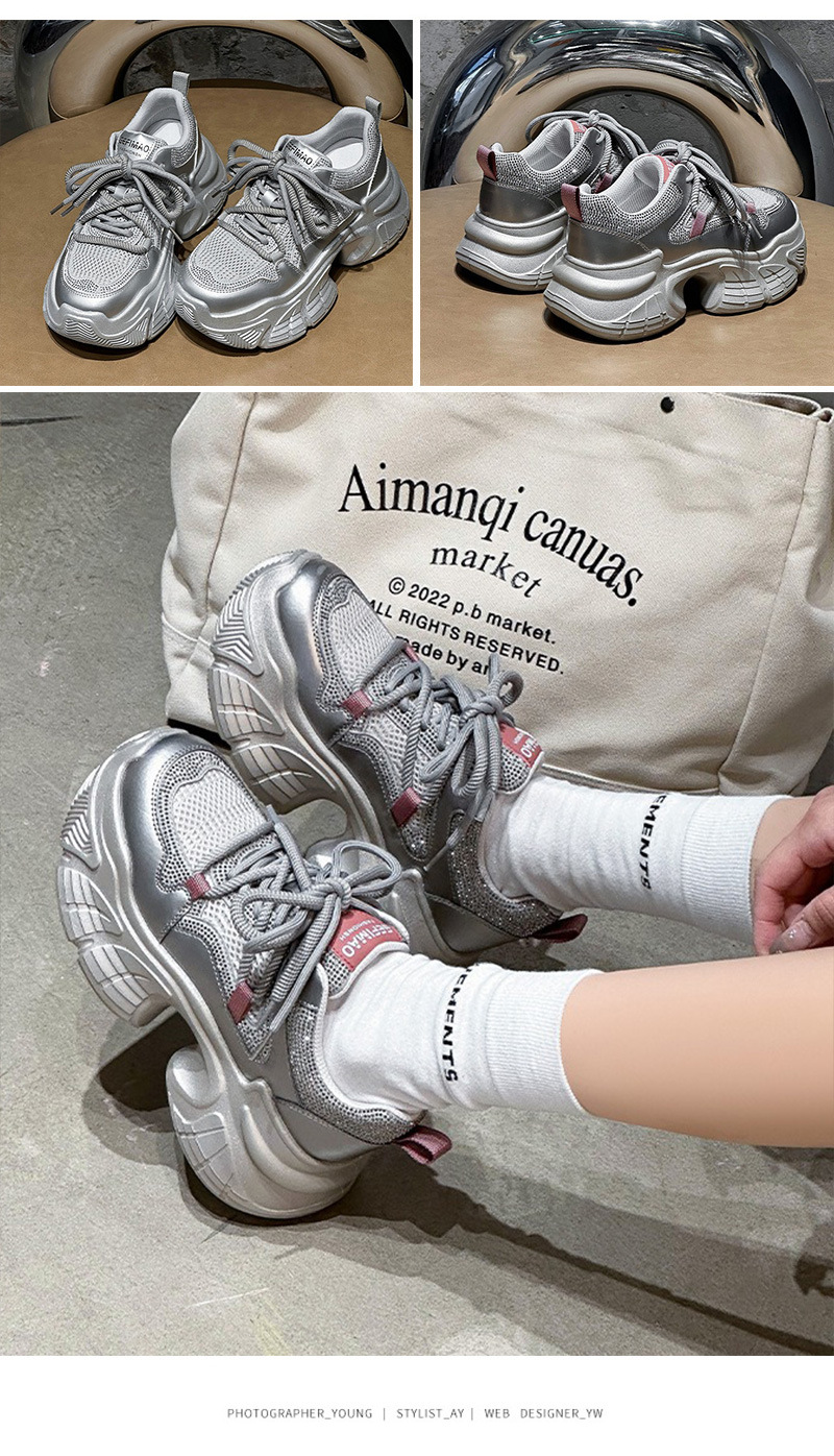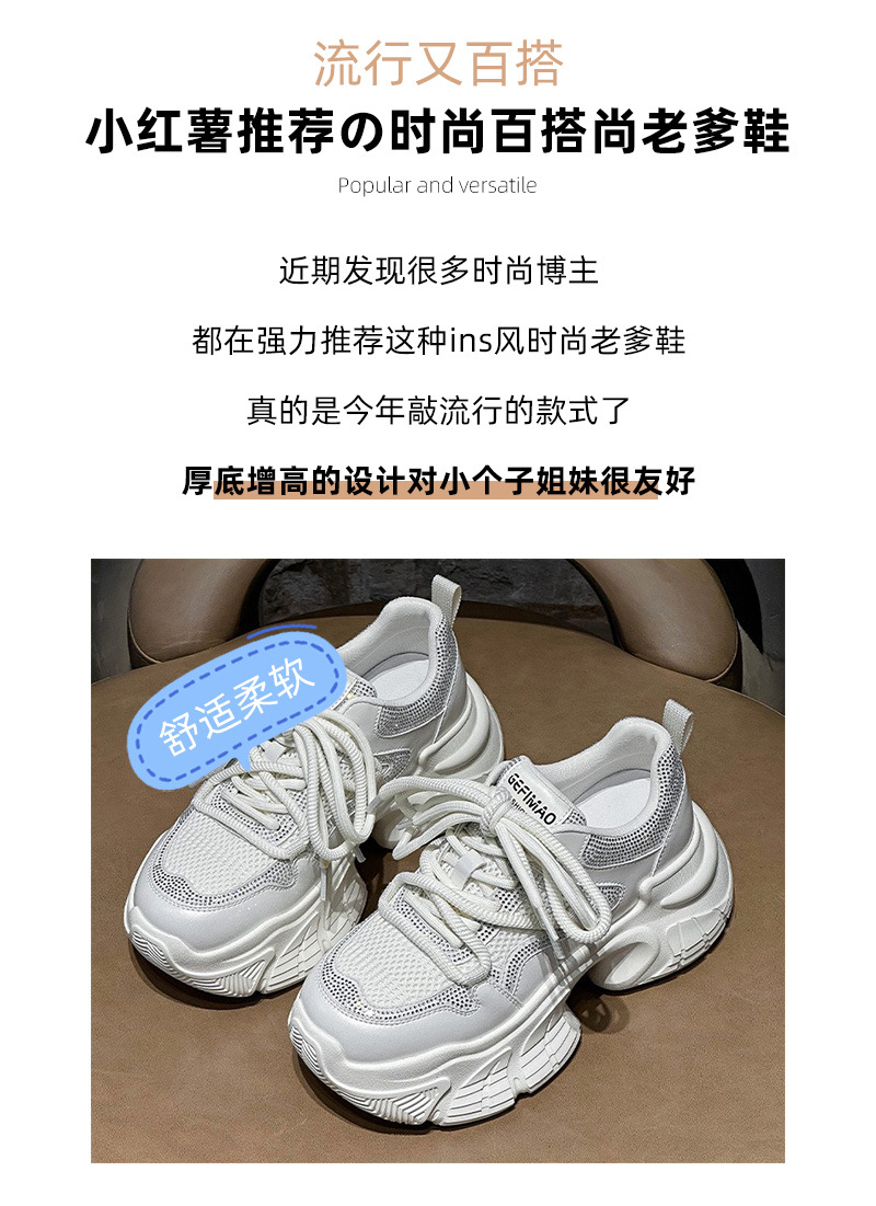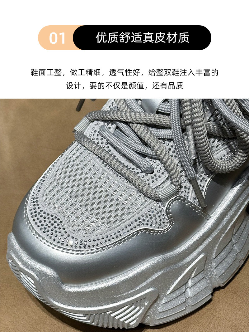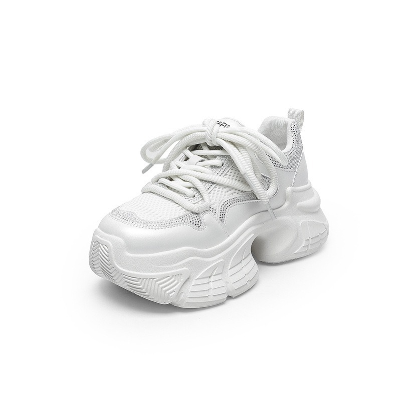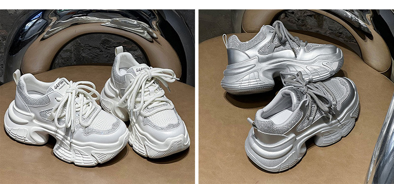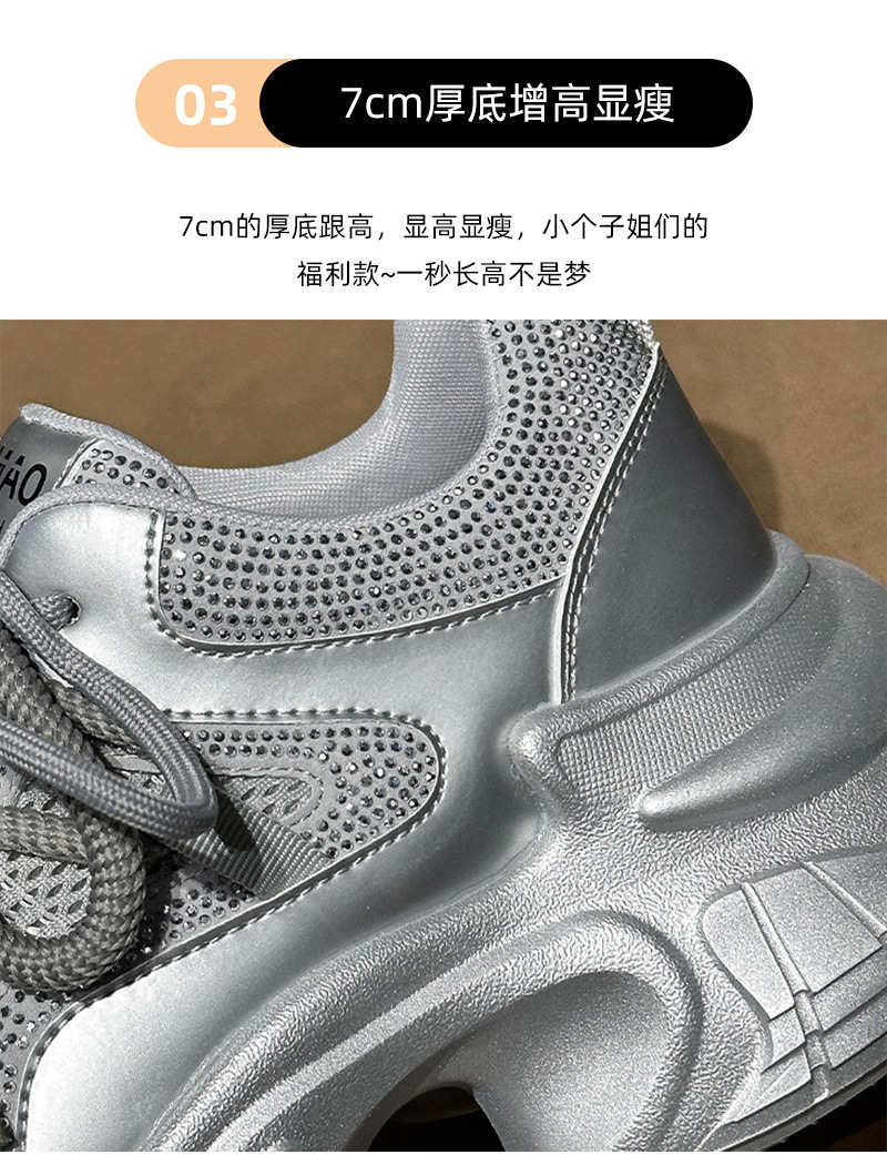 7CM 증가 아빠 신발 여성 2025 봄과 여름 모조 다이아몬드 머핀 두꺼운 바닥 작은 가죽 캐주얼 운동화스토어 가기