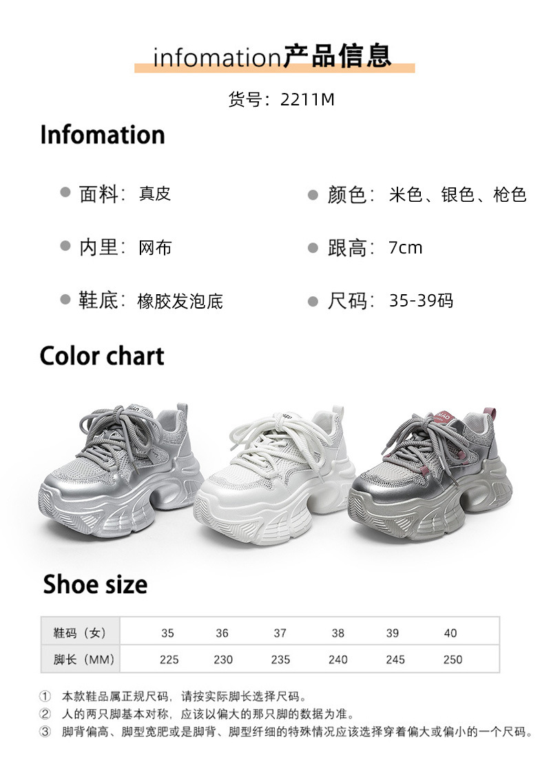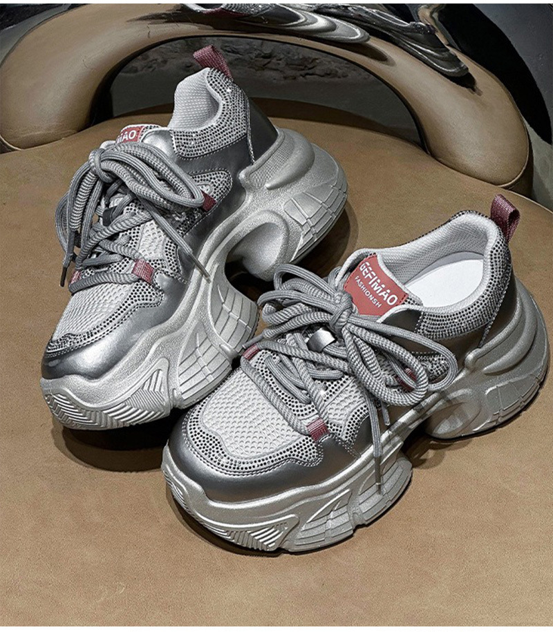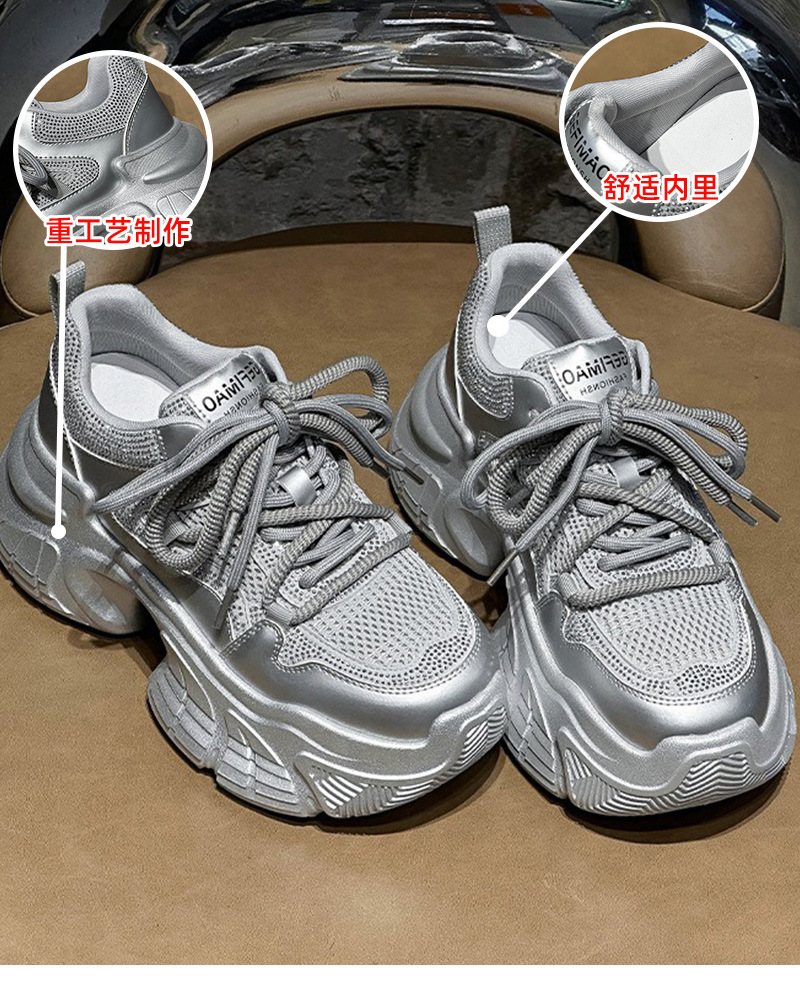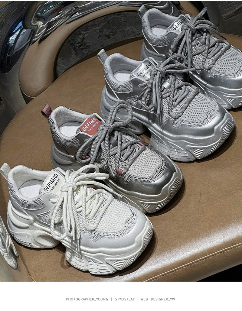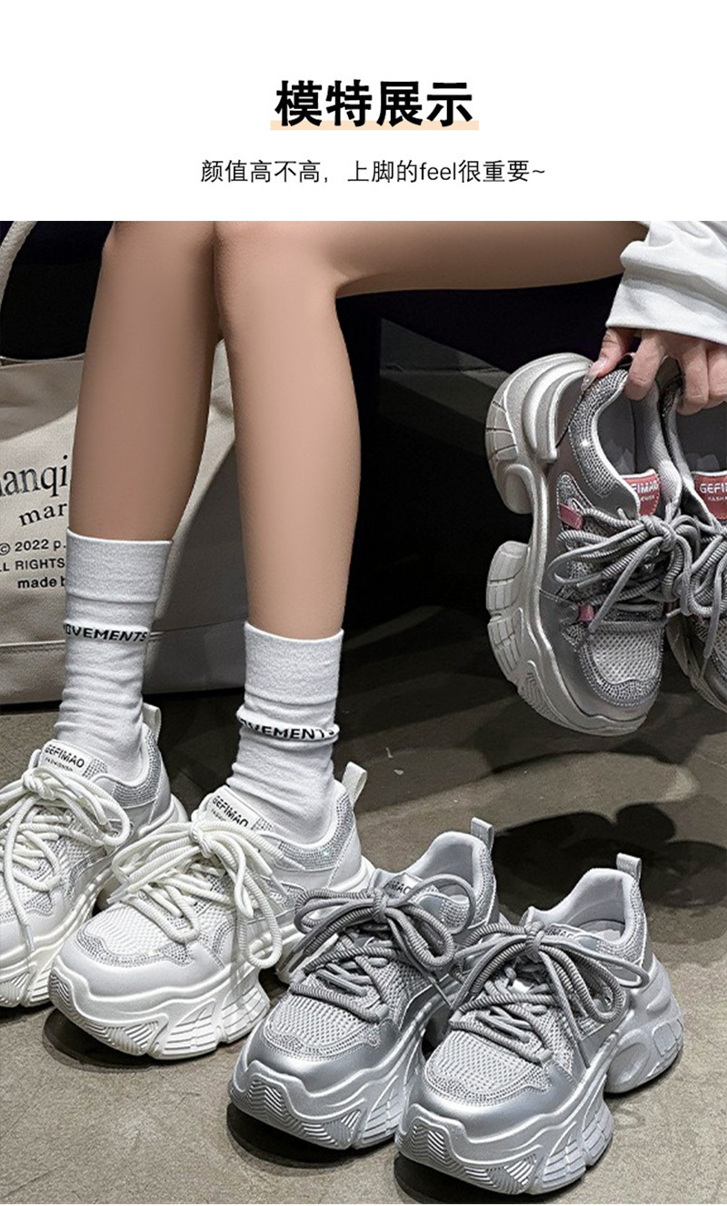 7CM 증가 아빠 신발 여성 2025 봄과 여름 모조 다이아몬드 머핀 두꺼운 바닥 작은 가죽 캐주얼 운동화스토어 가기