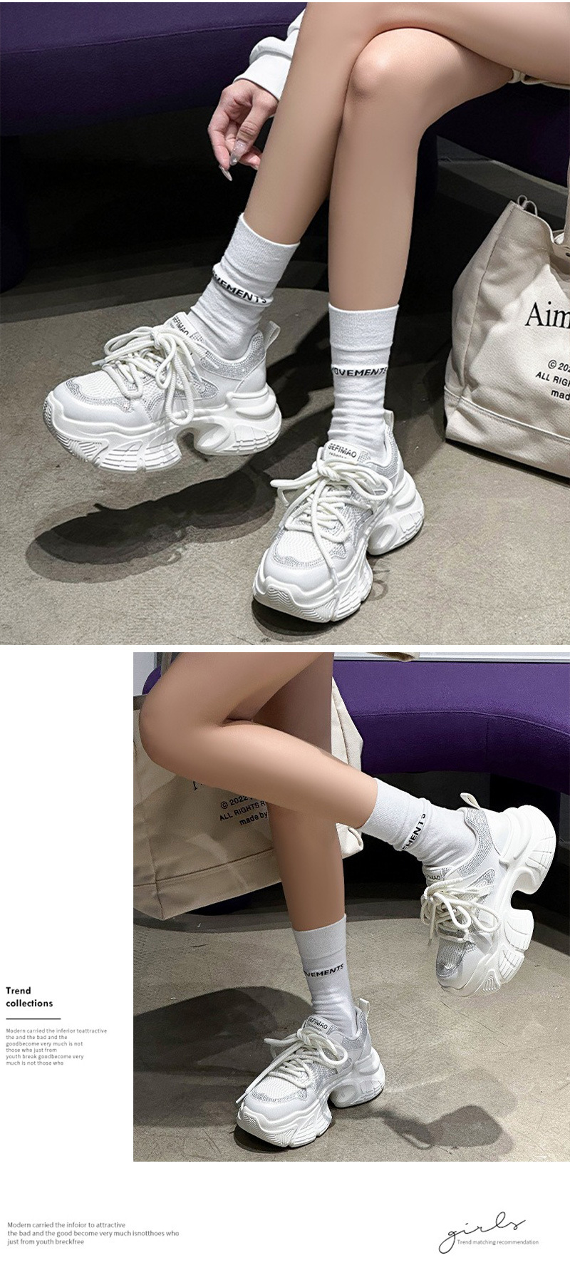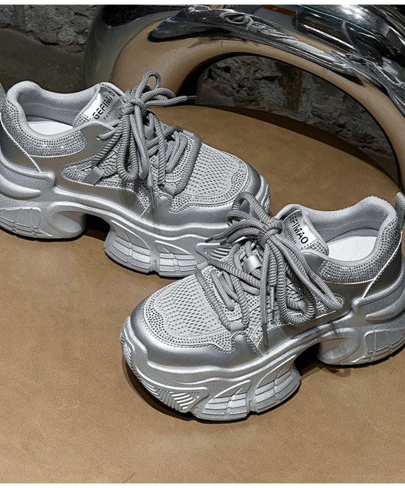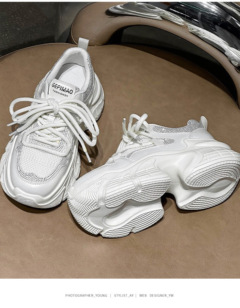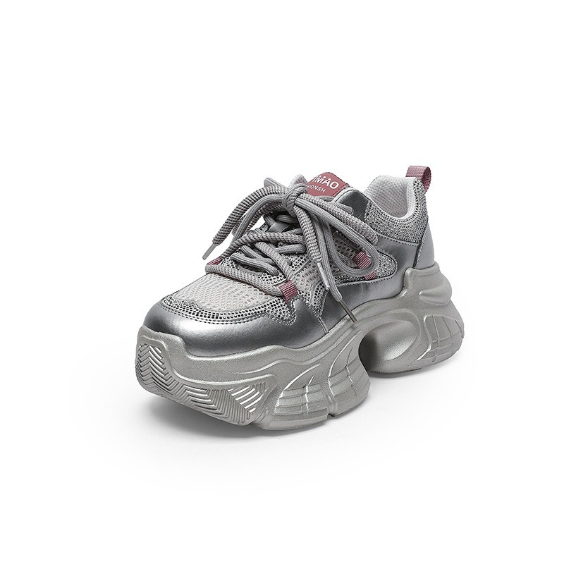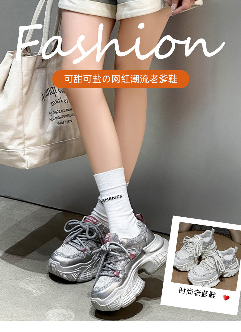 7CM 증가 아빠 신발 여성 2025 봄과 여름 모조 다이아몬드 머핀 두꺼운 바닥 작은 가죽 캐주얼 운동화스토어 가기