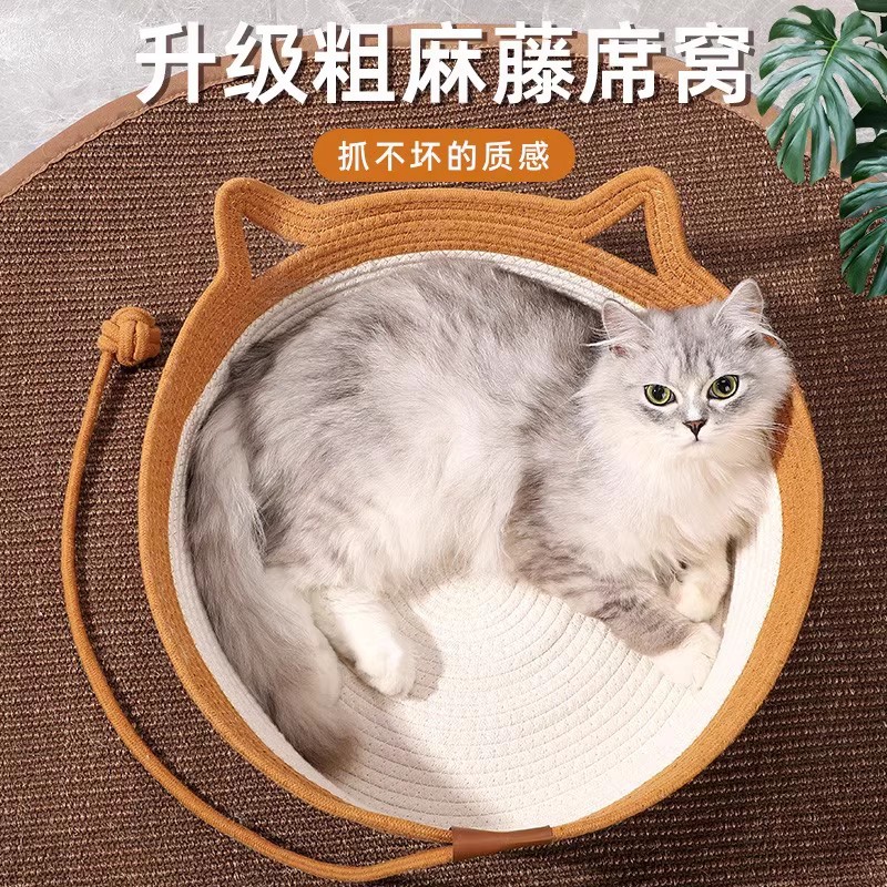거친 대마 등나무 고양이 둥지 사계절 유니버설 여름 고양이 침대 짠 고양이 고양이 잠자는 매트 여름 개 둥지 애완 동물스토어 가기