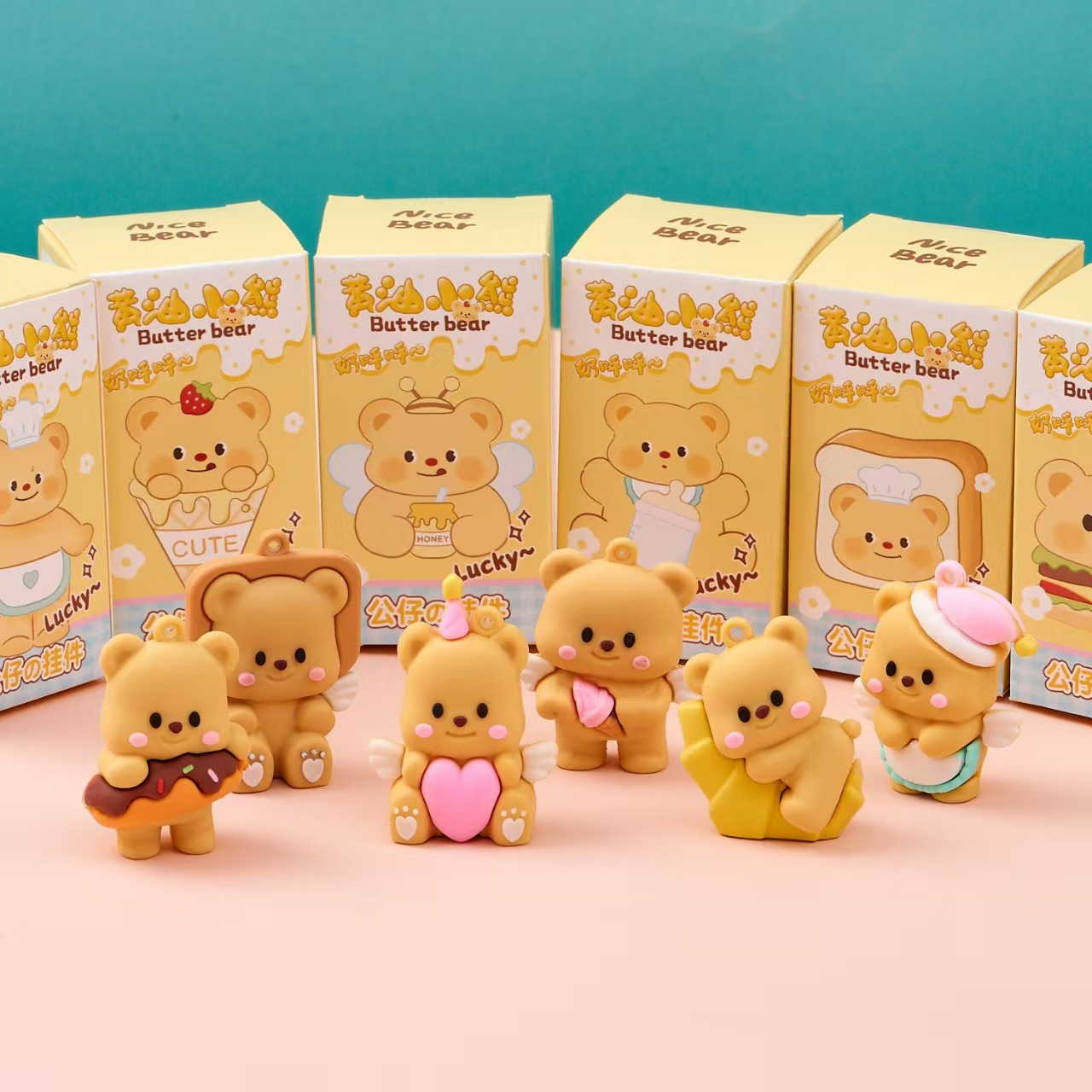 크로스보더 버터베어 블라인드 박스 디저트 베어 레진 장식품 어린이 어린이날 학교 상품 열쇠고리 인형 귀여운