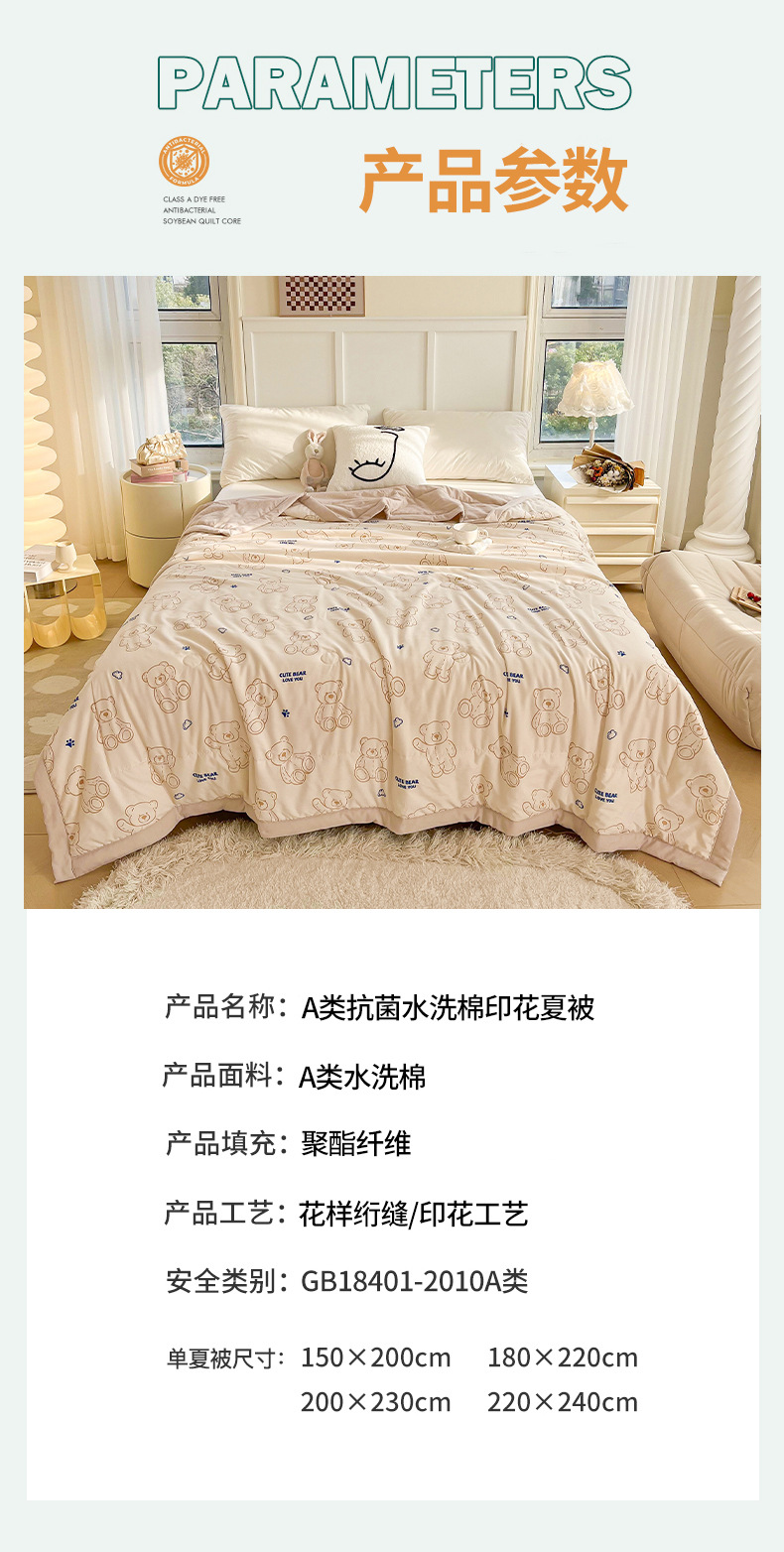클래스 A 여름 시원한 이불 세척 면 인쇄 여름 이불 가정용 부드러운 왁스 에어컨 이불 기숙사 얇은 이불 여름 어린이 이불