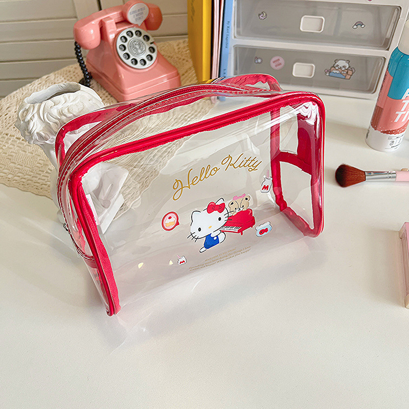 산리오 만화 투명 필통 인스 스타일 방수 여행 세면도구 가방 대용량 휴대용 화장품 가방 문구류스토어 가기