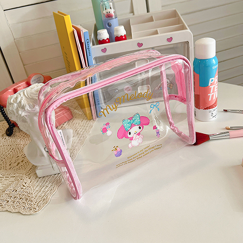 산리오 만화 투명 필통 인스 스타일 방수 여행 세면도구 가방 대용량 휴대용 화장품 가방 문구류