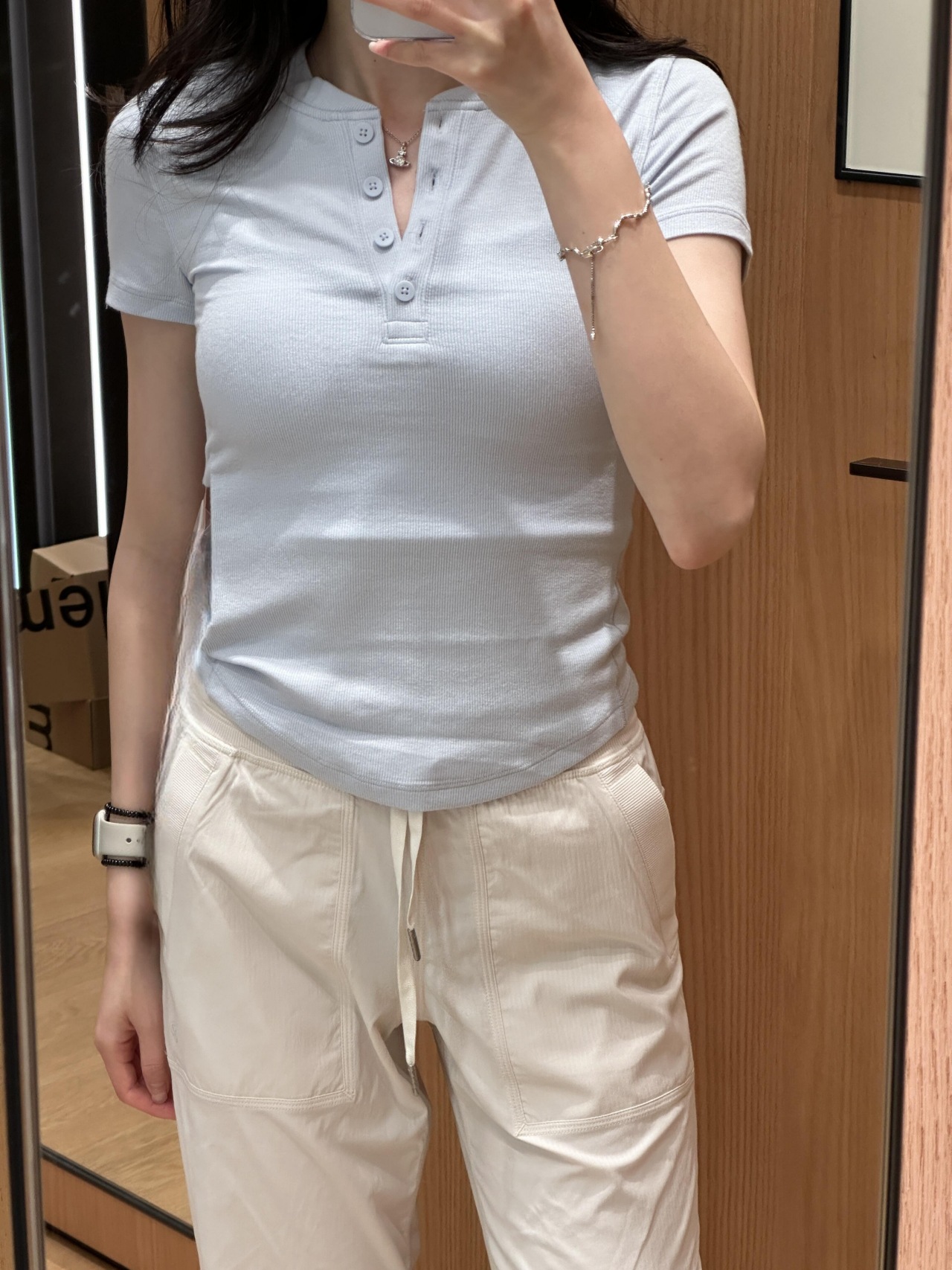 새로운 도착 Henley 짧은 소매 셔츠 여성의 높은 탄성 갈비뼈 니트 V-Neck 티셔츠 슬림-핏 요가 옷 버튼 스포츠베이스 셔츠 여름스토어 가기