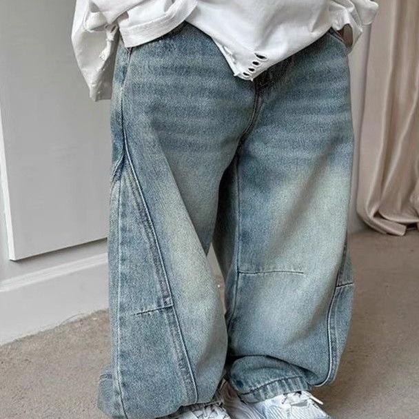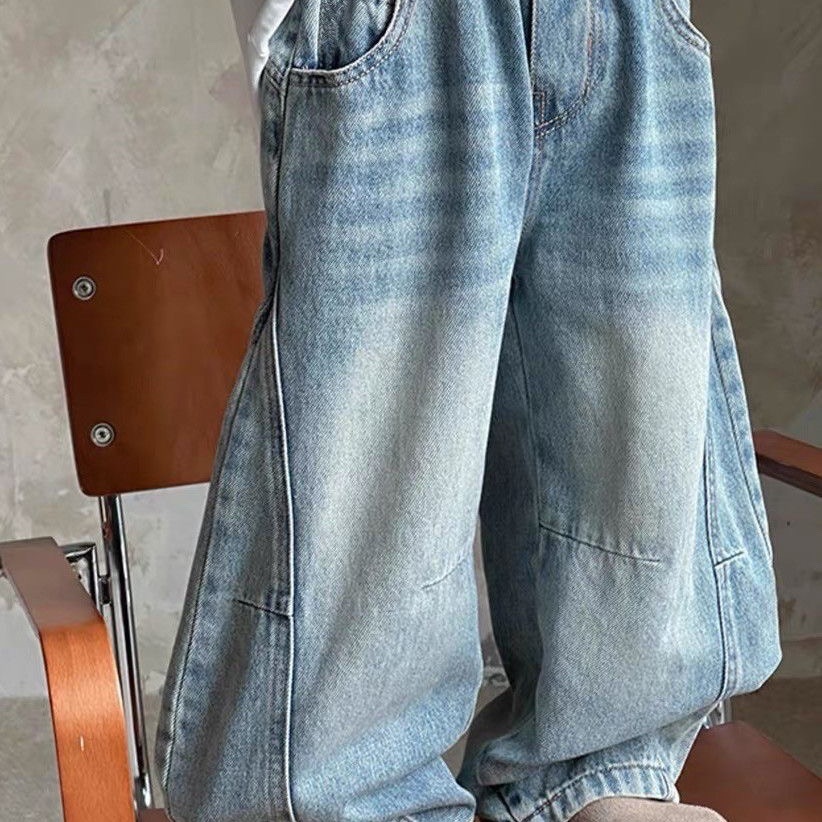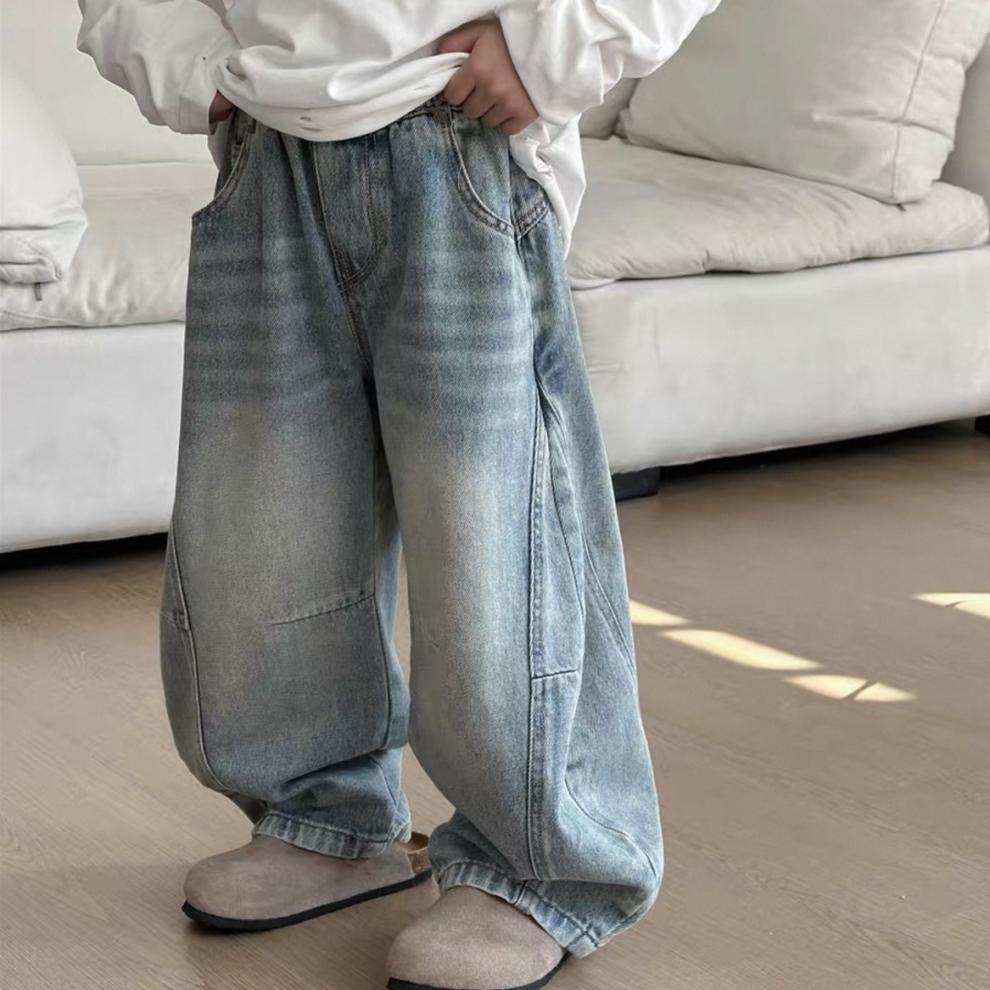 남아용 데님 팬츠 신상 봄 아동 바지 남자아이 루즈핏 멋스러운 배색 캐주얼 긴바지 봄가을 유행스토어 가기