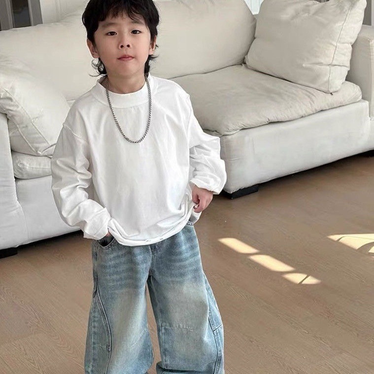 남아용 데님 팬츠 신상 봄 아동 바지 남자아이 루즈핏 멋스러운 배색 캐주얼 긴바지 봄가을 유행