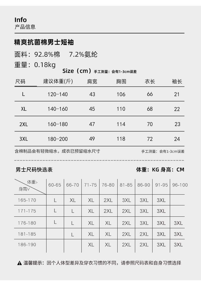 [7A 항균 시원한 느낌] 반팔 티셔츠 남성 무지 코튼 항균 라운드넥 반팔 한국식 고급 남성 하의