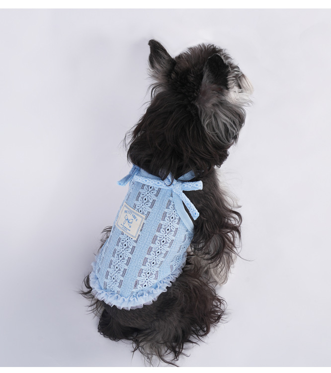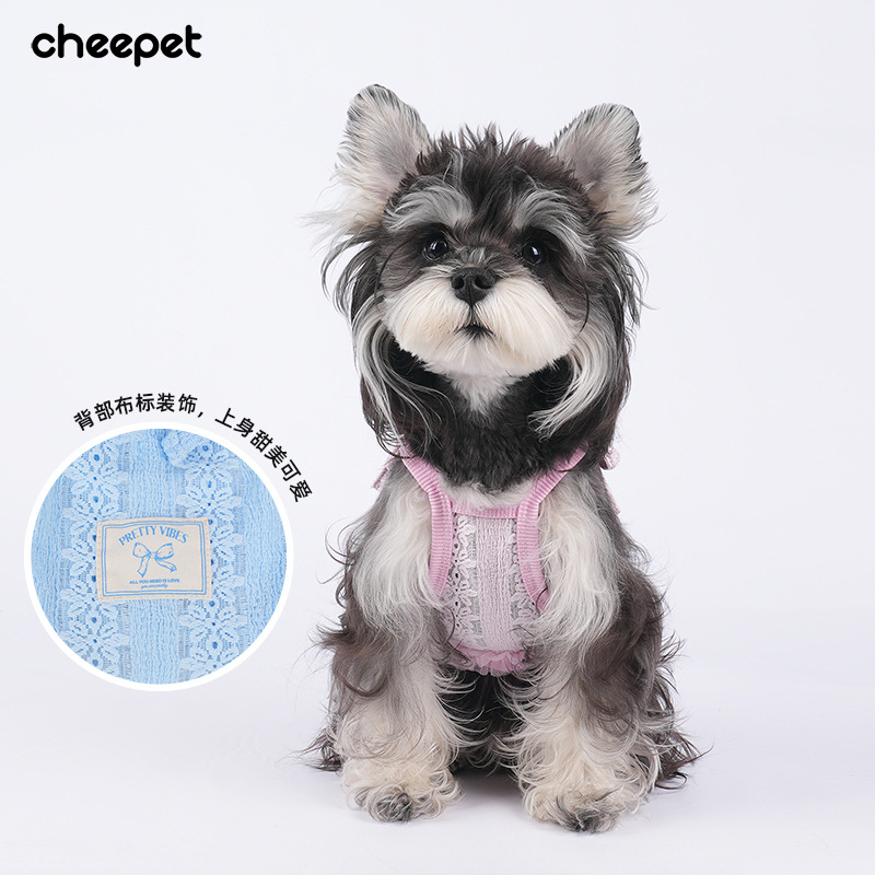 재미 2025 여름 의류 애완 동물 슬링 빈티지 활 레이스 레이스 하프 테디 개 반장 의류스토어 가기