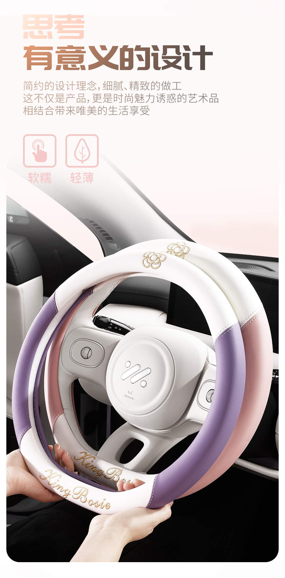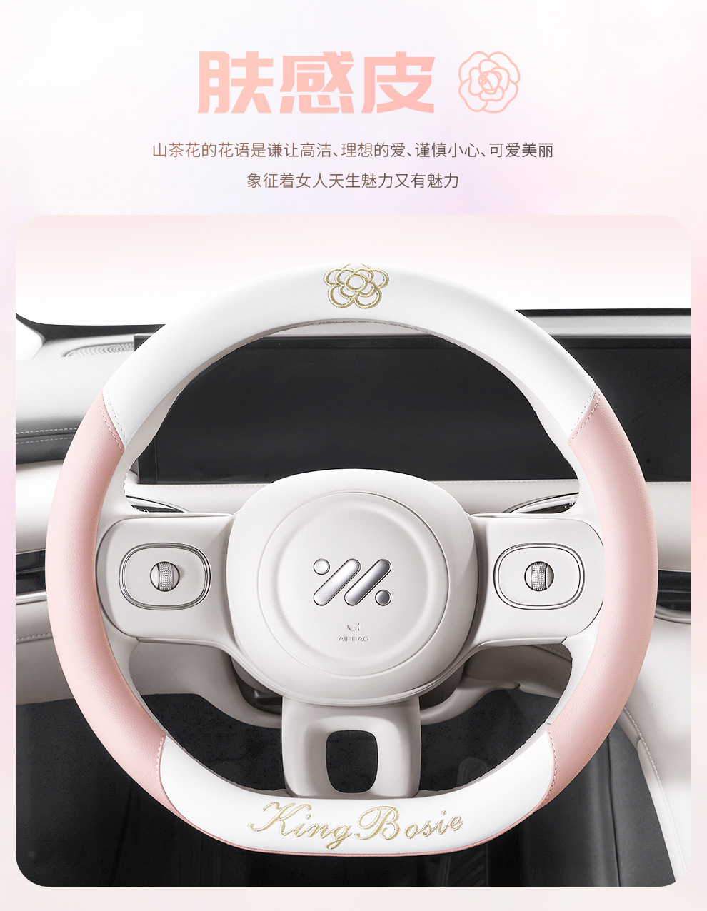 스티어링 휠 커버 사계절 유니버설 소형 향수 여성 자동차 가죽 미끄럼 방지 땀 흡수 자동차 핸들 커버 자동차 보호 커버 여름