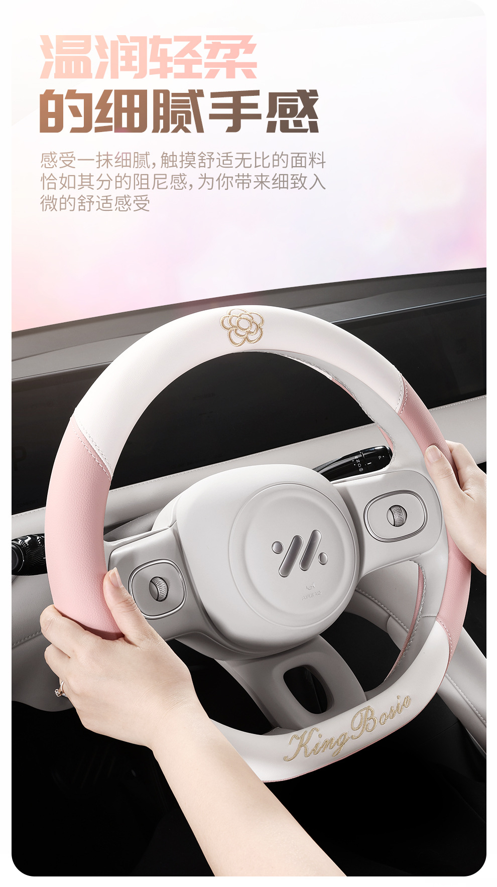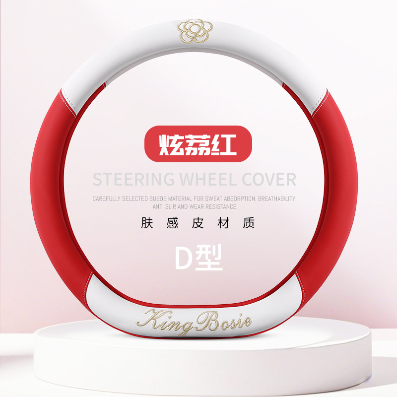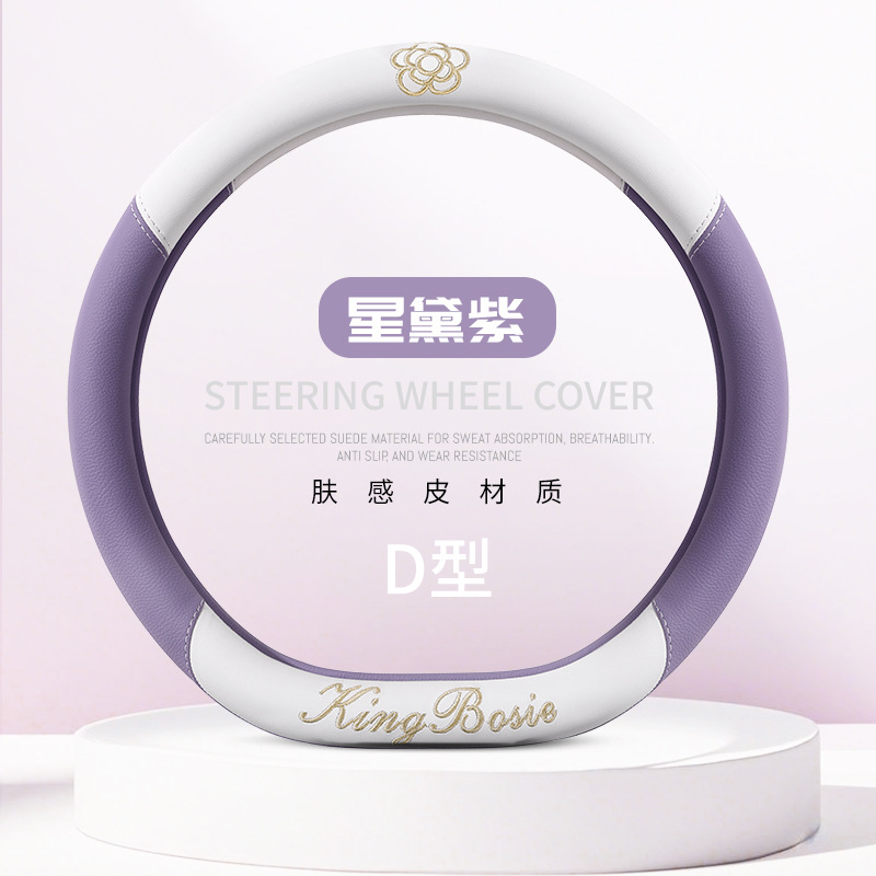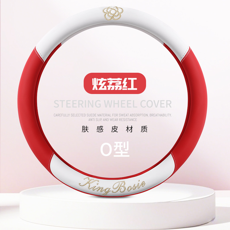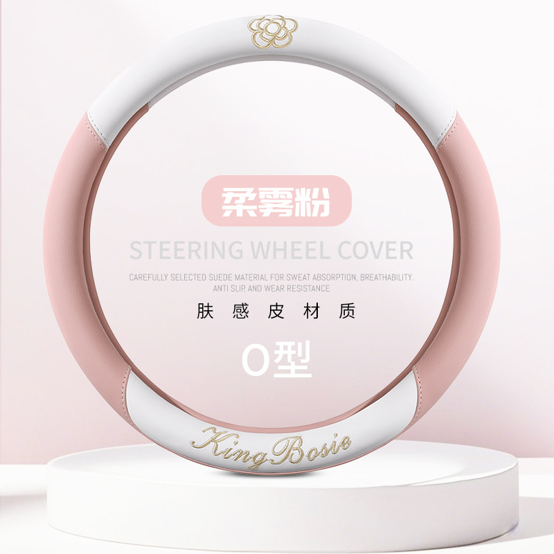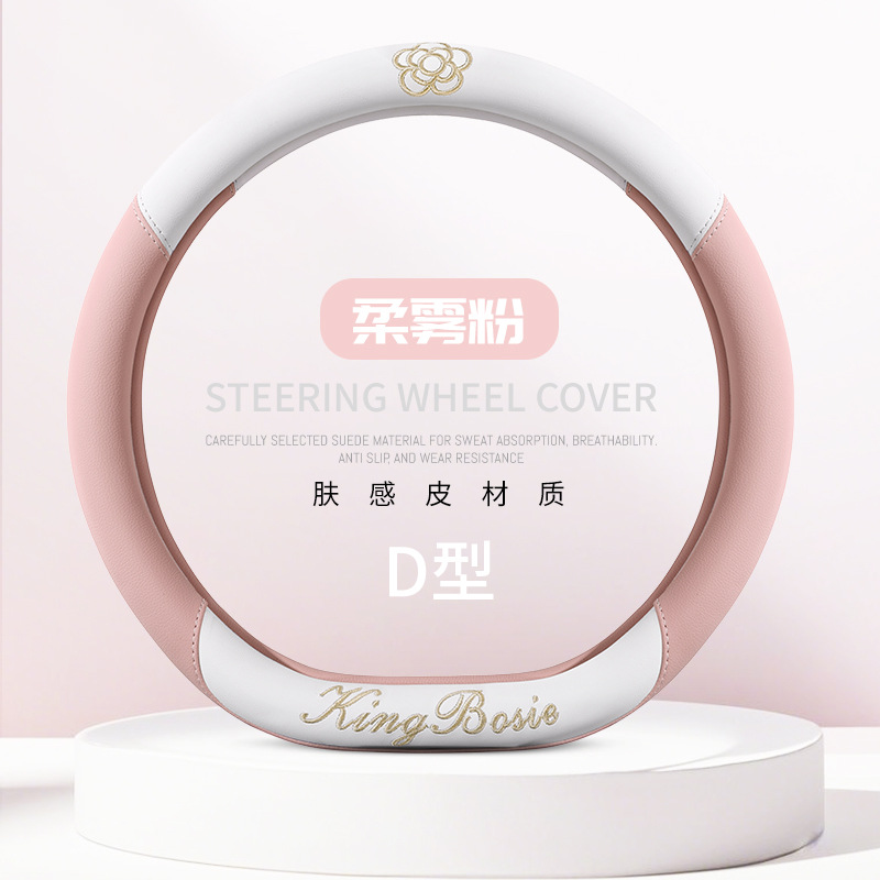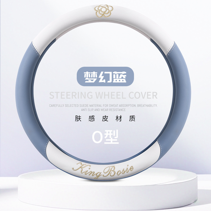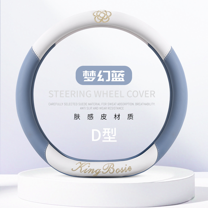 스티어링 휠 커버 사계절 유니버설 소형 향수 여성 자동차 가죽 미끄럼 방지 땀 흡수 자동차 핸들 커버 자동차 보호 커버 여름스토어 가기