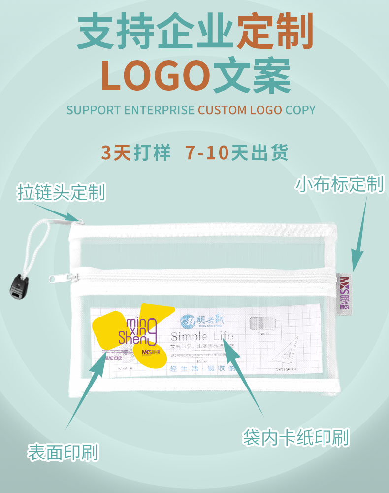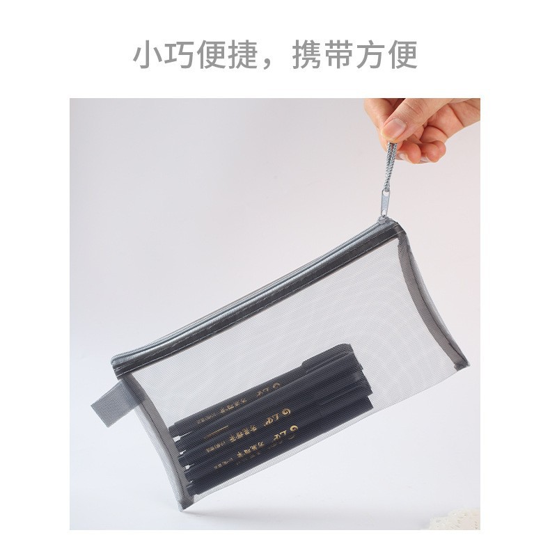 학생 시험을위한 A6 투명 메쉬 연필 가방 맞춤형 처리를위한 대용량 저장 연필 가방이있는 특수 휴대용 연필 가방