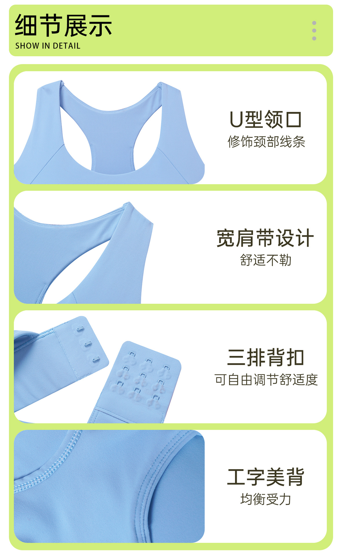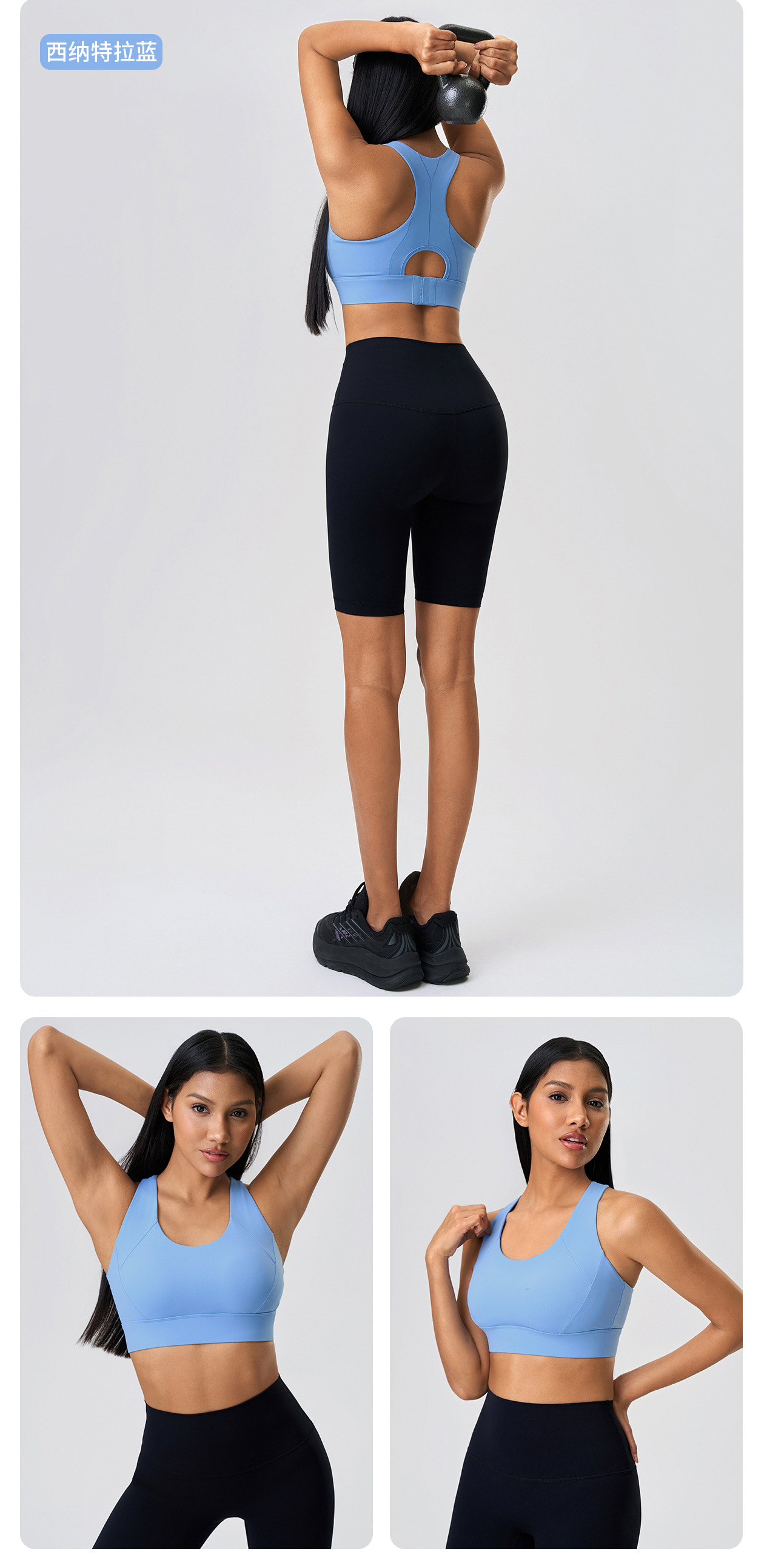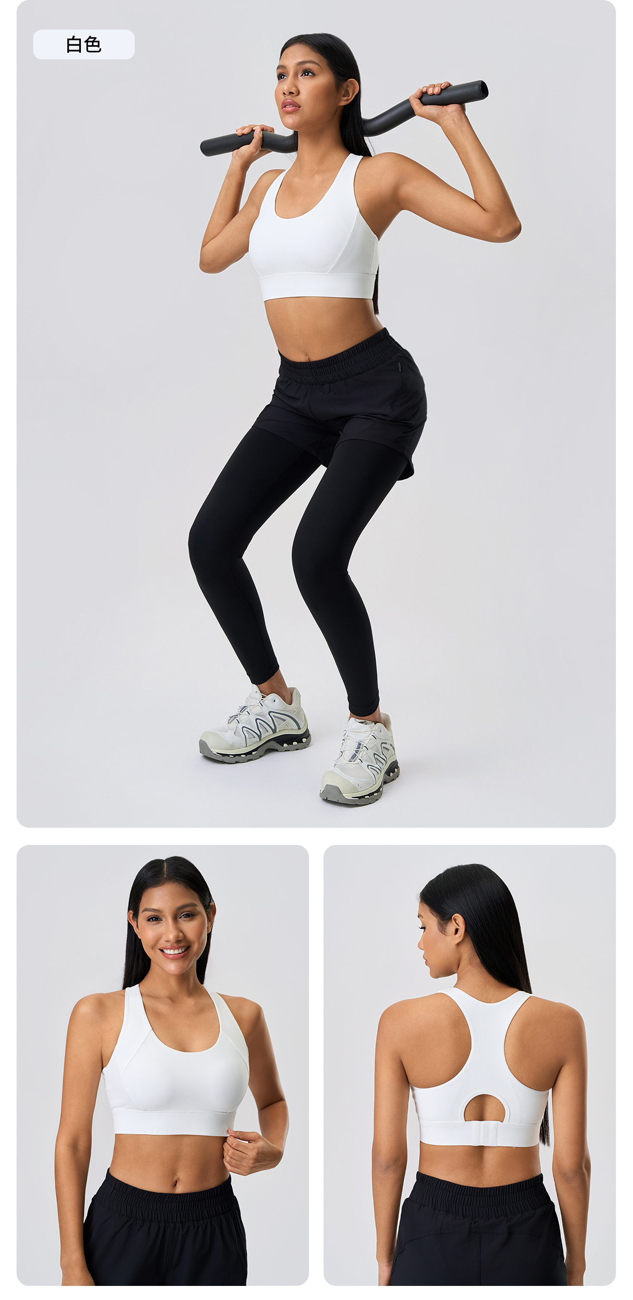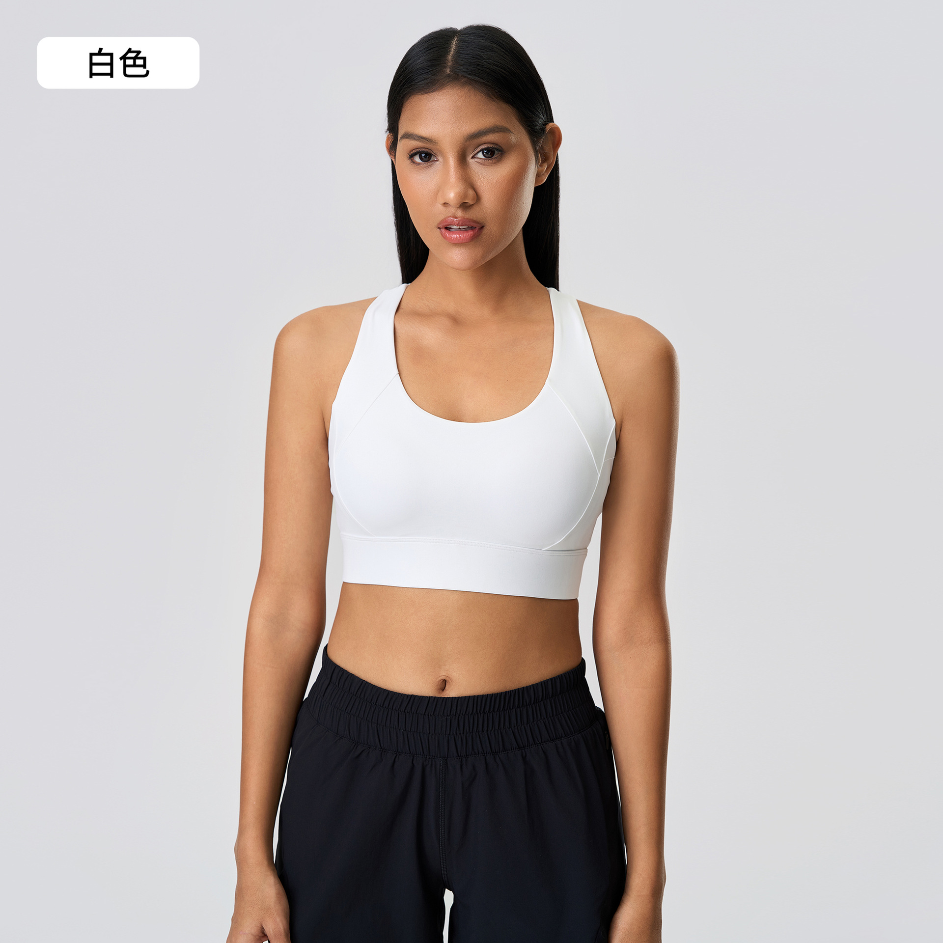고강도 충격 방지 스포츠 속옷 여성용 고정 컵 조정 가능한 버클 I-백 요가 탑 브라 D25065