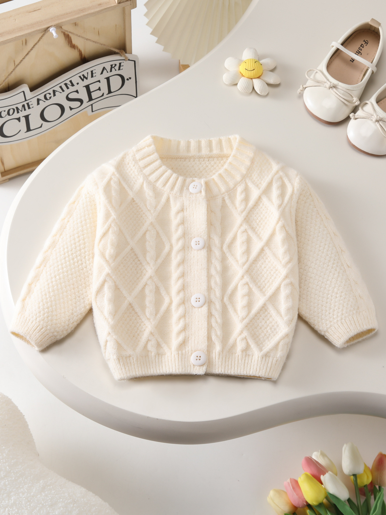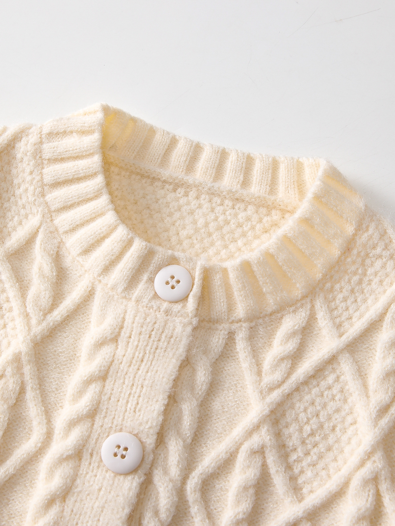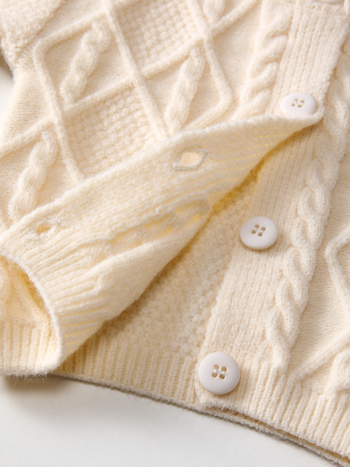 2025 국경 간 Ins 소년과 소녀 솔리드 컬러 라운드 넥 카디건 탑 어린이 니트웨어 스웨터 클래식 디스크 바늘 트위스트 로프