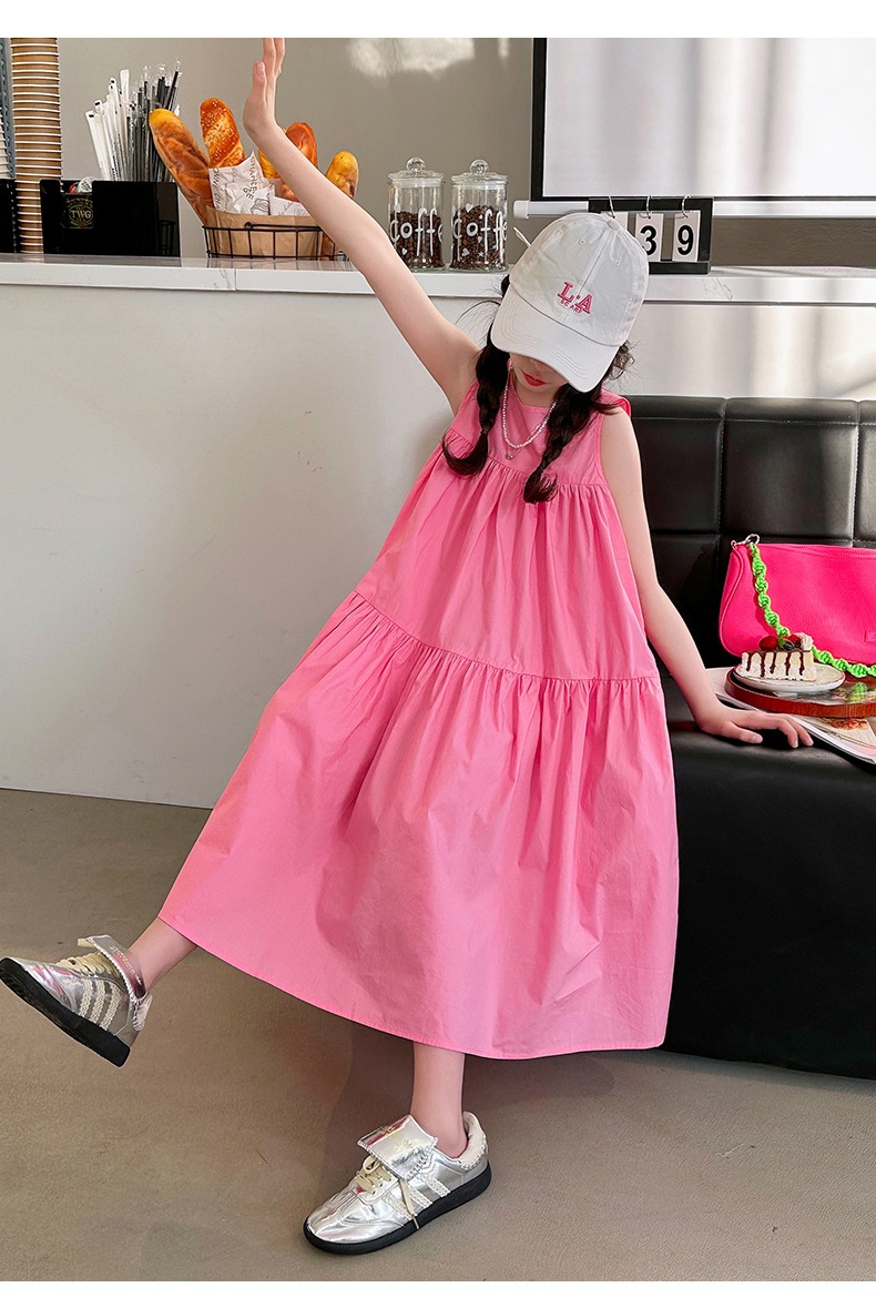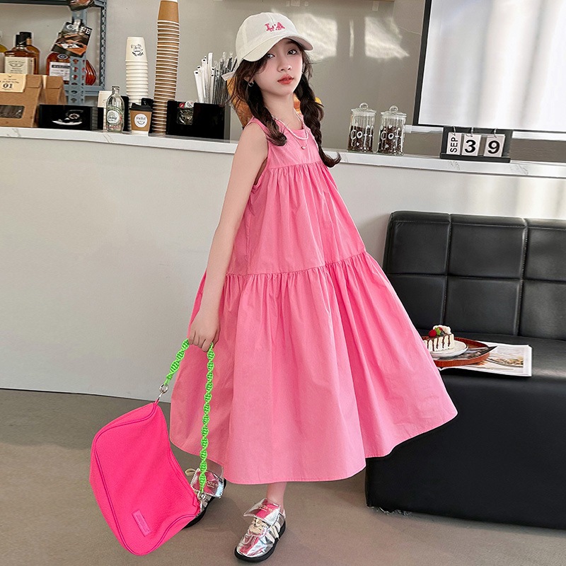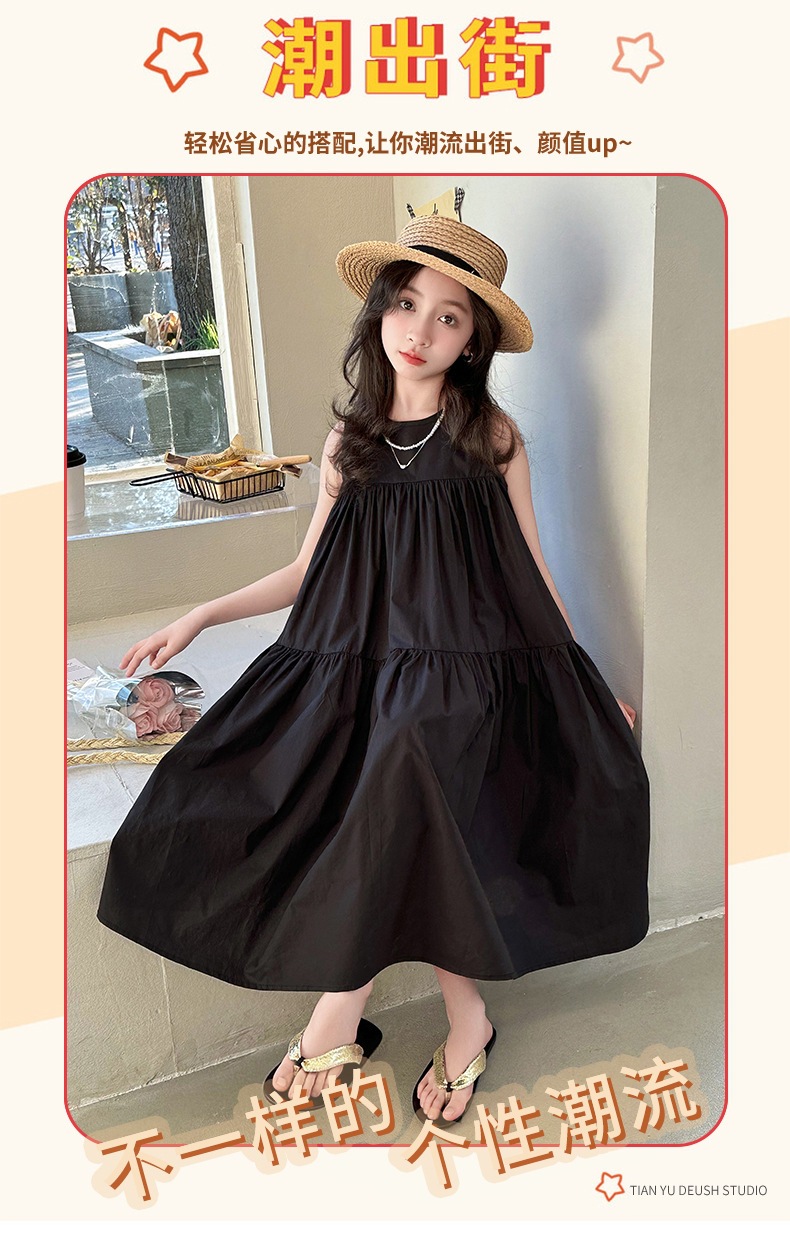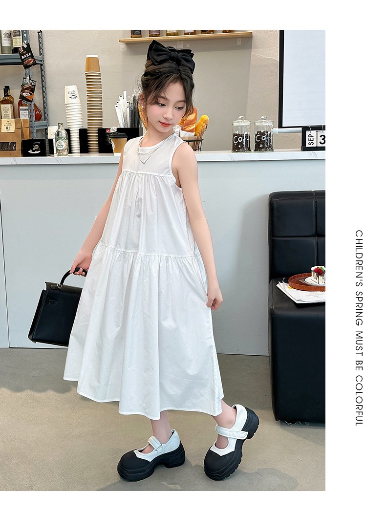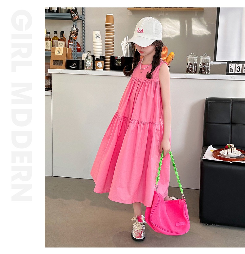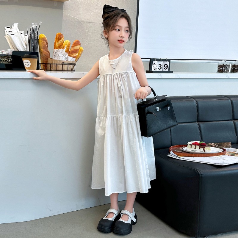 소녀 조끼 치마 2025 여름 새 소녀 면화 원피스 어린이 원피스 큰 어린이 서양식 긴 치마