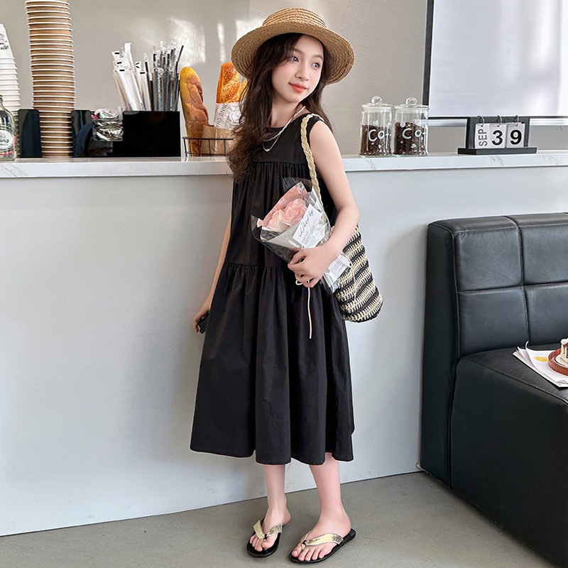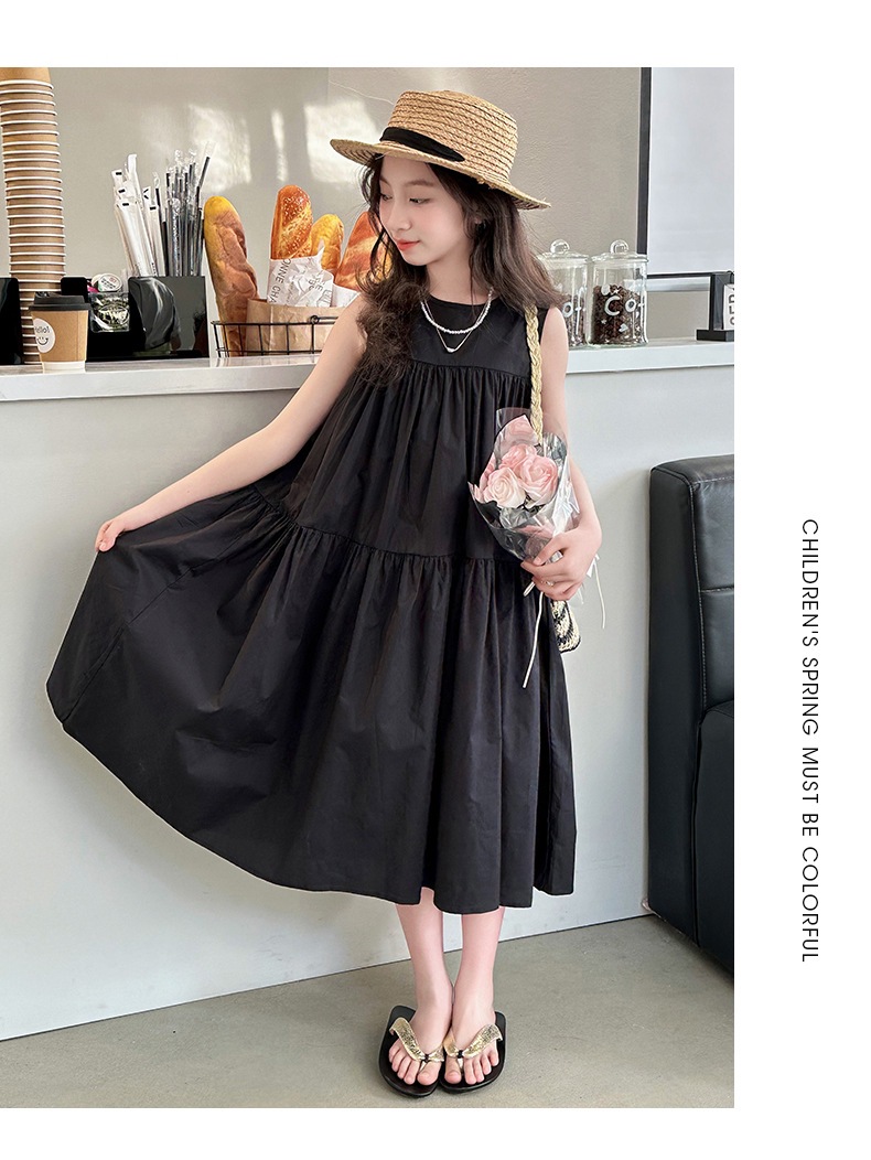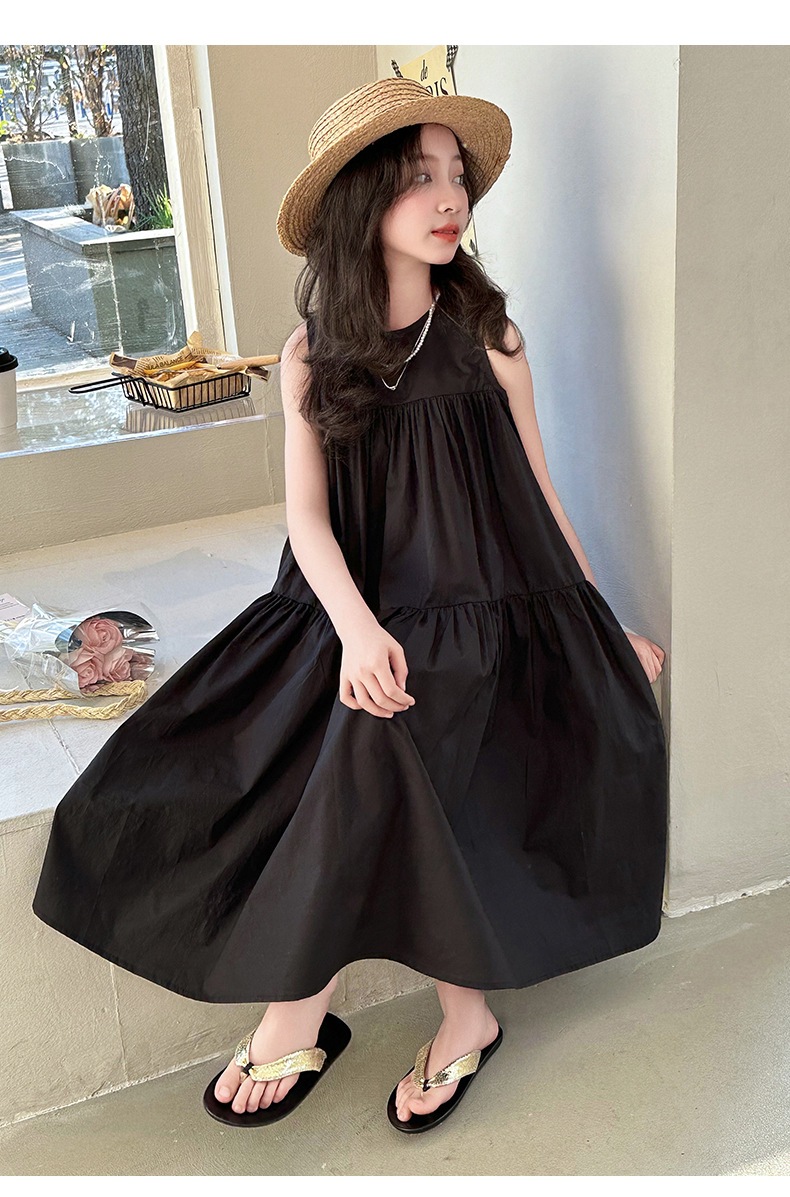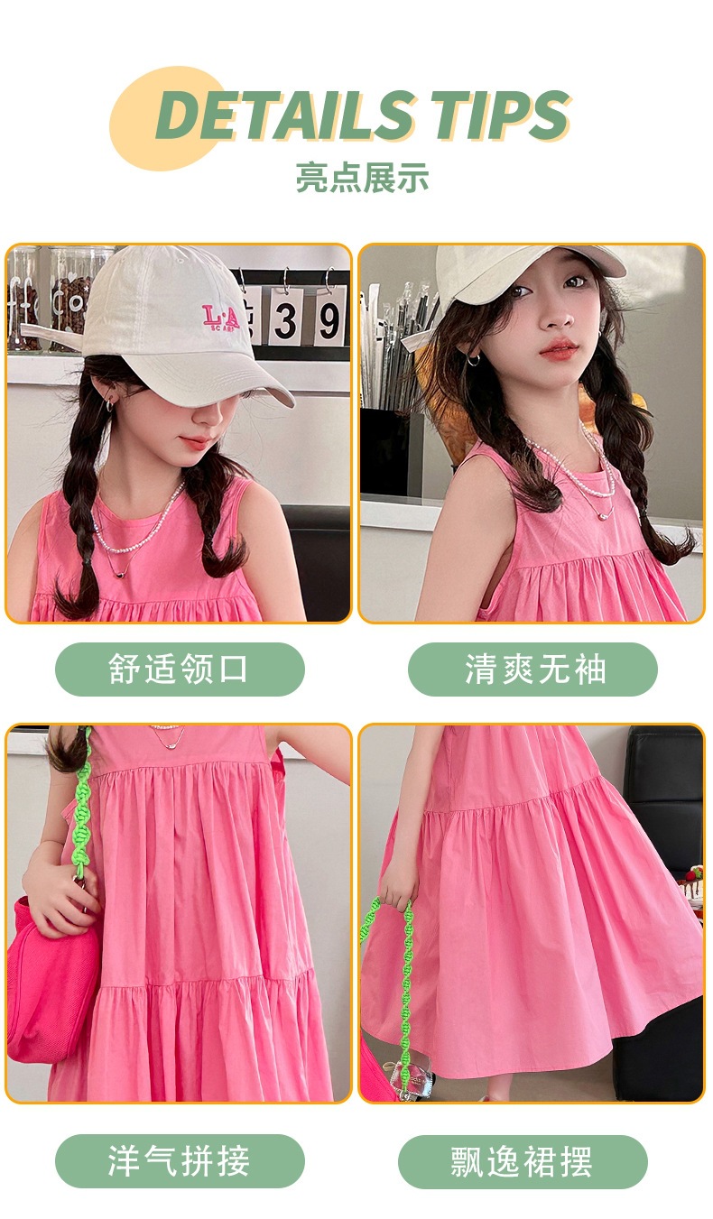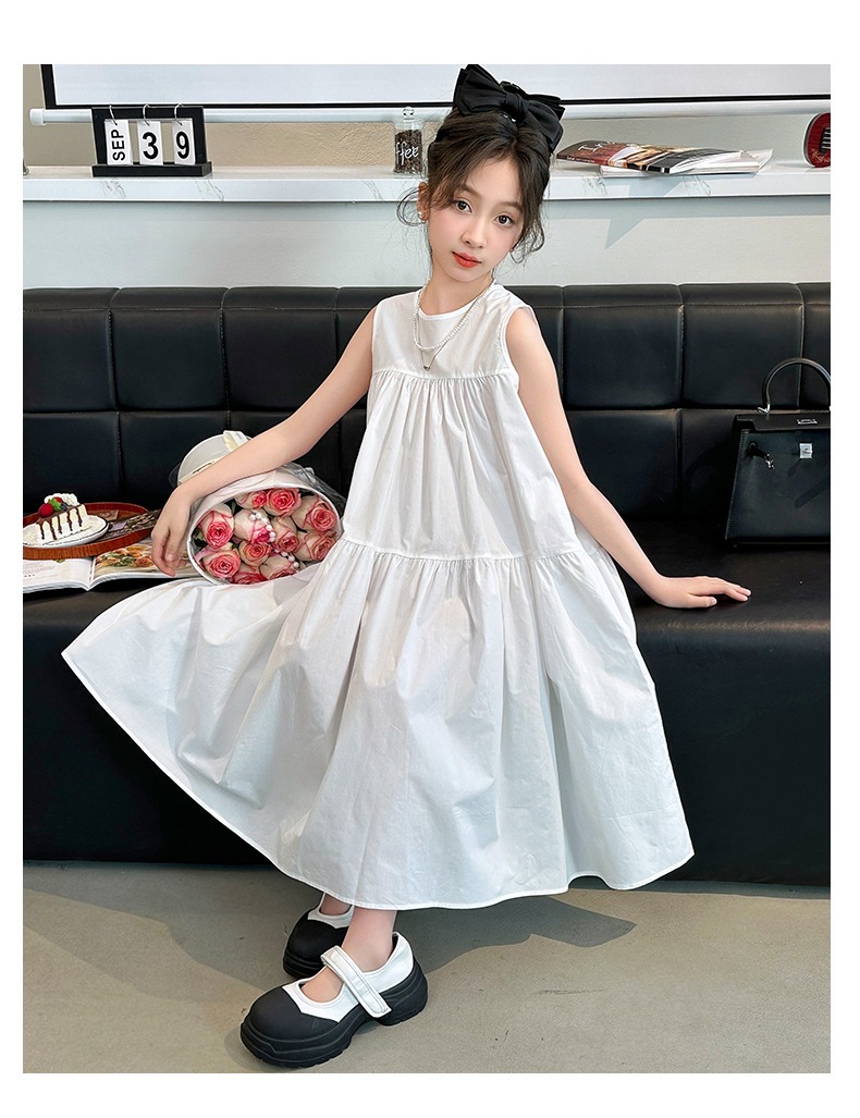 소녀 조끼 치마 2025 여름 새 소녀 면화 원피스 어린이 원피스 큰 어린이 서양식 긴 치마