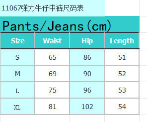 유럽과 미국 여성의 높은 허리 더블 버클 중간 길이 바지, Curled Edge 탄성 데님 바지 타기 바지스토어 가기