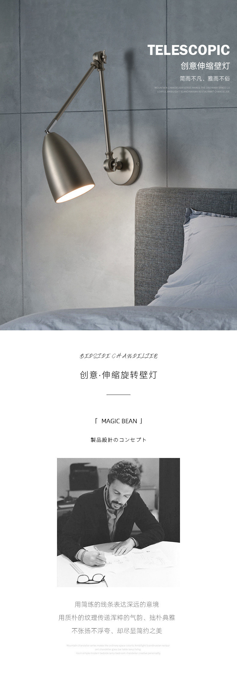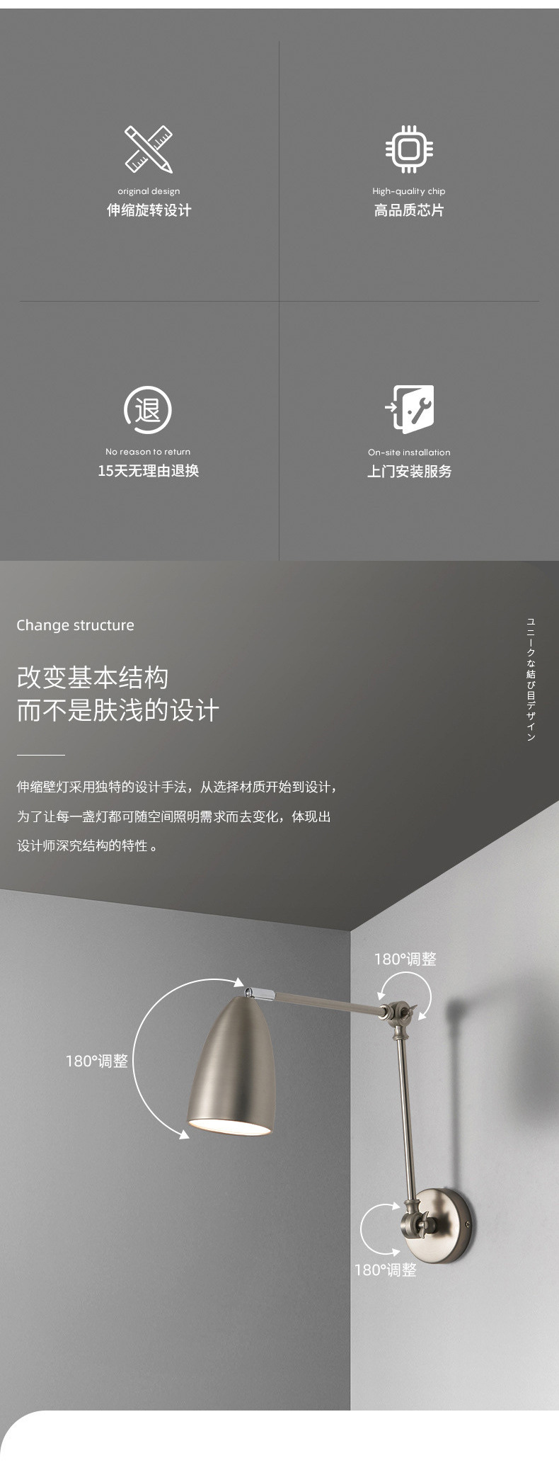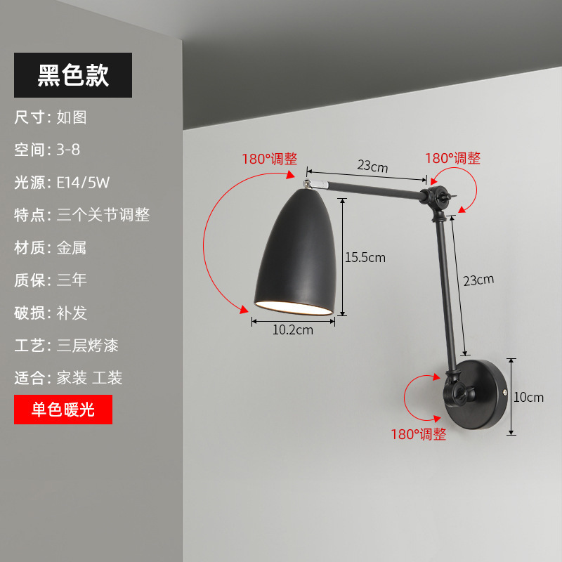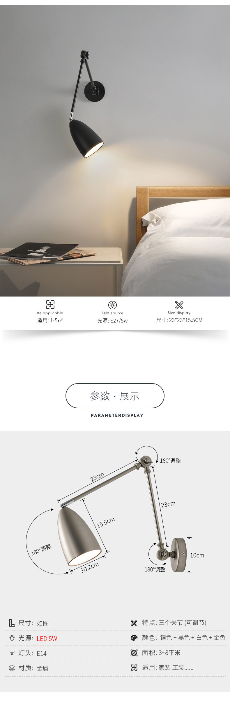 卧室床头灯壁灯北欧现代简约伸缩摇摆带摇臂长杆壁灯书房阅读灯