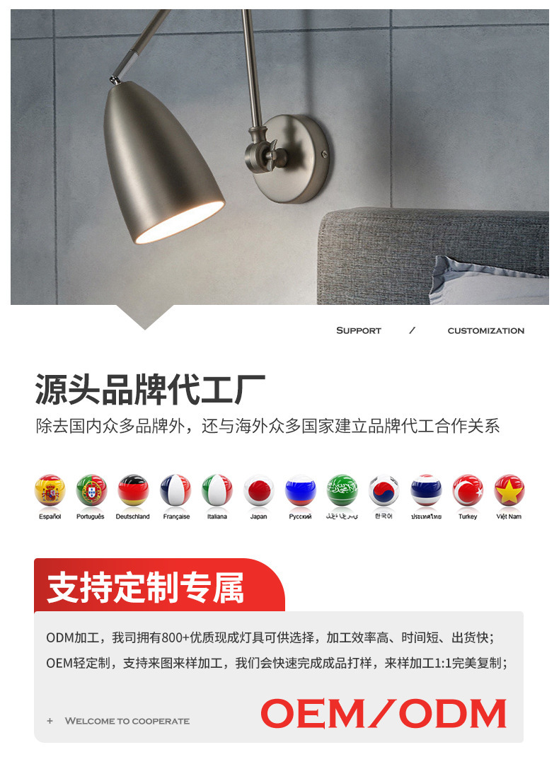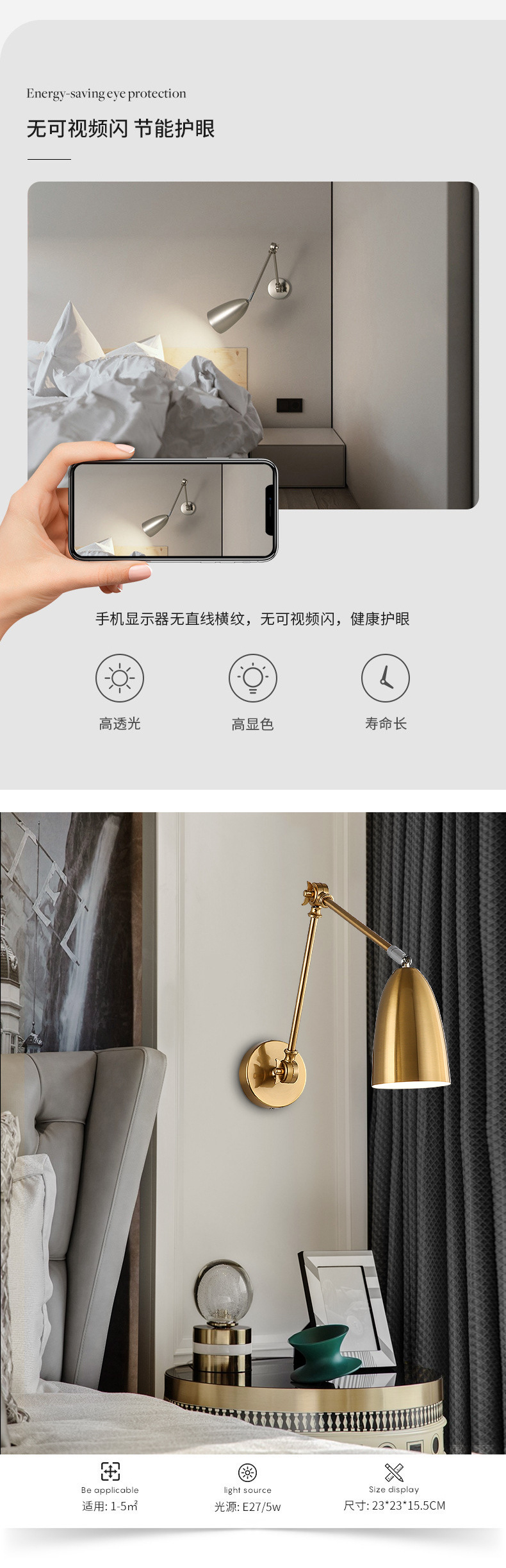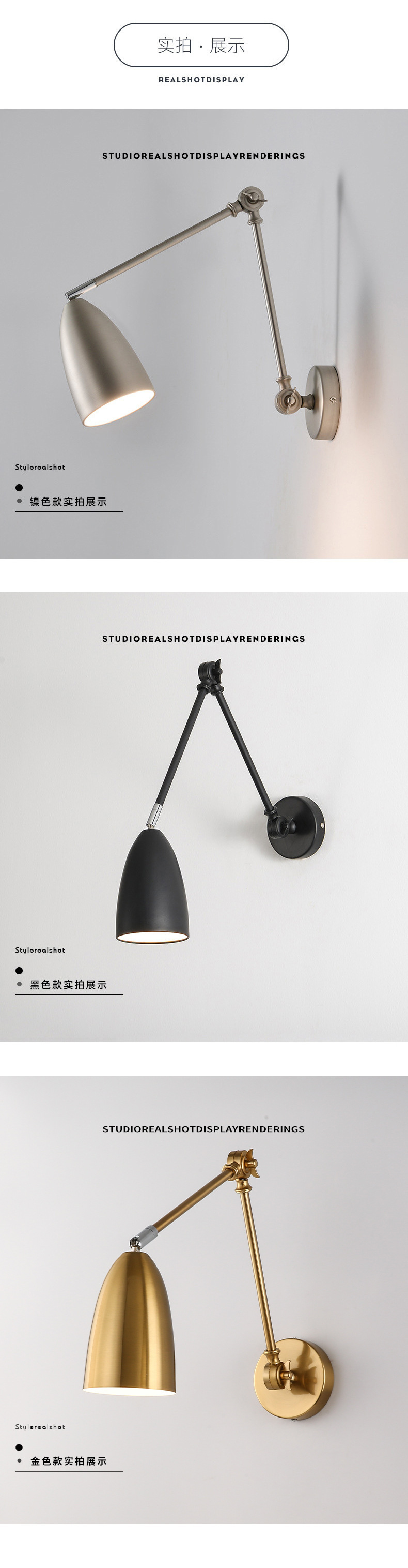 卧室床头灯壁灯北欧现代简约伸缩摇摆带摇臂长杆壁灯书房阅读灯