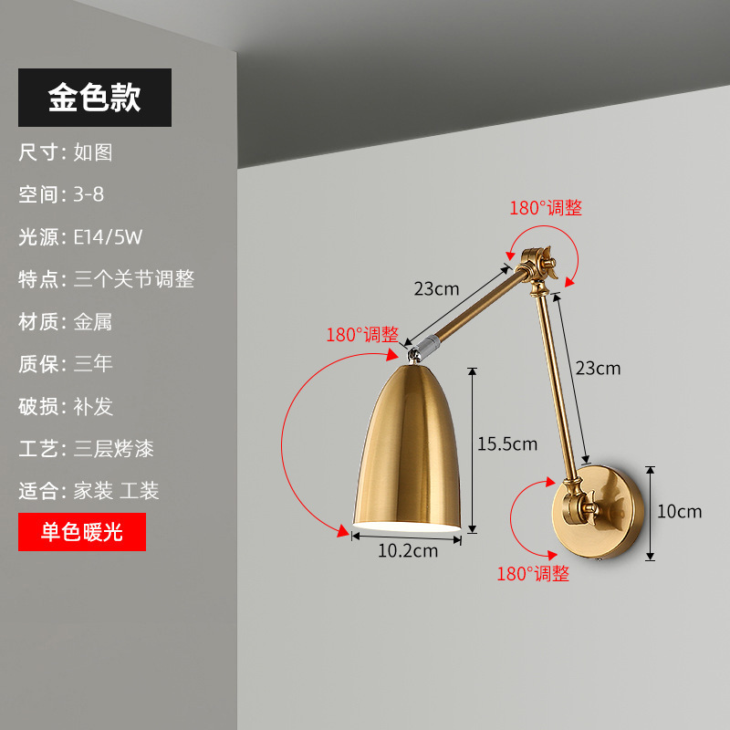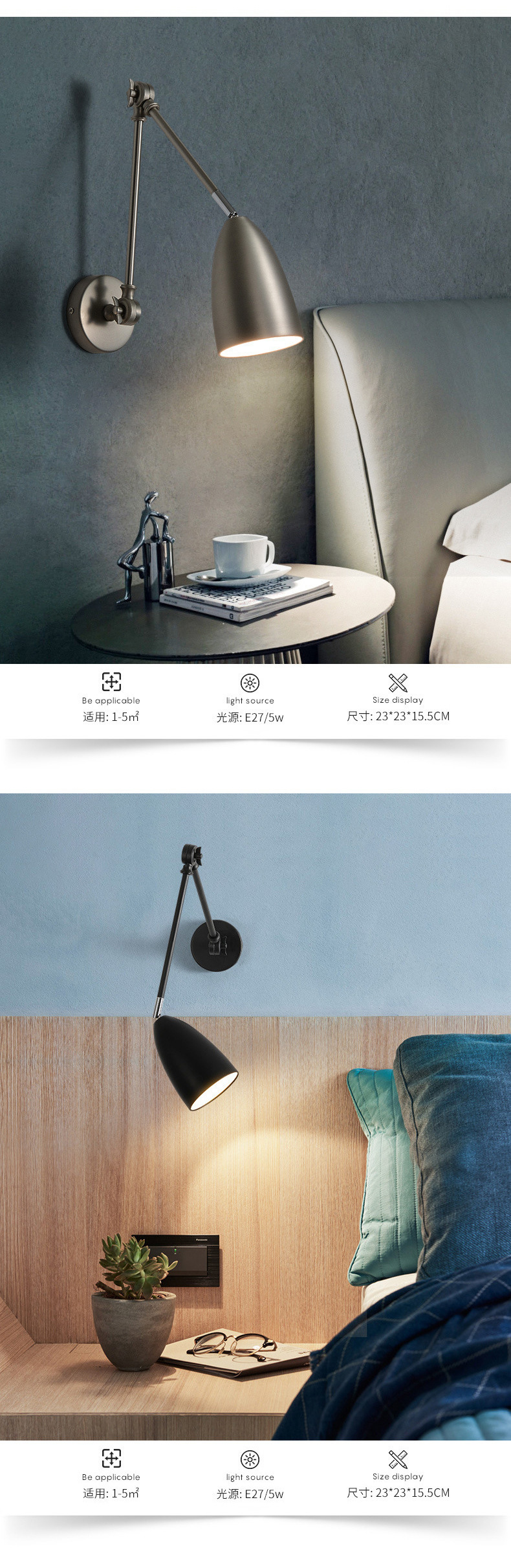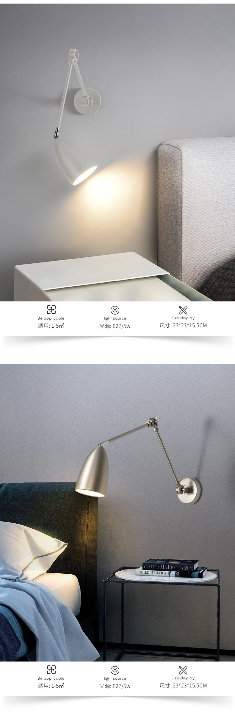 침실 침실 램프 벽 램프 북유럽 현대 간단한 텔레스코픽 스윙 로커 팔 연구 독서 램프와 긴 막대 벽 램프