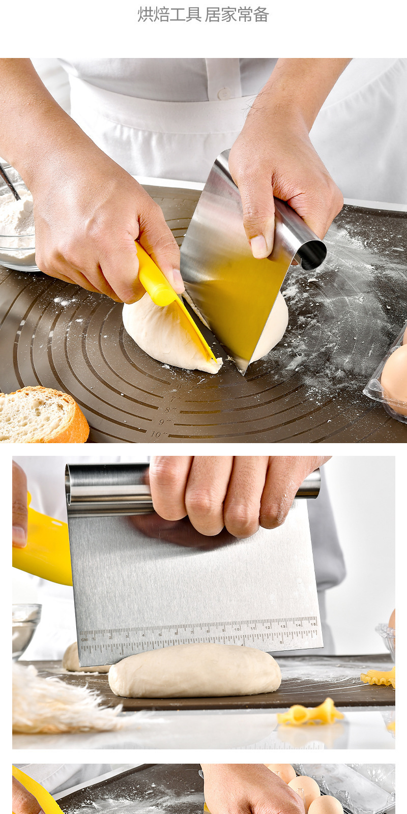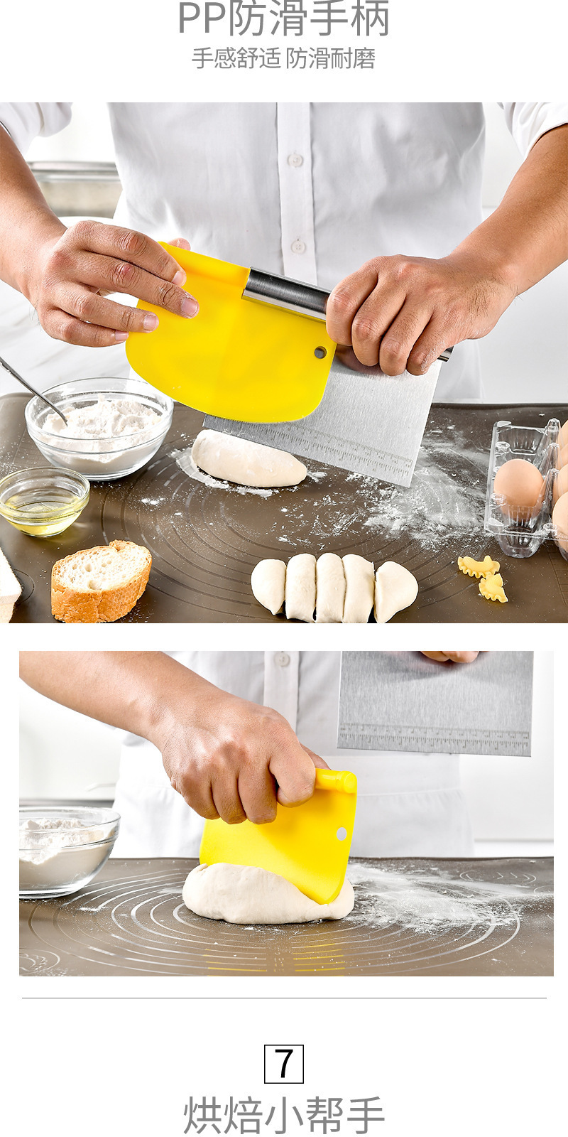 스케일 롤 핸들 플라스틱 스크레이퍼 스테인레스 스틸 2 대 1 국수 커터 반죽 절단 칼 2 피스 베이킹 도구스토어 가기