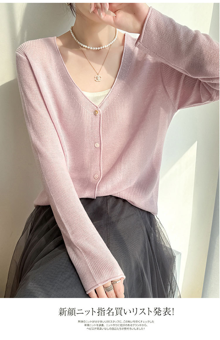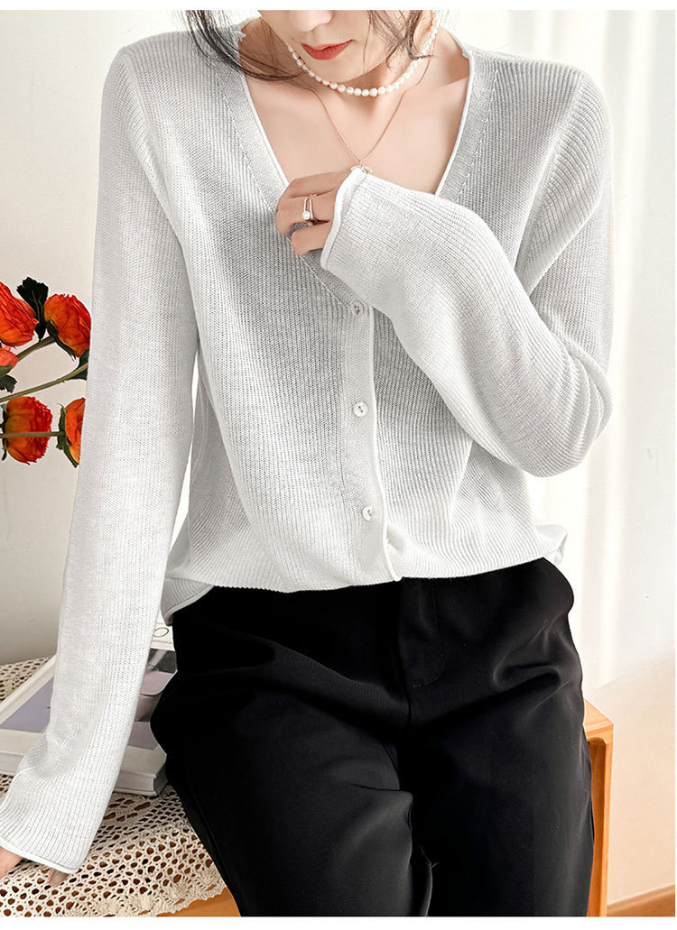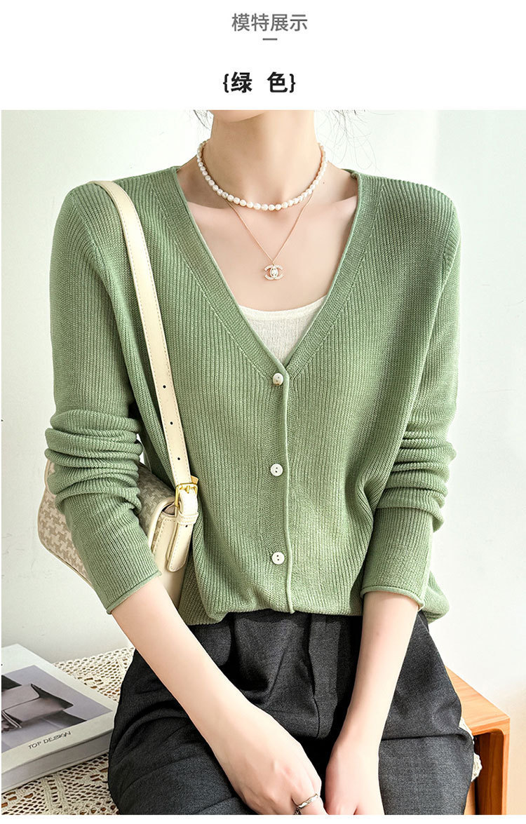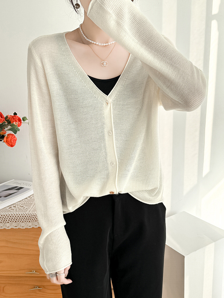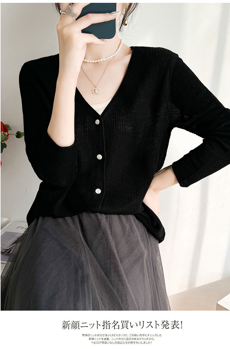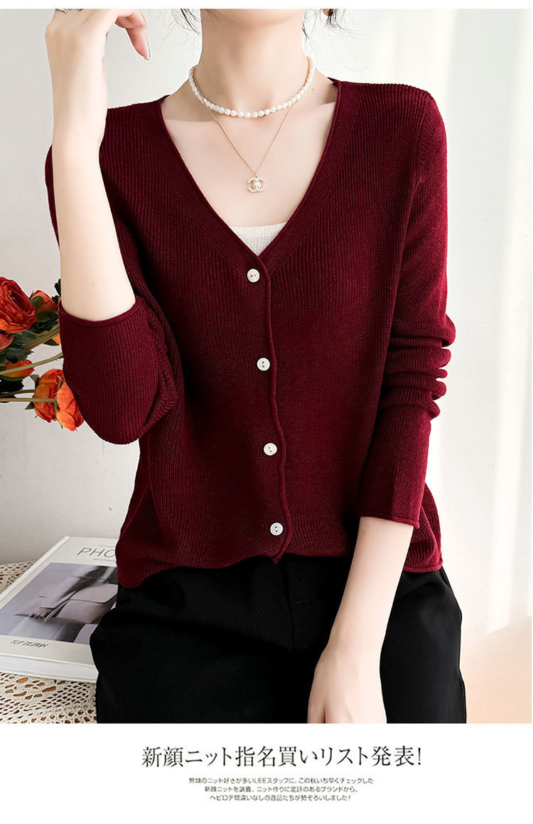 V-Neck 아이스 실크 니트 카디건 여성용 봄과 여름 얇은 롤업 긴팔 선스크린 셔츠 빈 코트 탑 에어컨 셔츠