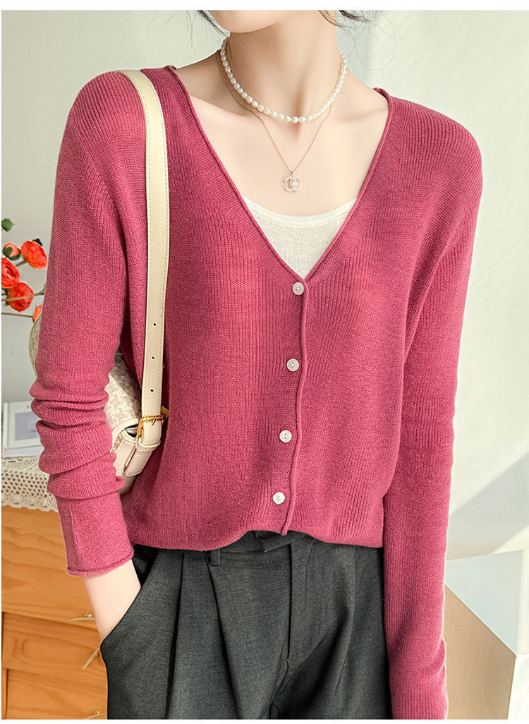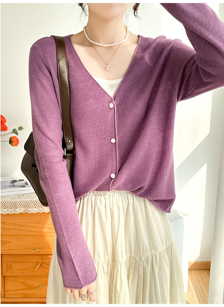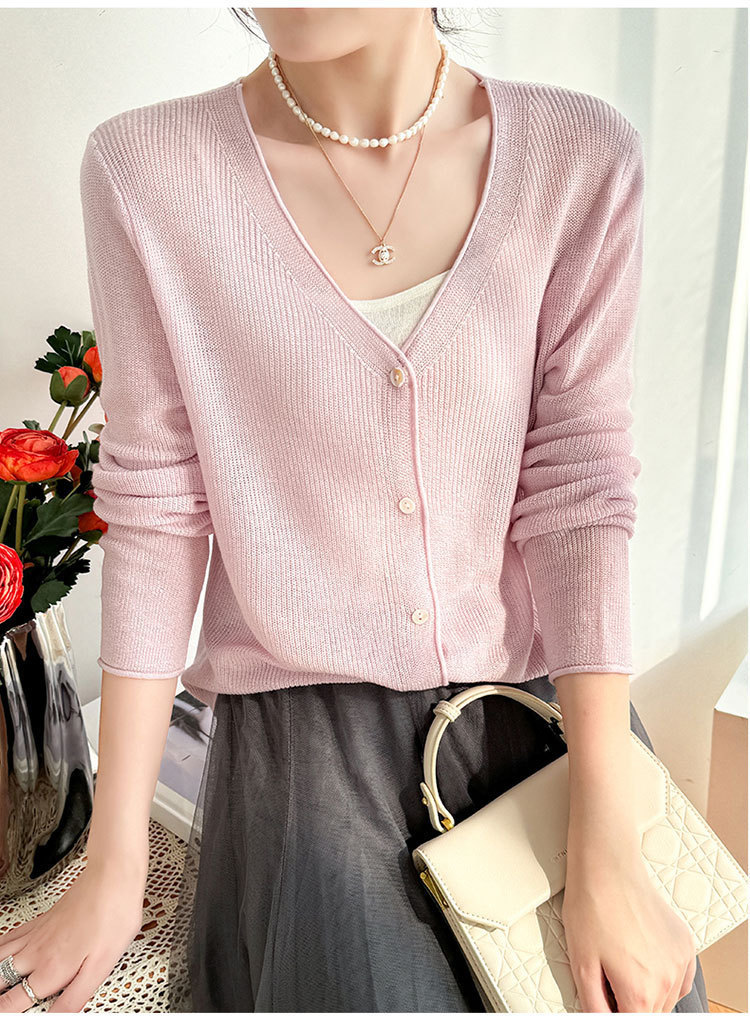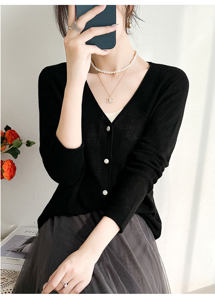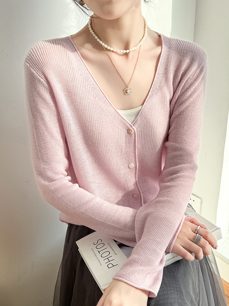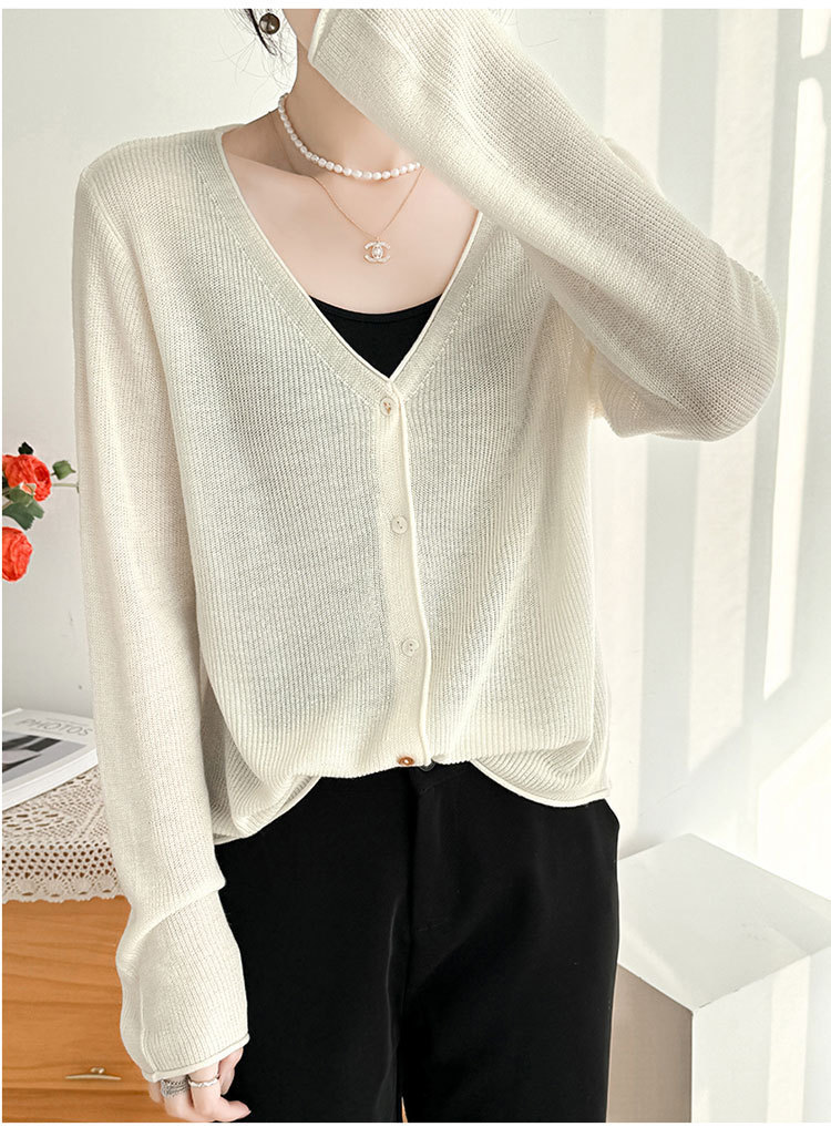 V-Neck 아이스 실크 니트 카디건 여성용 봄과 여름 얇은 롤업 긴팔 선스크린 셔츠 빈 코트 탑 에어컨 셔츠