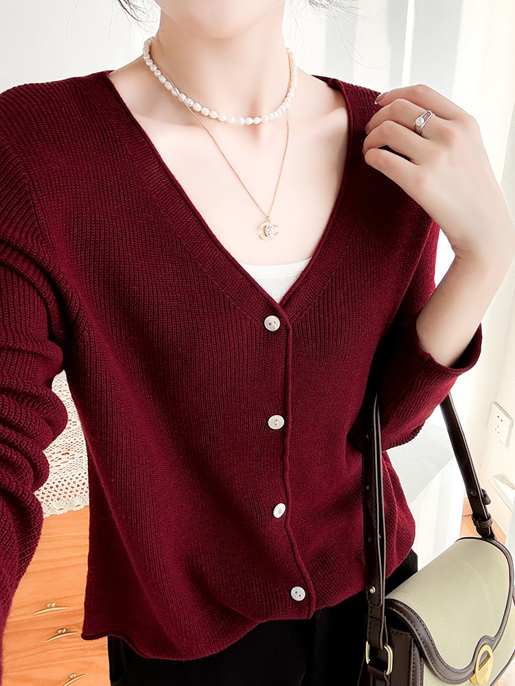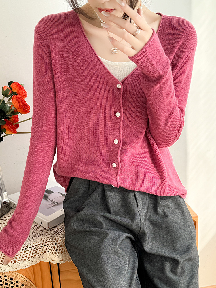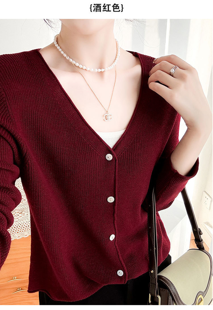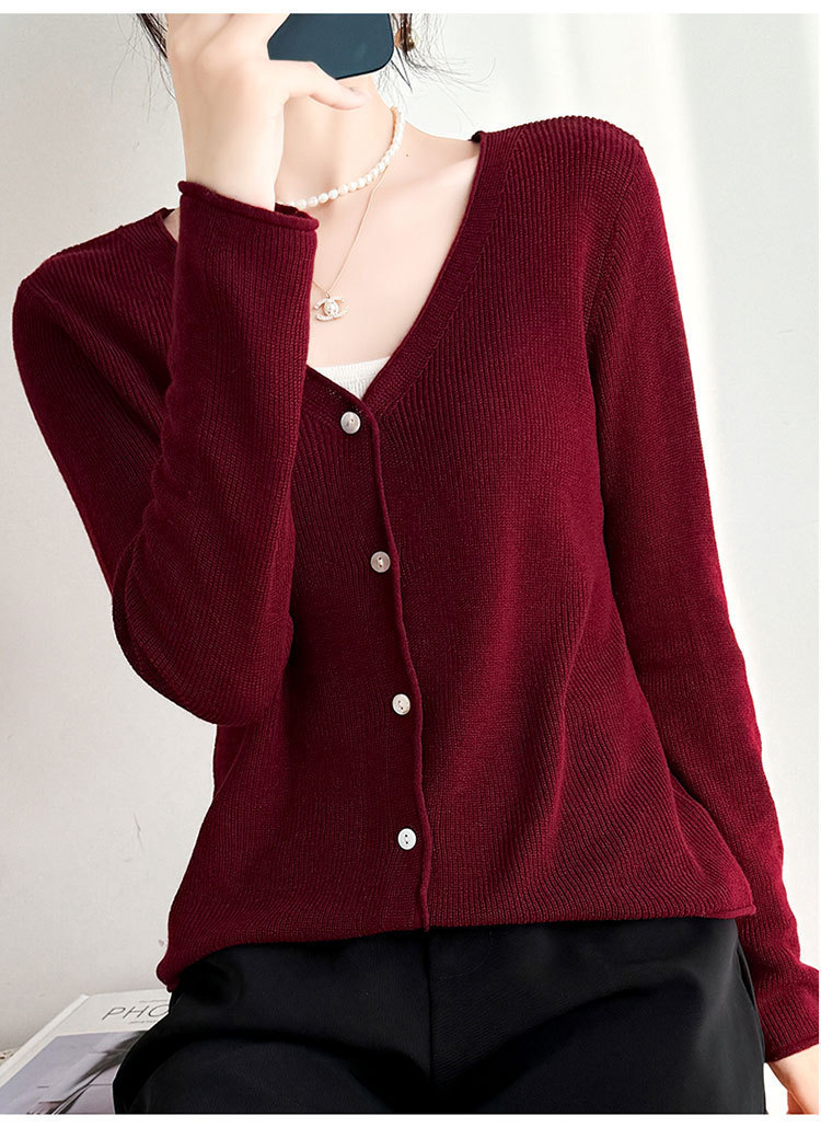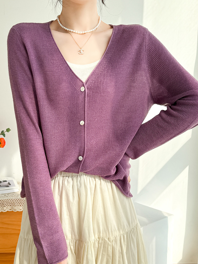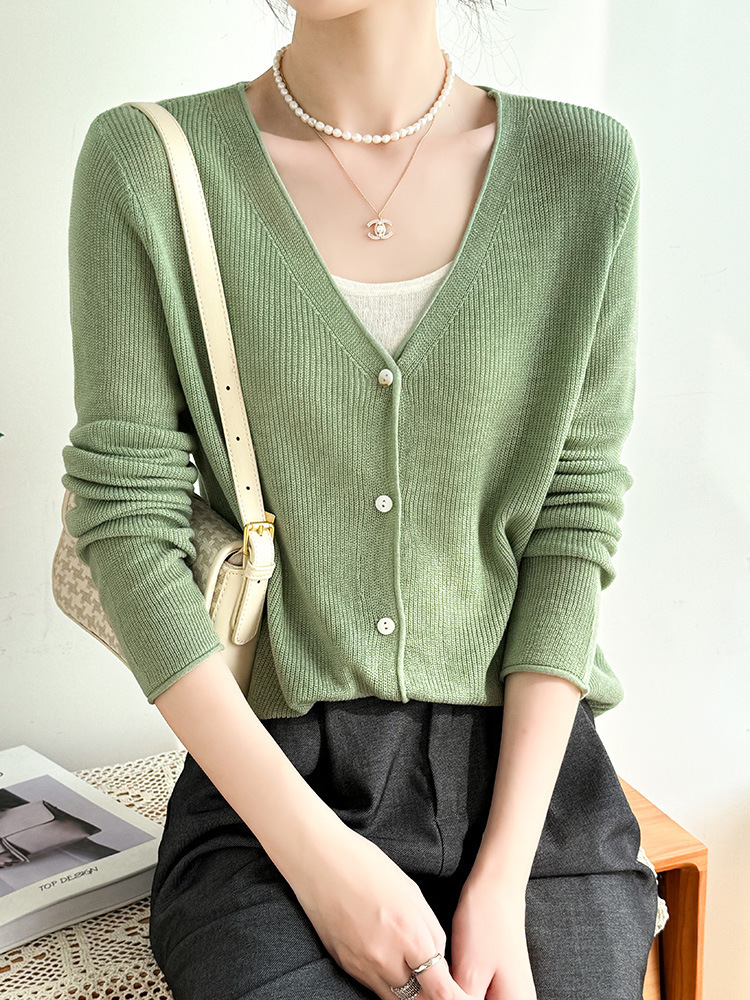 V-Neck 아이스 실크 니트 카디건 여성용 봄과 여름 얇은 롤업 긴팔 선스크린 셔츠 빈 코트 탑 에어컨 셔츠