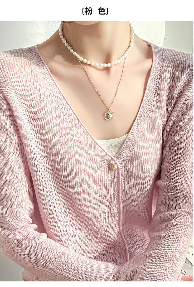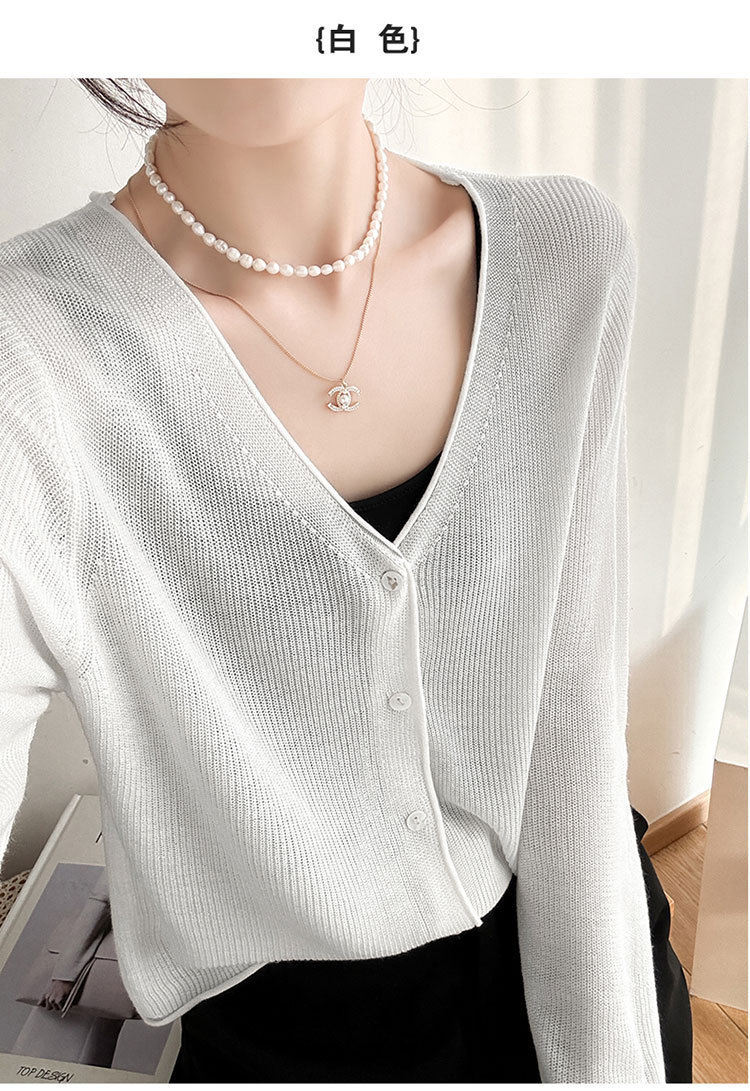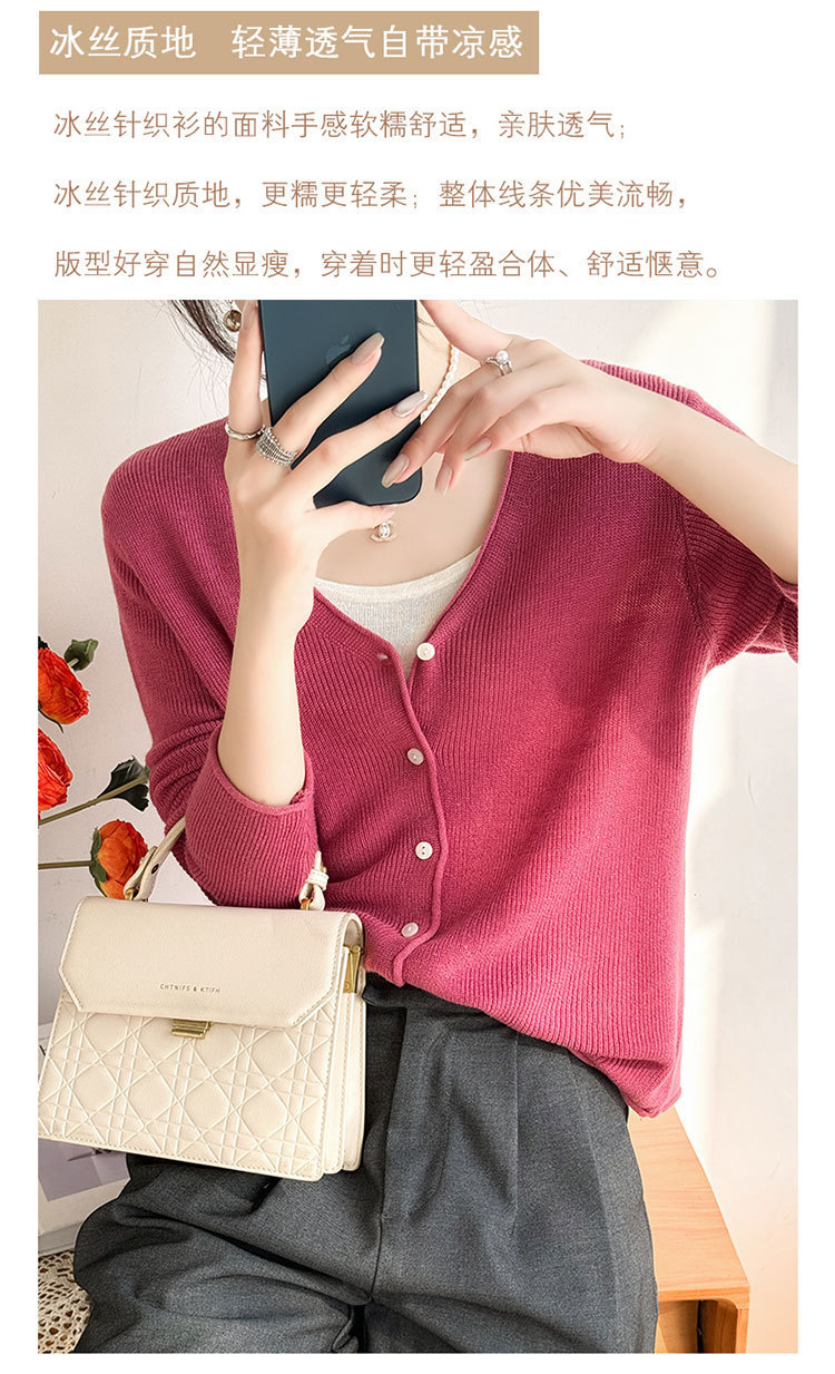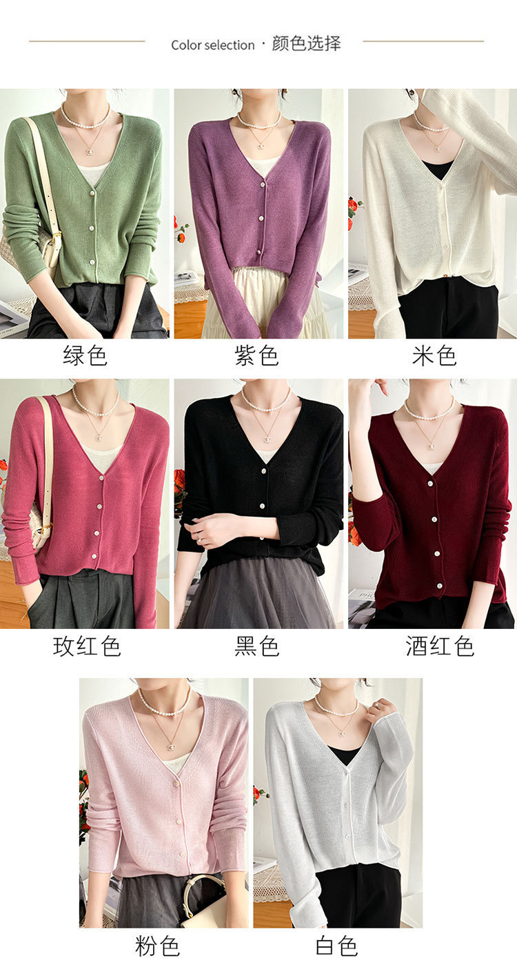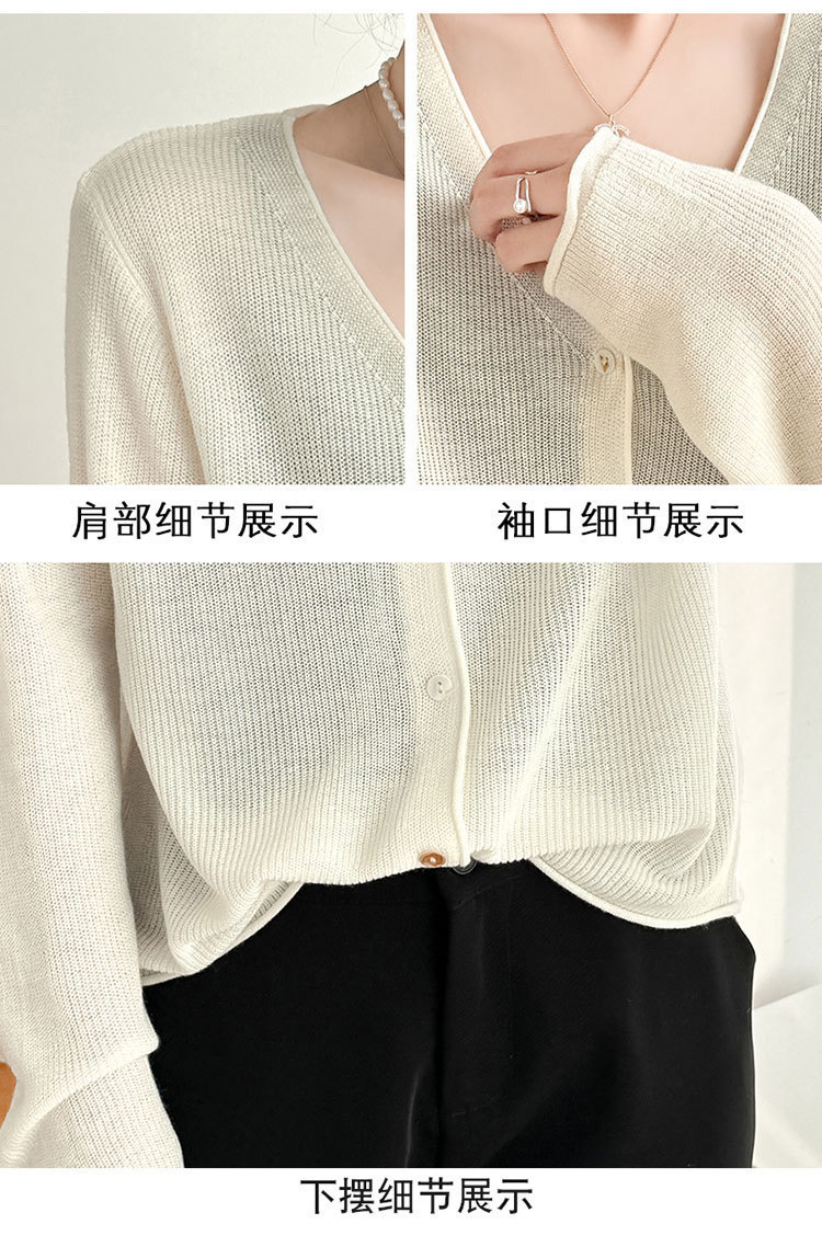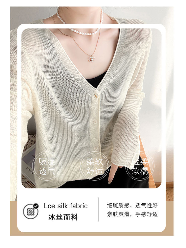 V-Neck 아이스 실크 니트 카디건 여성용 봄과 여름 얇은 롤업 긴팔 선스크린 셔츠 빈 코트 탑 에어컨 셔츠스토어 가기