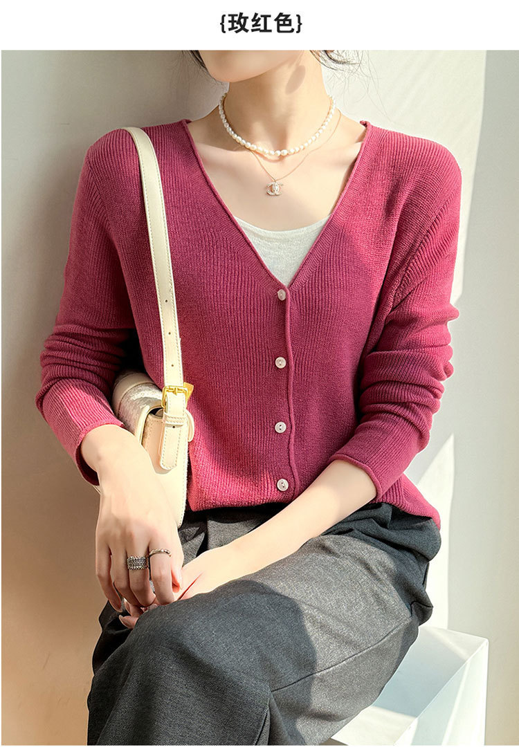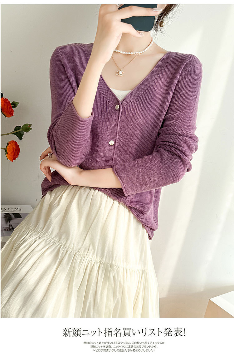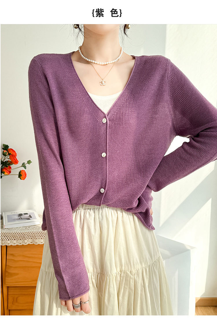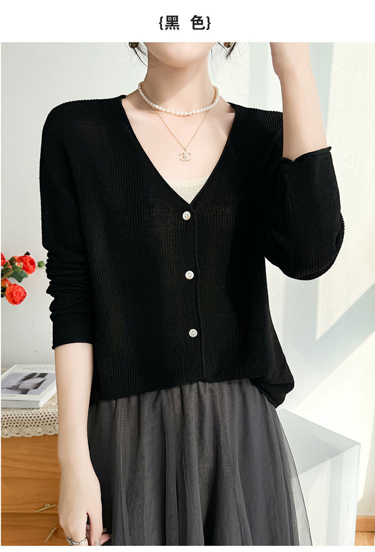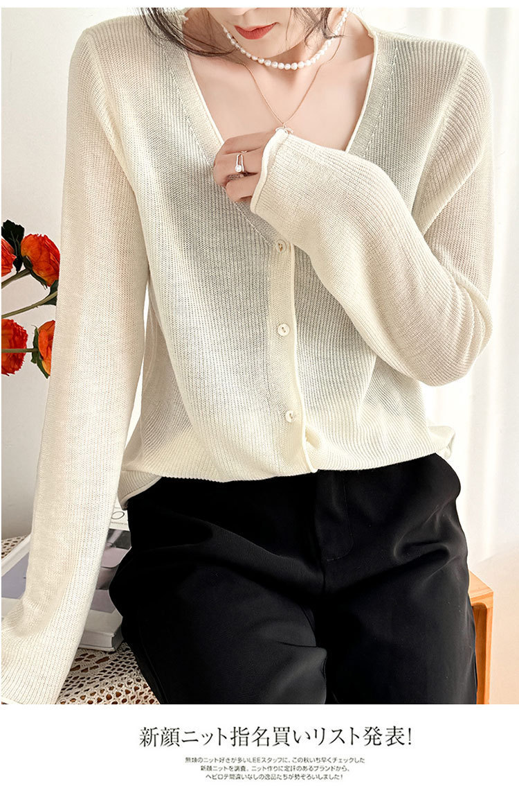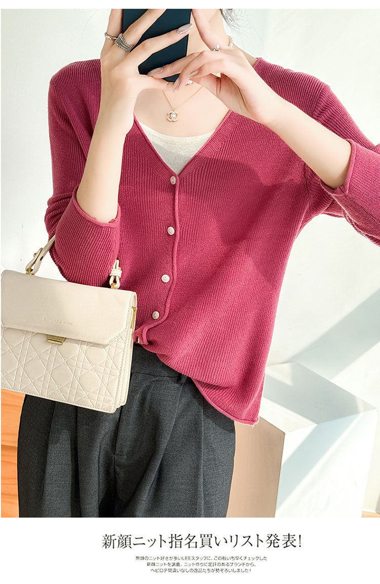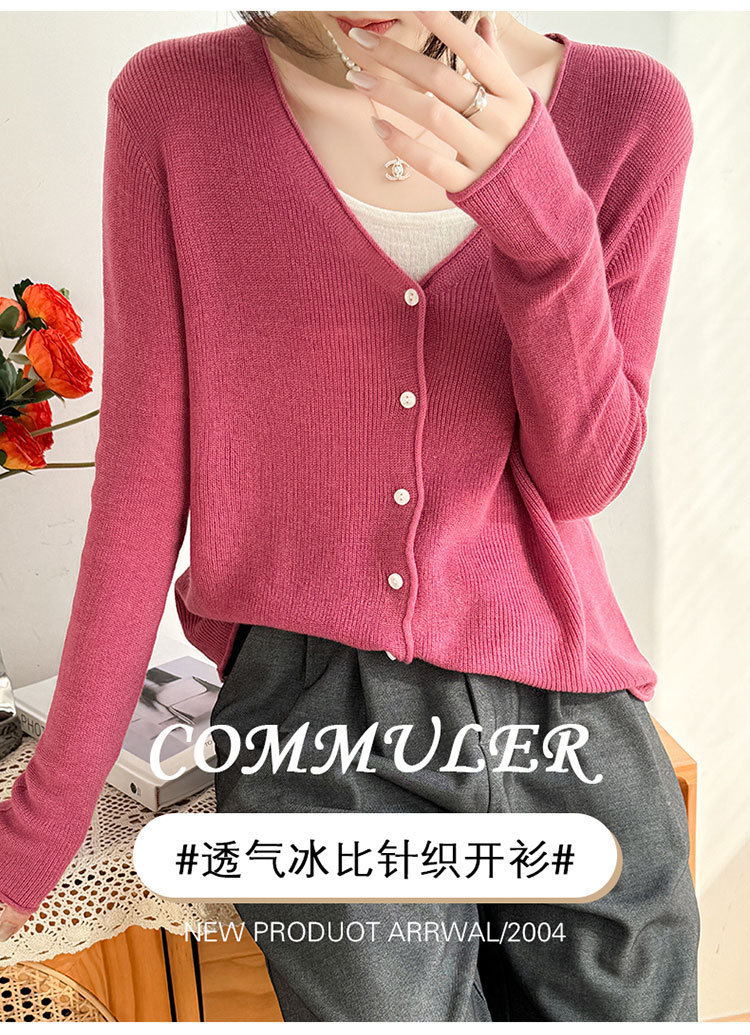 V-Neck 아이스 실크 니트 카디건 여성용 봄과 여름 얇은 롤업 긴팔 선스크린 셔츠 빈 코트 탑 에어컨 셔츠스토어 가기