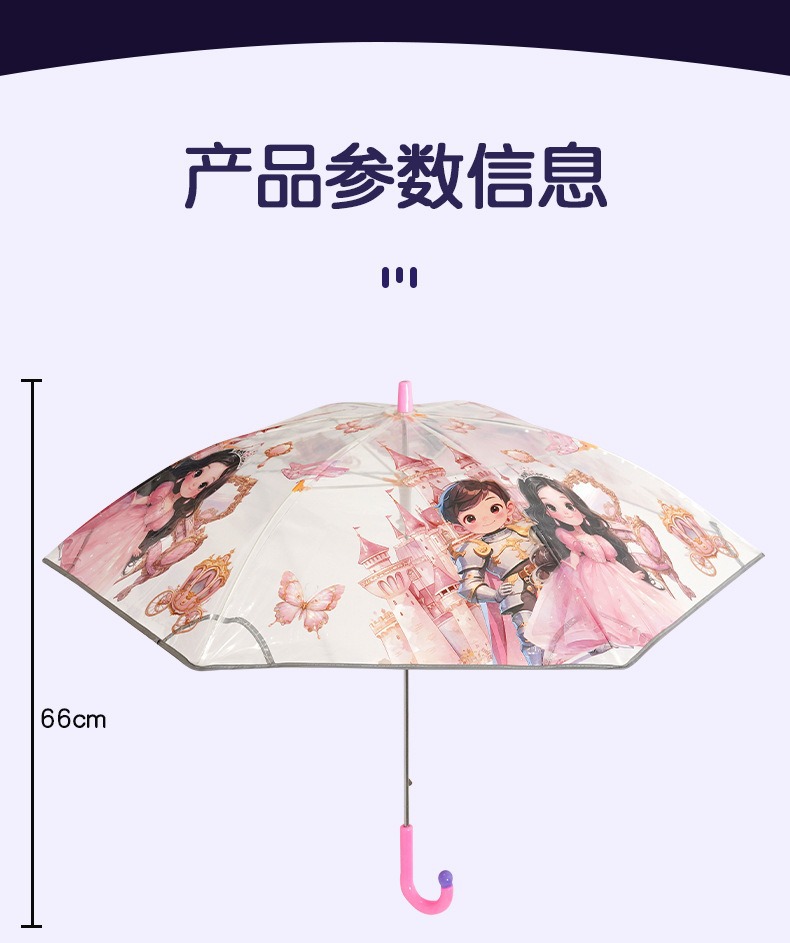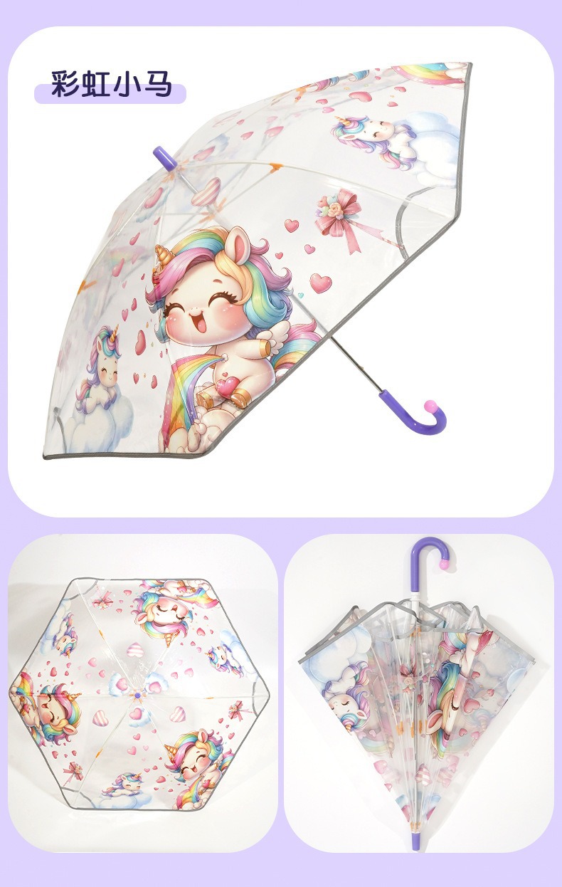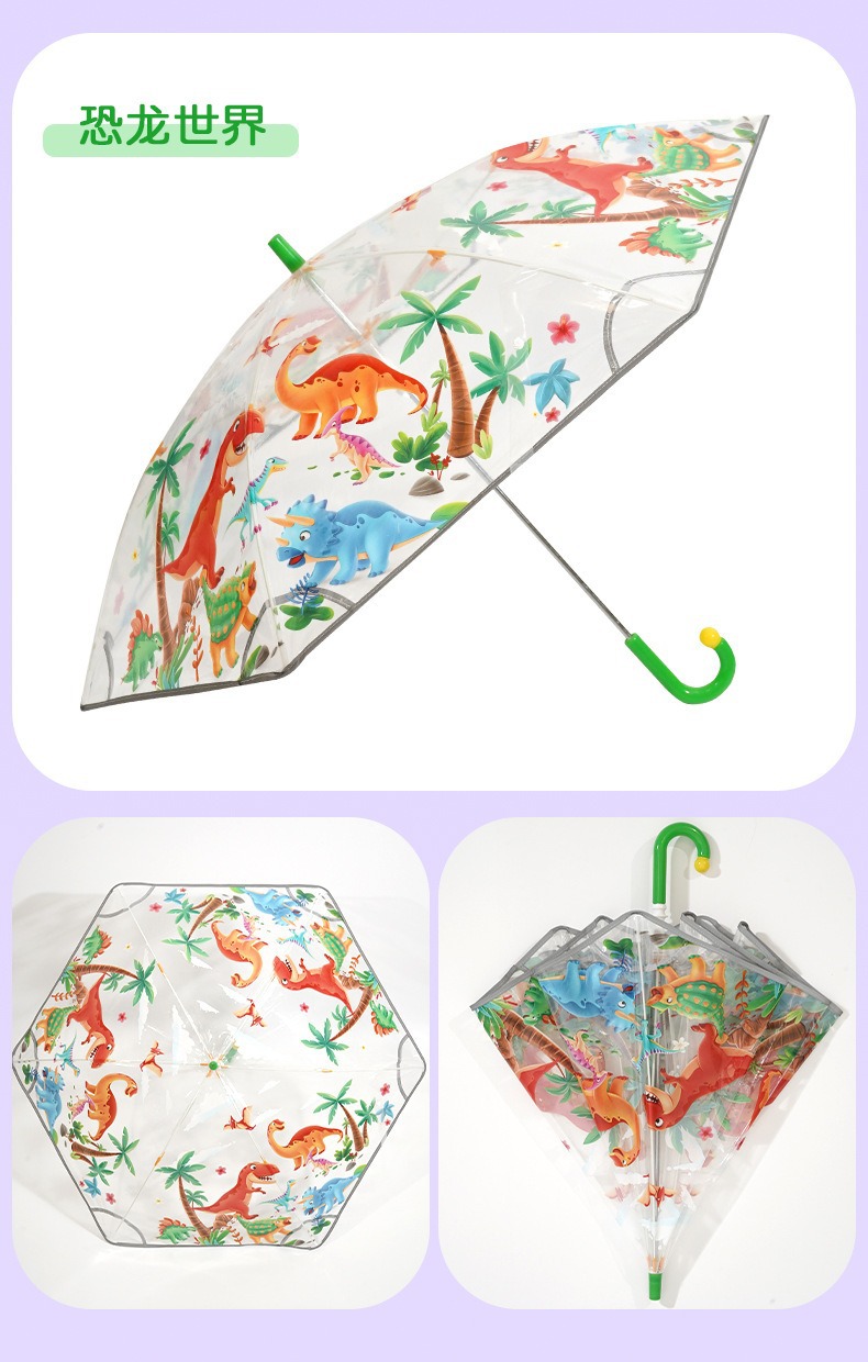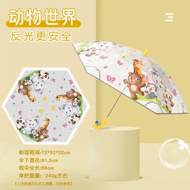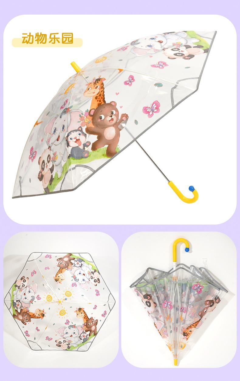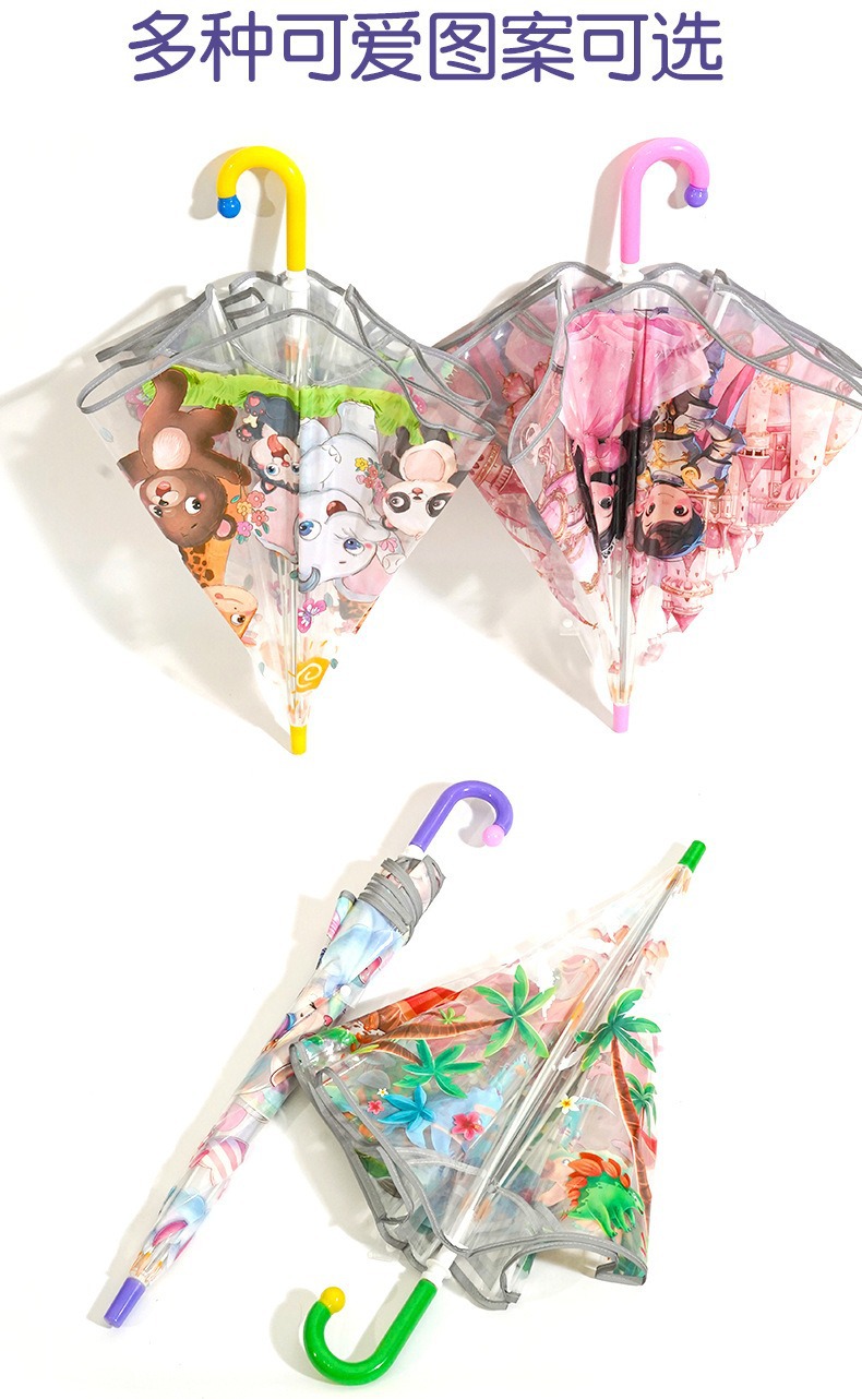 안전 만화 손을 열고 투명한 우산 초등학생 긴 손잡이 우산 우산 안전 어린이 우산 곡선 긴 손잡이 우산 도매스토어 가기