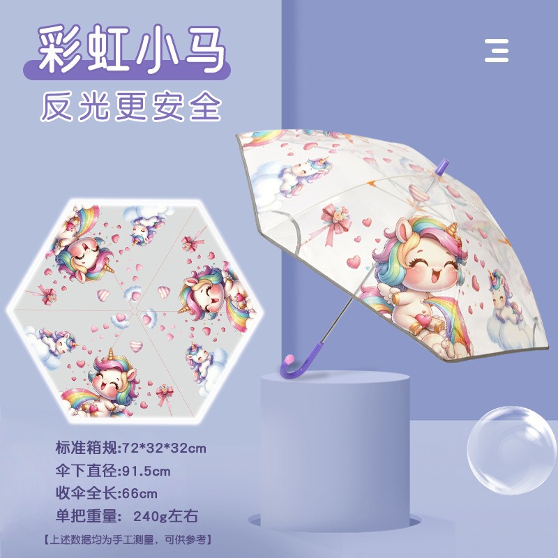안전 만화 손을 열고 투명한 우산 초등학생 긴 손잡이 우산 우산 안전 어린이 우산 곡선 긴 손잡이 우산 도매