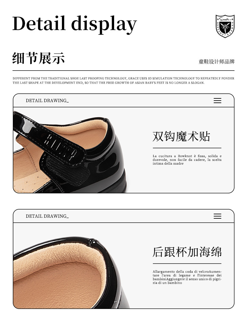Snoffy Snafi 어린이 가죽 신발 학생 공연 작은 검은 신발 2025 봄과 가을 새 캠퍼스 소프트 단독 원피스 신발스토어 가기