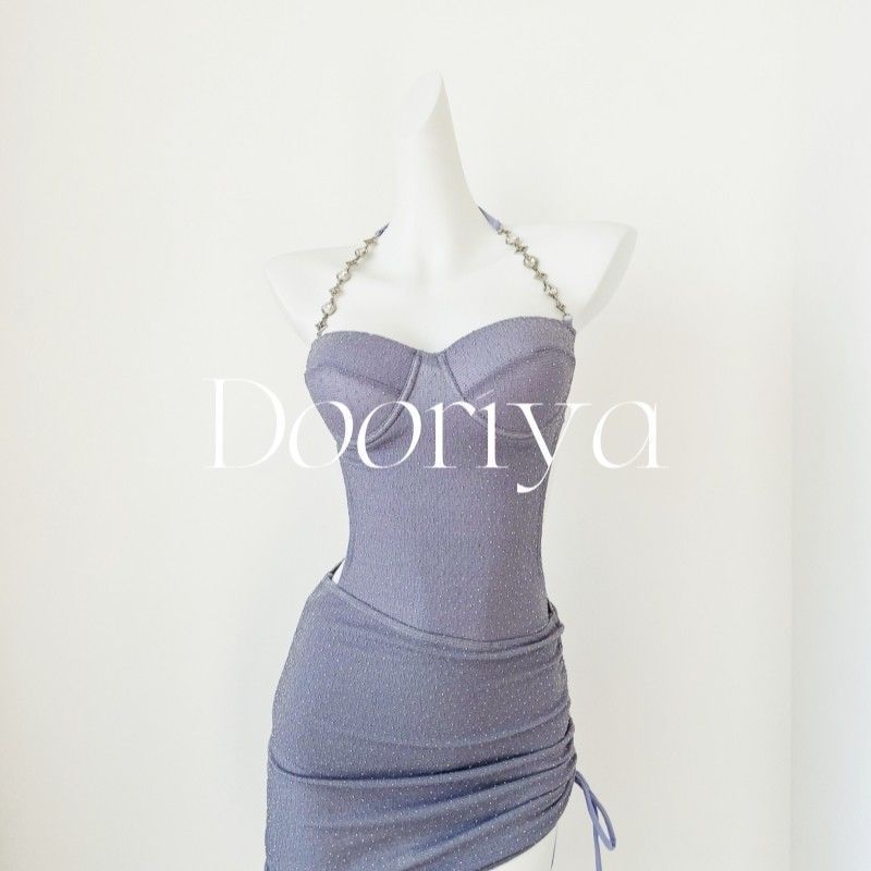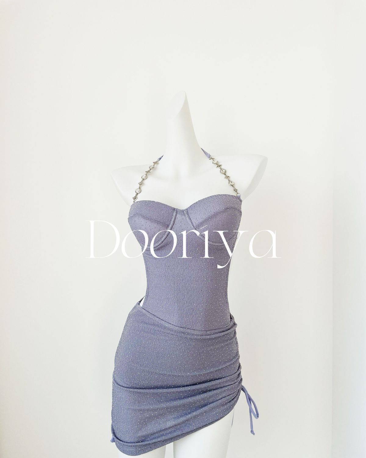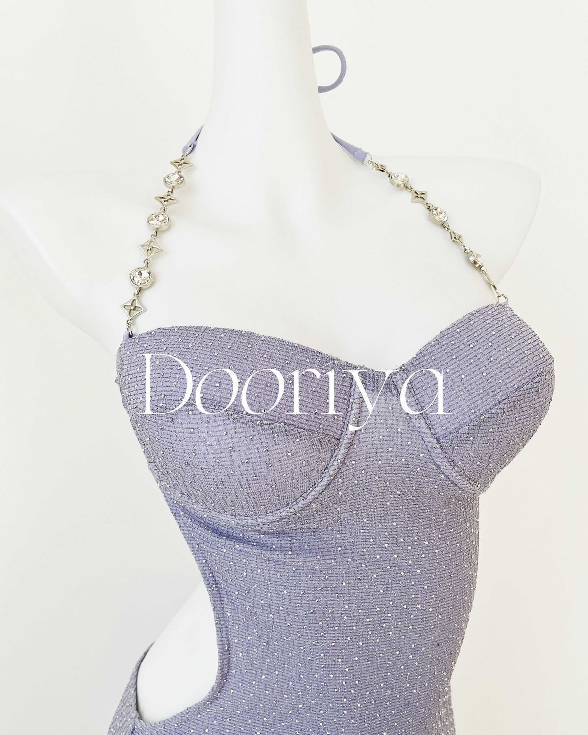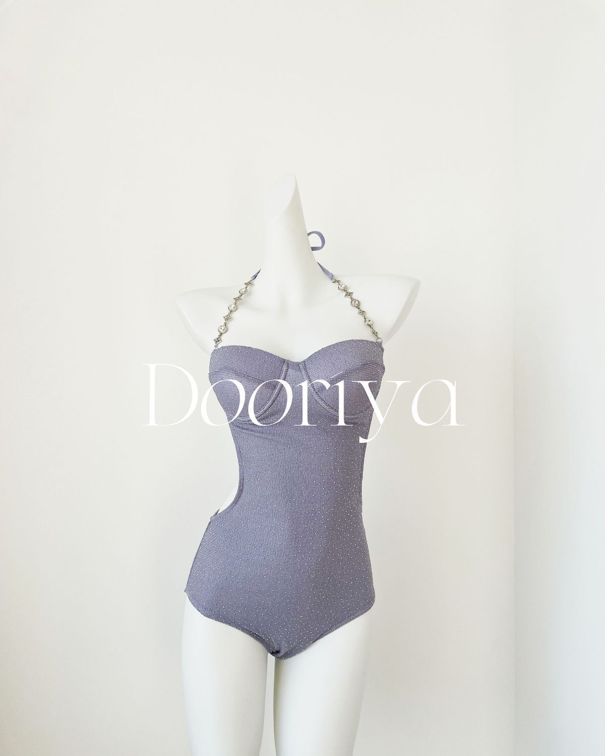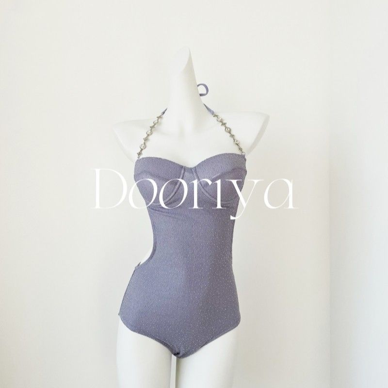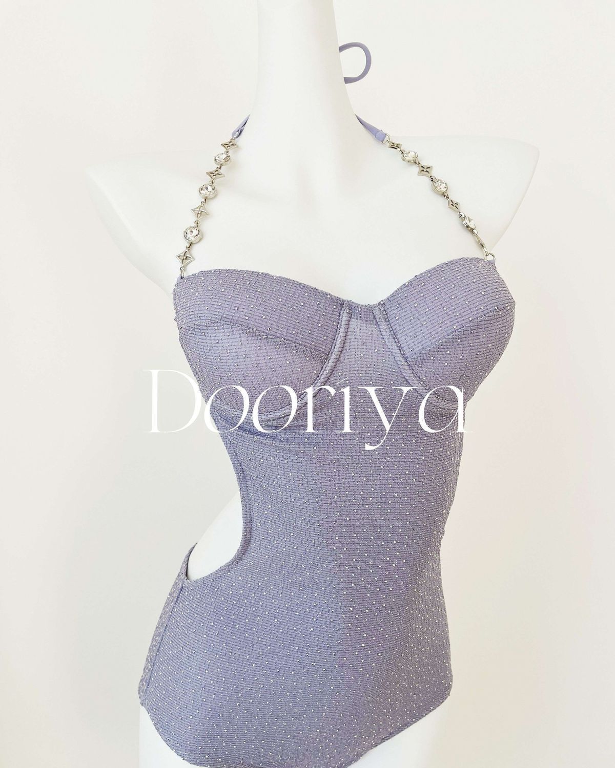 2025 새로운 고급 고급 플래시 라인 스톤 퍼플 작은 가슴 스틸 Bracer 푸시 업 백리스 수영복 여성용 온천스토어 가기