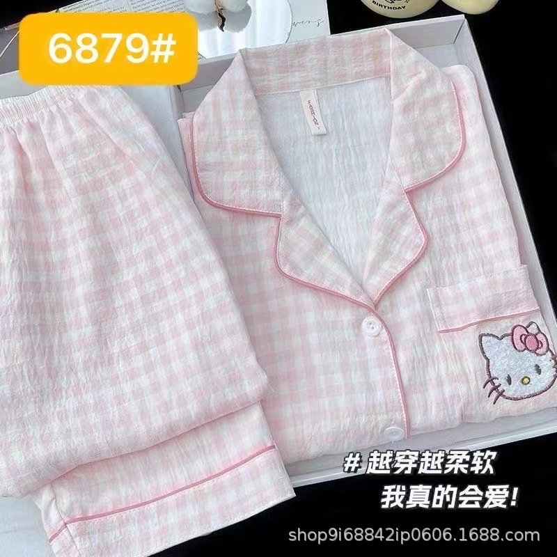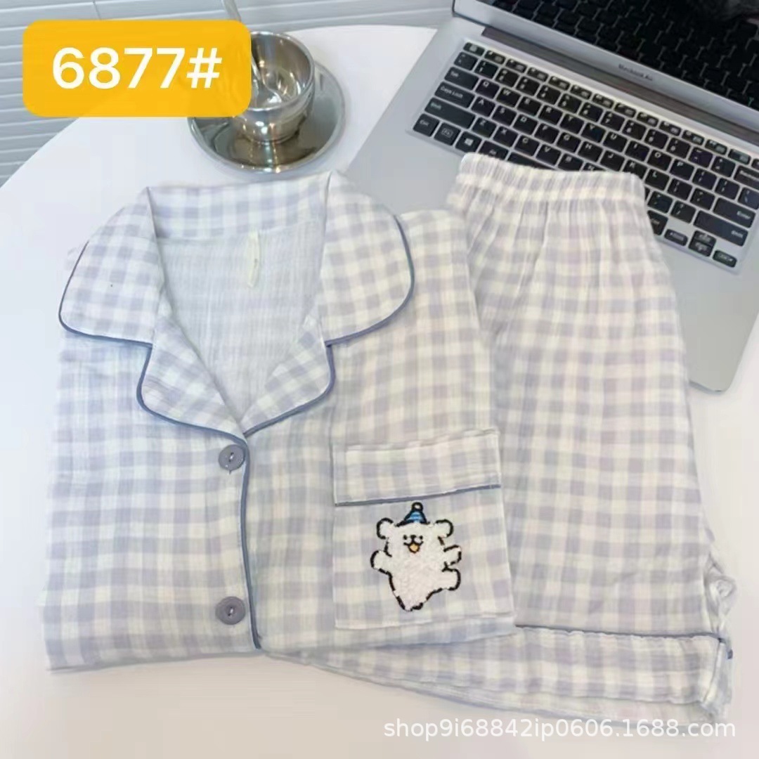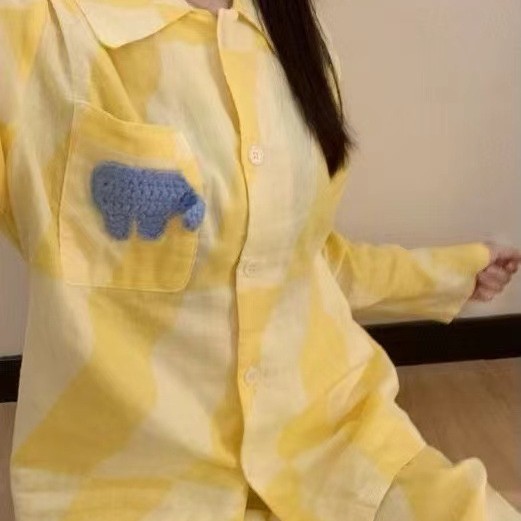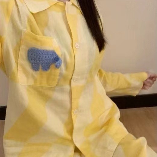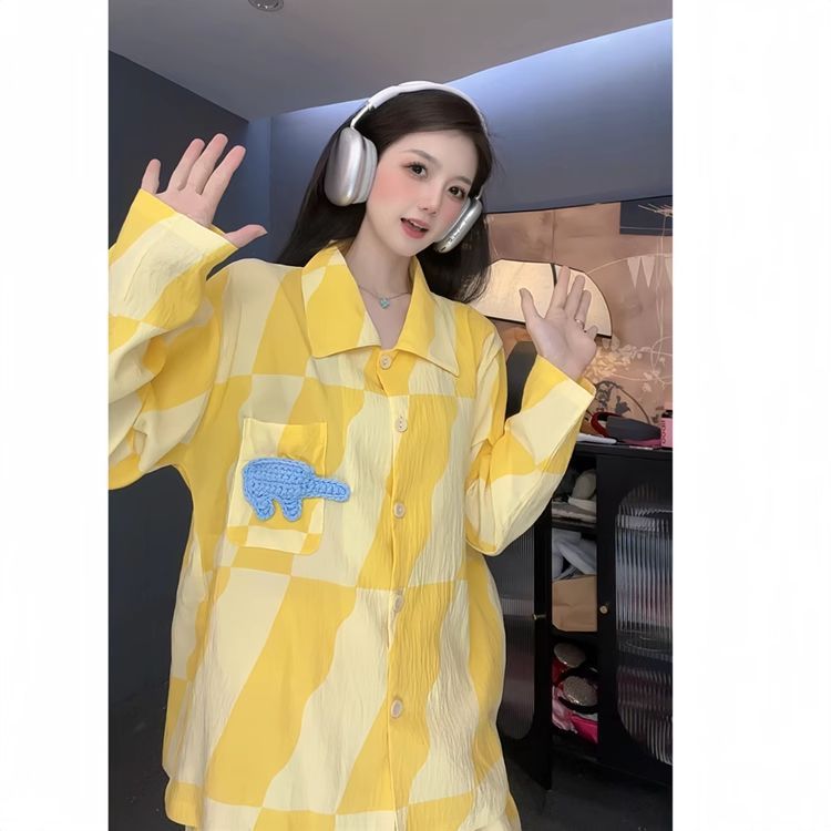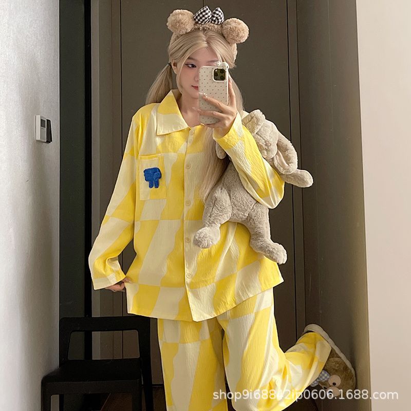 2025년 신상 여성용 클라우드 코튼 잠옷, 봄/가을 체크무늬 루즈핏 얇은 긴팔 홈웨어 세트, 레이지 스타일스토어 가기