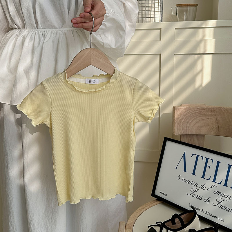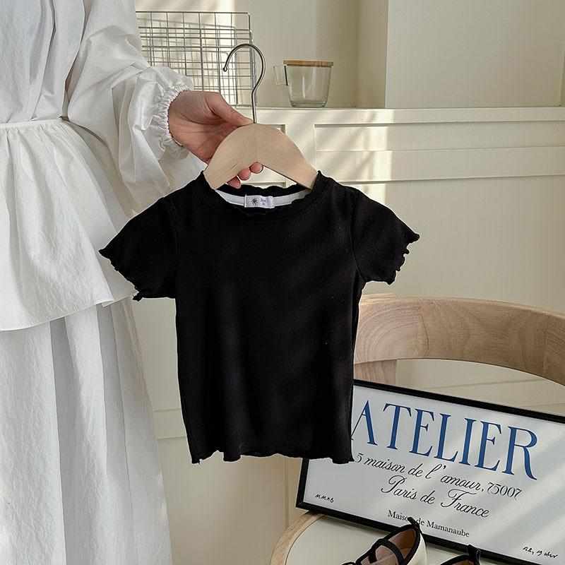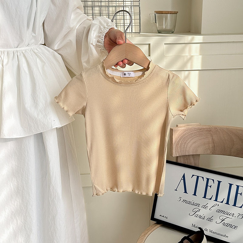 어린이 반소매 티셔츠 여름 여자 아이스 실크 모달 통기성 올 매치 아기의 어퍼 옷 반소매 단색 도매스토어 가기