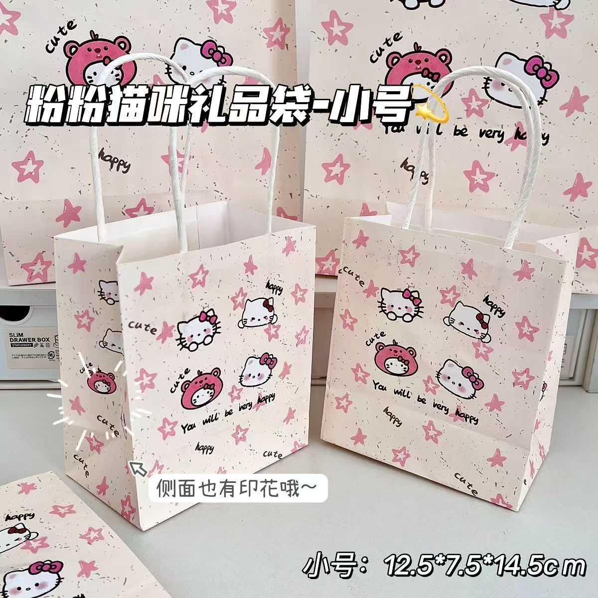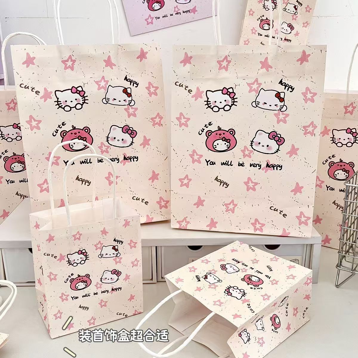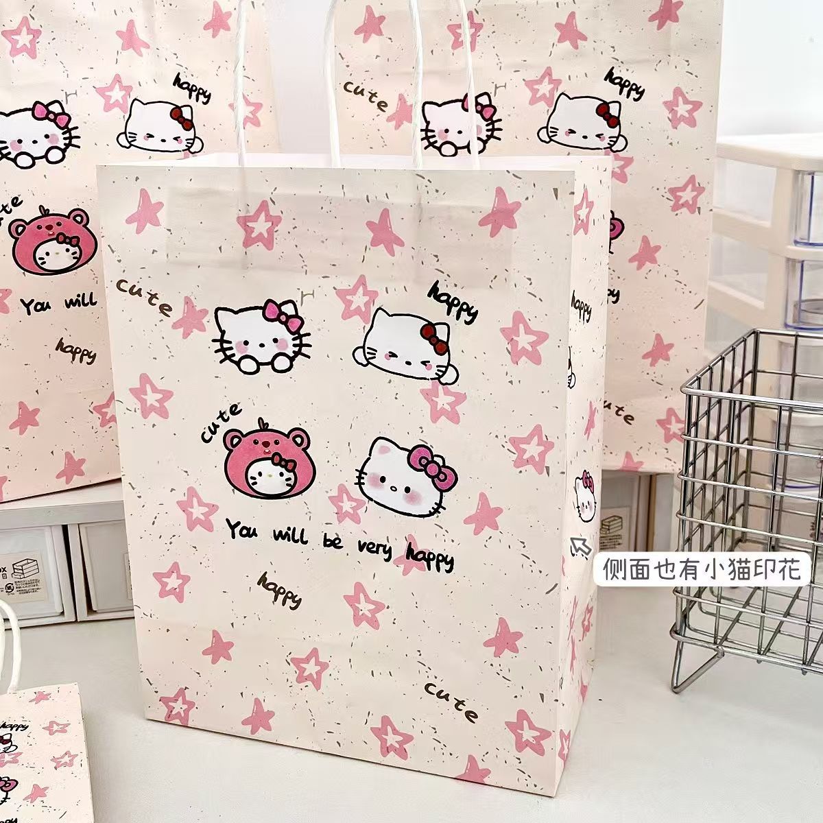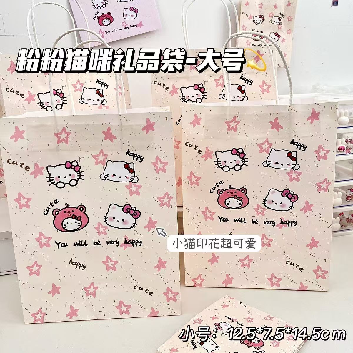 새로운 스타 KT 고양이 선물 가방 Ins 높은 색상 값 절묘한 저장 가방 만화 선물 포장 가방 Sanrio스토어 가기