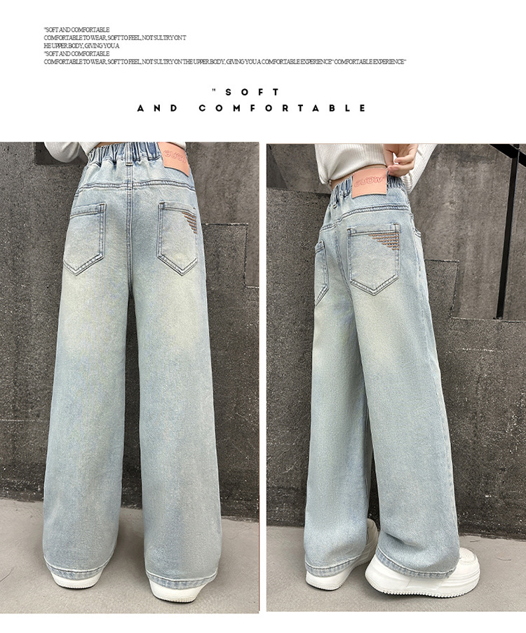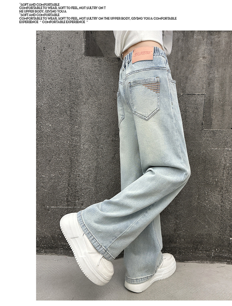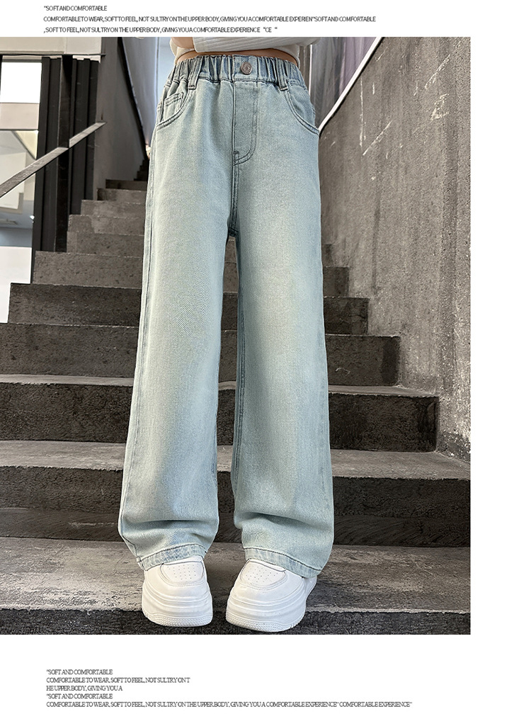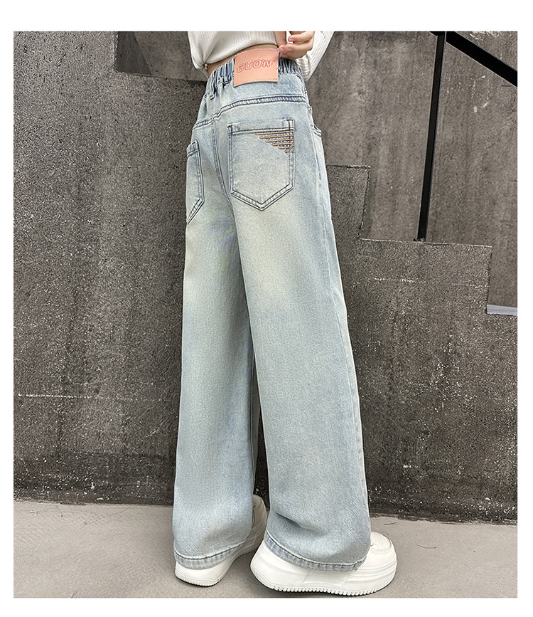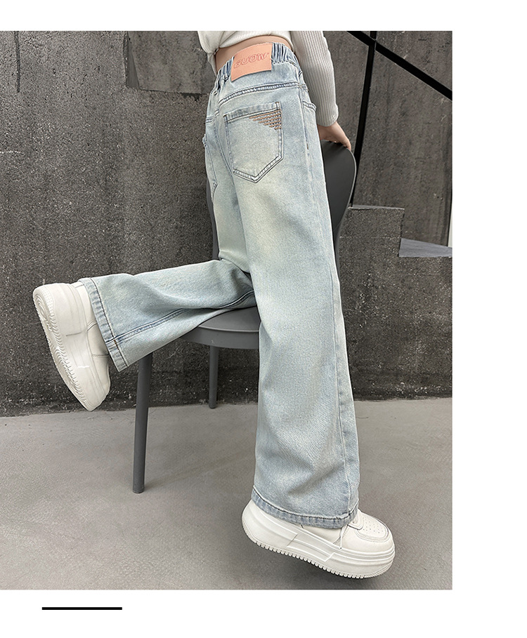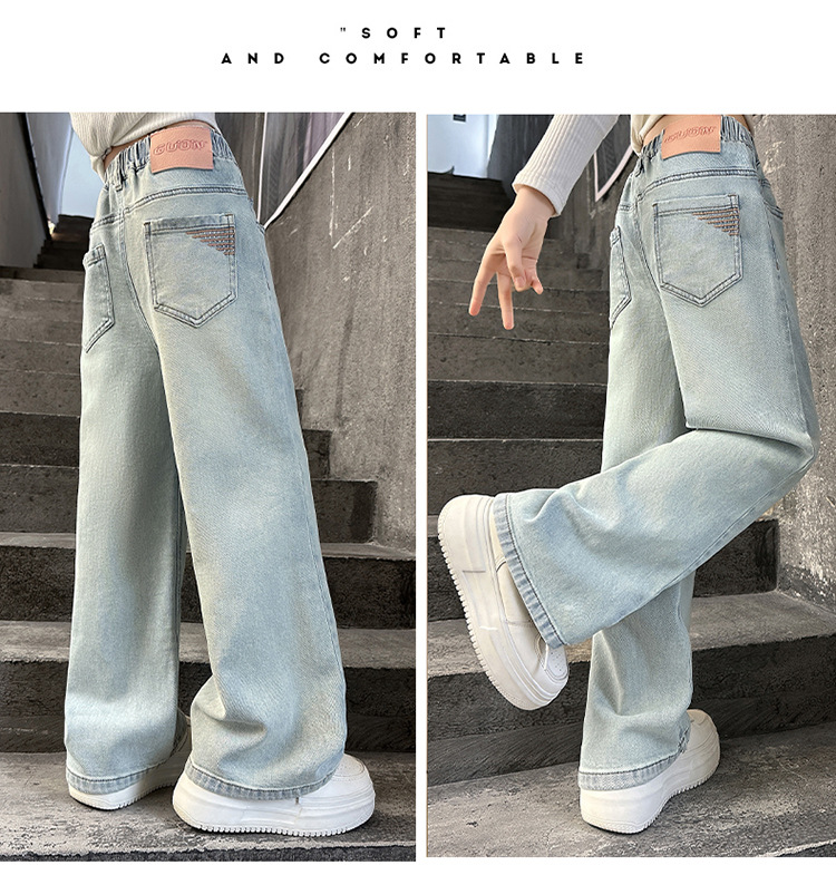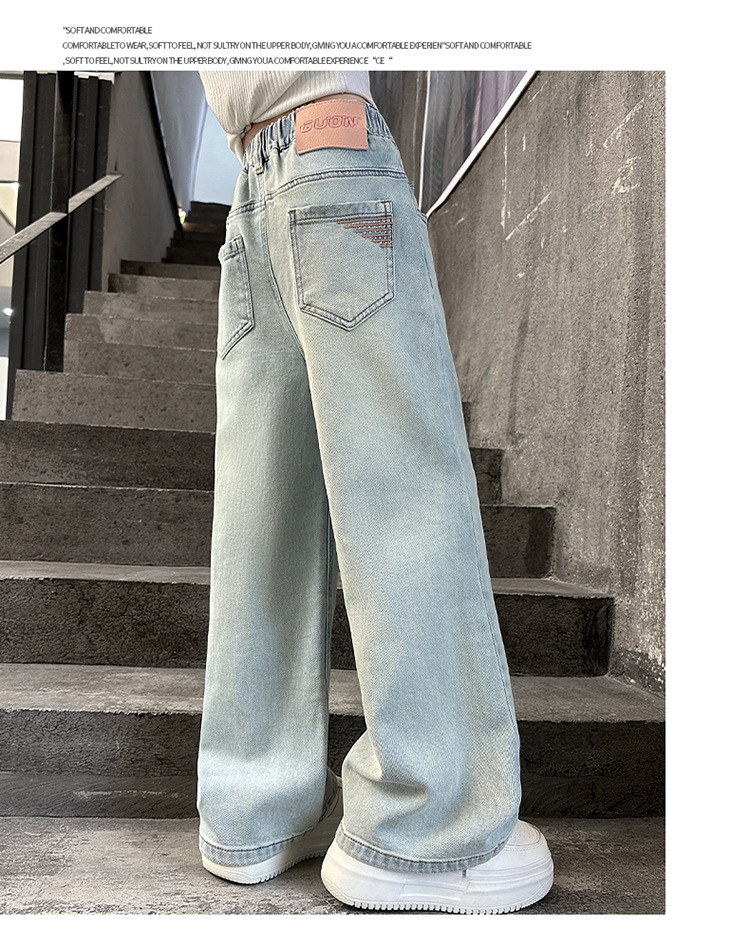 소녀 바지 봄과 가을 2025 새로운 서양식 어린이 청바지 넓은 다리 바지 큰 어린이 새 봄 착용스토어 가기