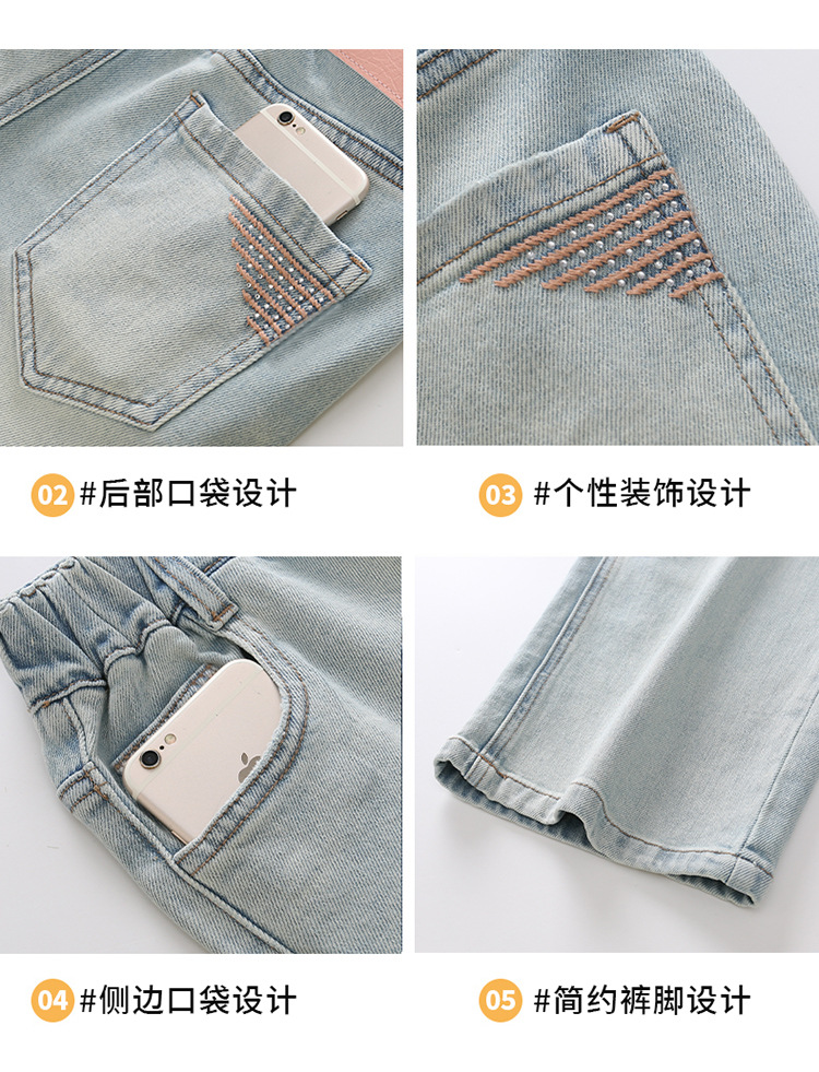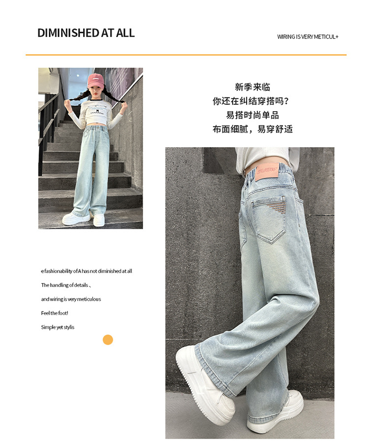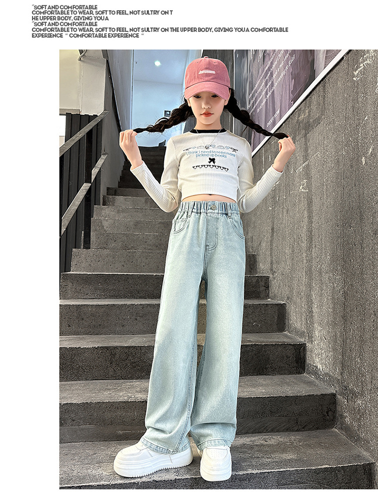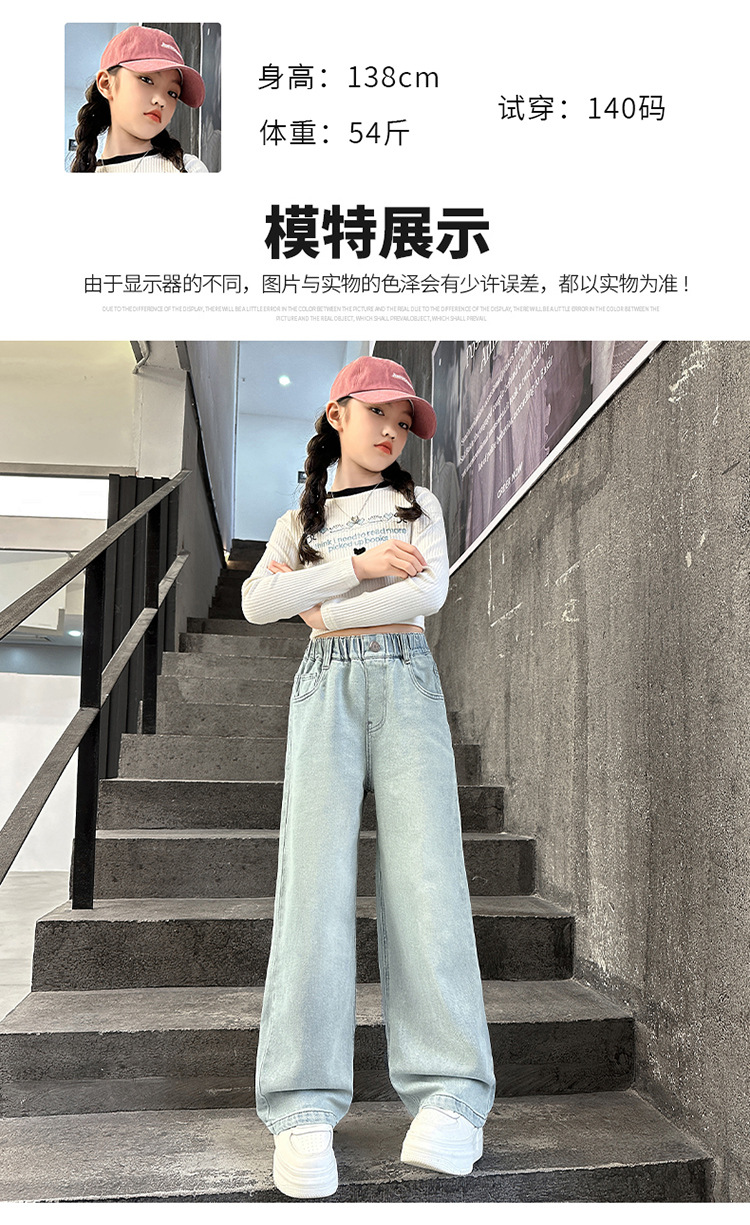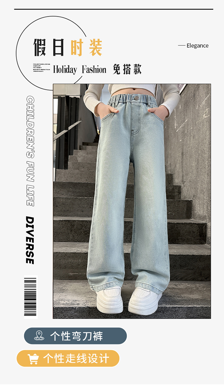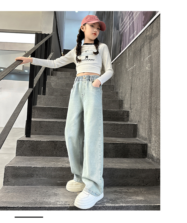 소녀 바지 봄과 가을 2025 새로운 서양식 어린이 청바지 넓은 다리 바지 큰 어린이 새 봄 착용스토어 가기