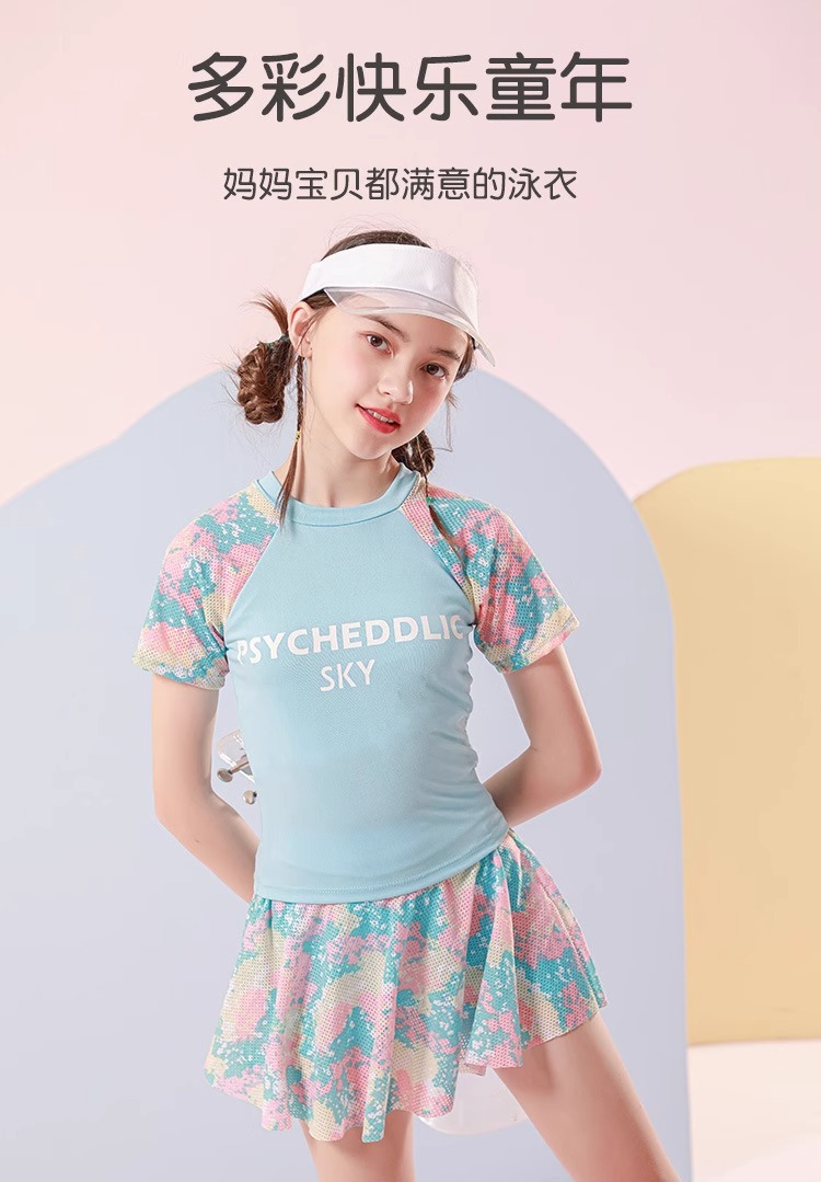 여자 수영복 여름 3-11 세 새로운 분할 치마 반바지 큰 아이 수영 세트 훈련 세트