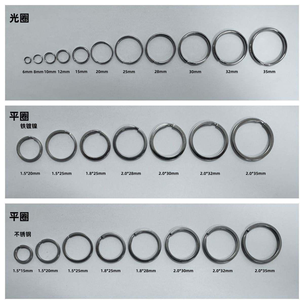 铁镀镍光圈6mm/8mm/10mm是双圈,12mm及以上是光圈;