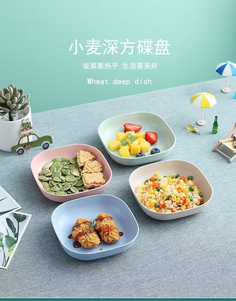 밀짚 뼈 뱉기 접시 사각형 스낵 플레이트 과일 샐러드 말린 과일 플레이트 페이스트리 뼈 침 판 작은 플라스틱 플레이트스토어 가기