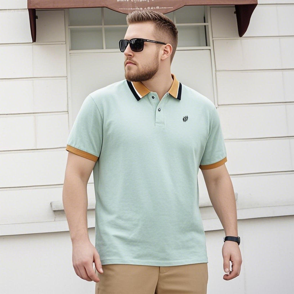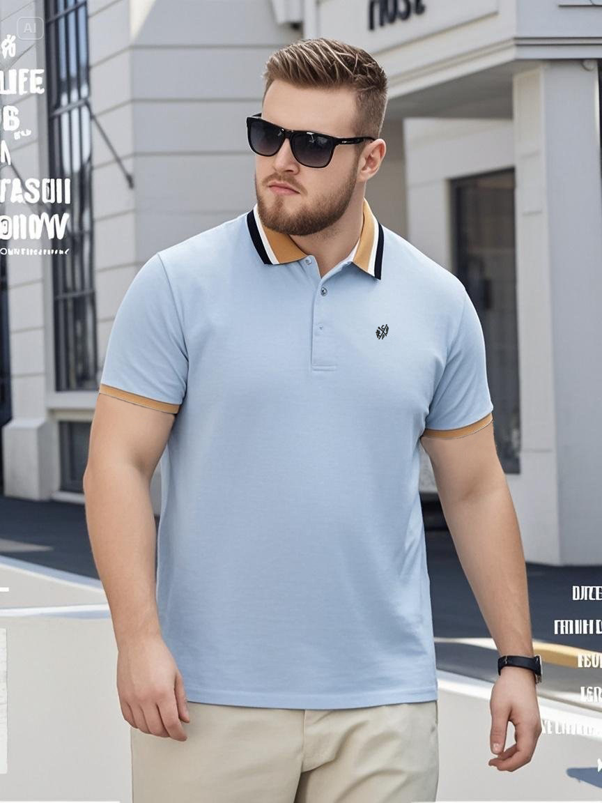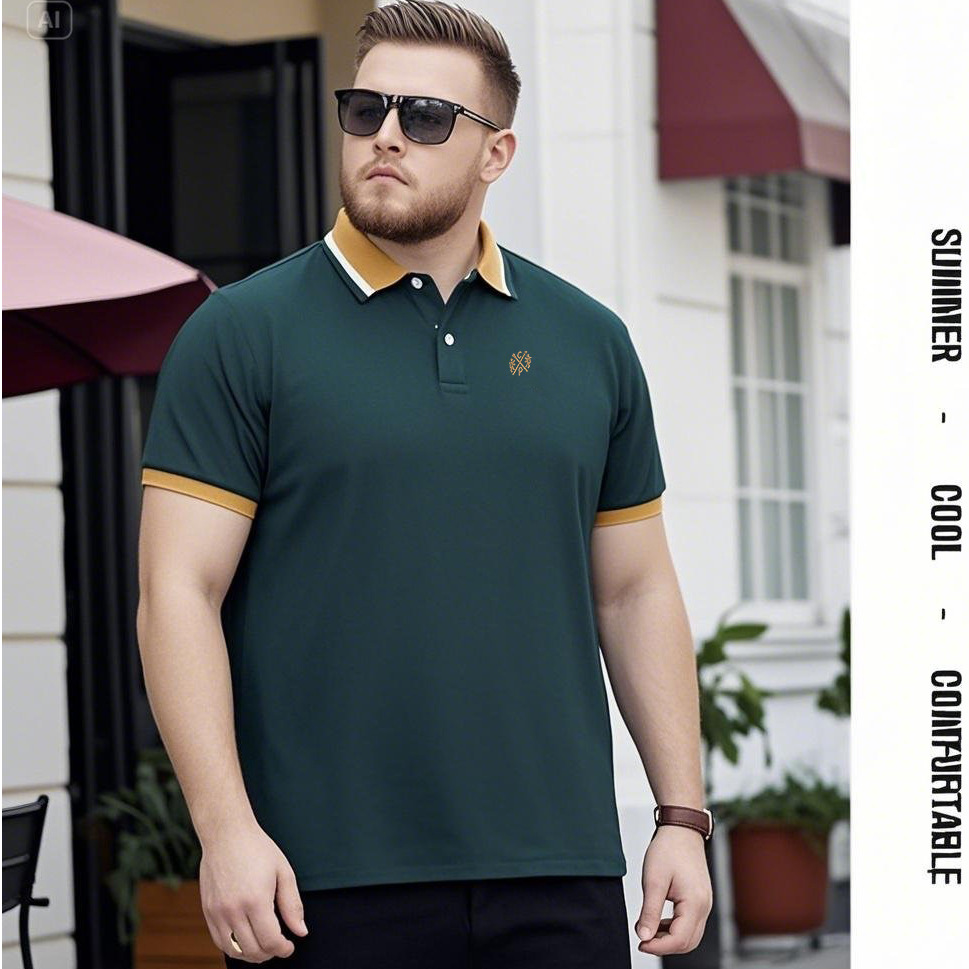 2025 년 새 여름 반팔 티셔츠 남성 국경 비료 증가 긴 스테이플 코튼 하이 엔드 옷깃 남성 POLO 2512