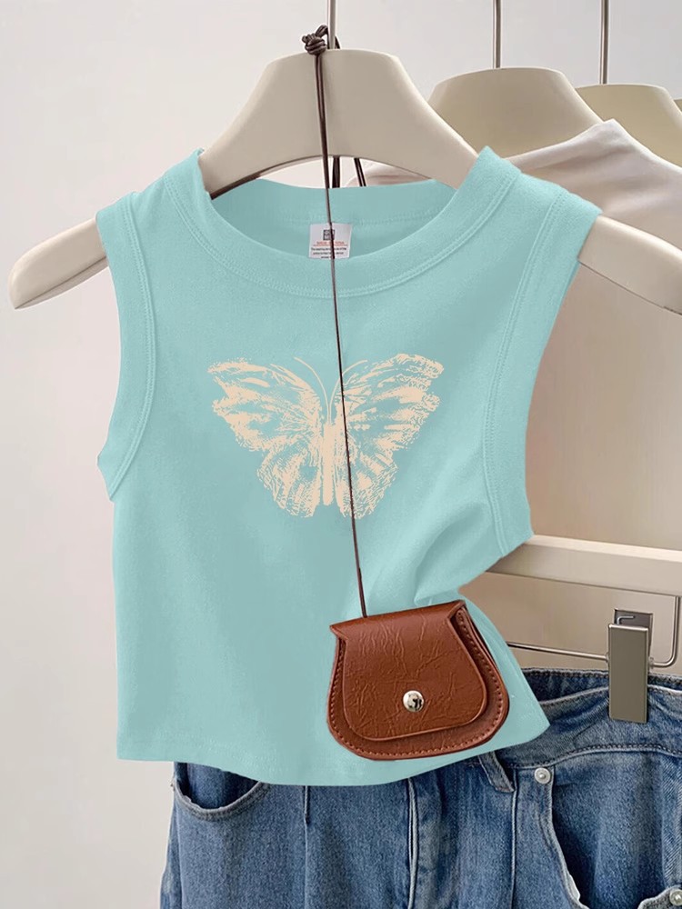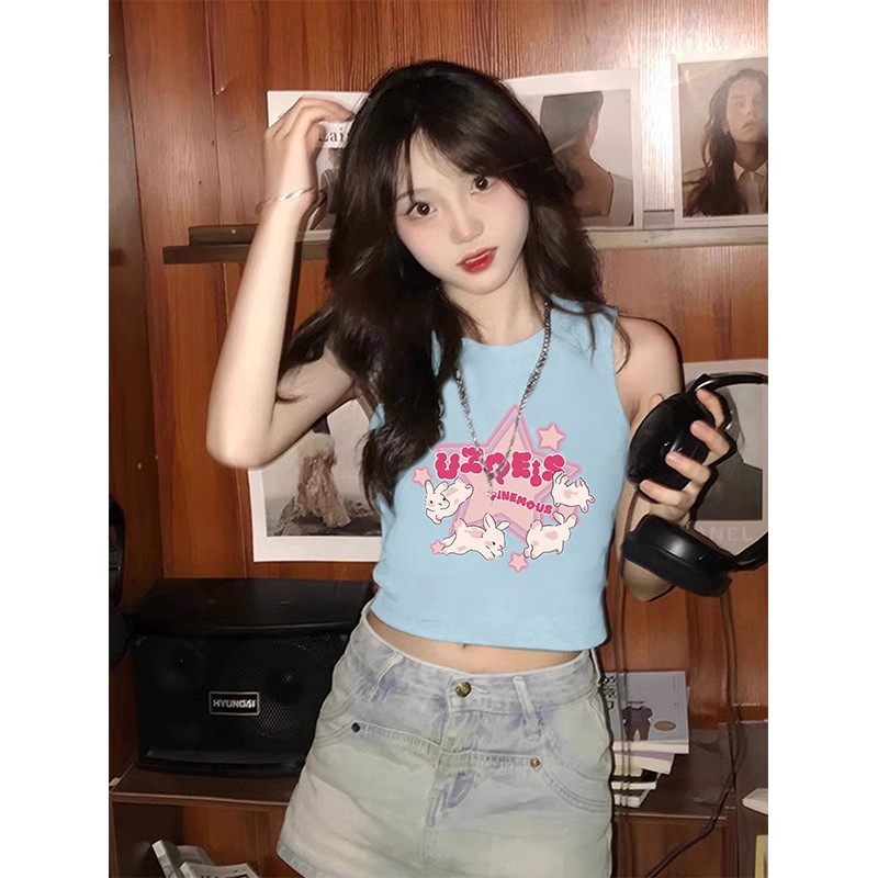 여름 조끼 2025 새로운 여성 스포츠 민소매 코튼 티셔츠 웨이스트 코트 여름 T 솔리드 컬러 셔츠